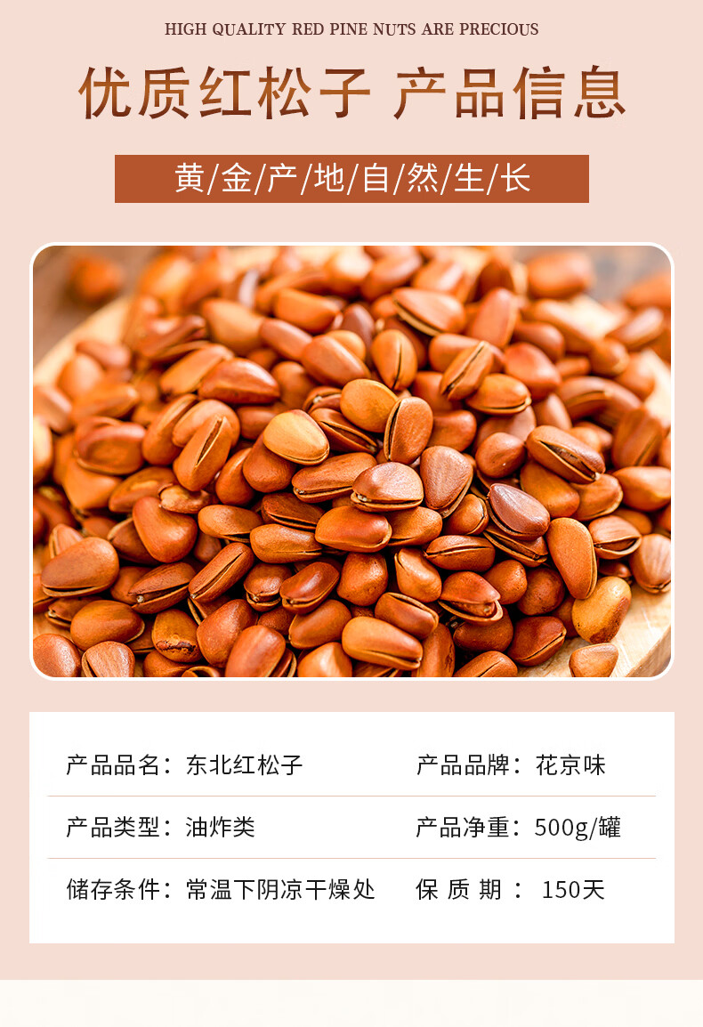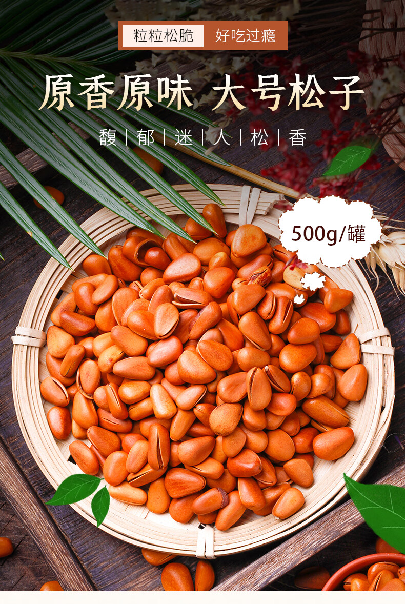 花京味松子大颗粒东北手剥红松子500g罐装开口松子休闲零食每日坚果炒货 【坚果组合】东北红松子500g*1罐+盐焗开心果400g'*1罐