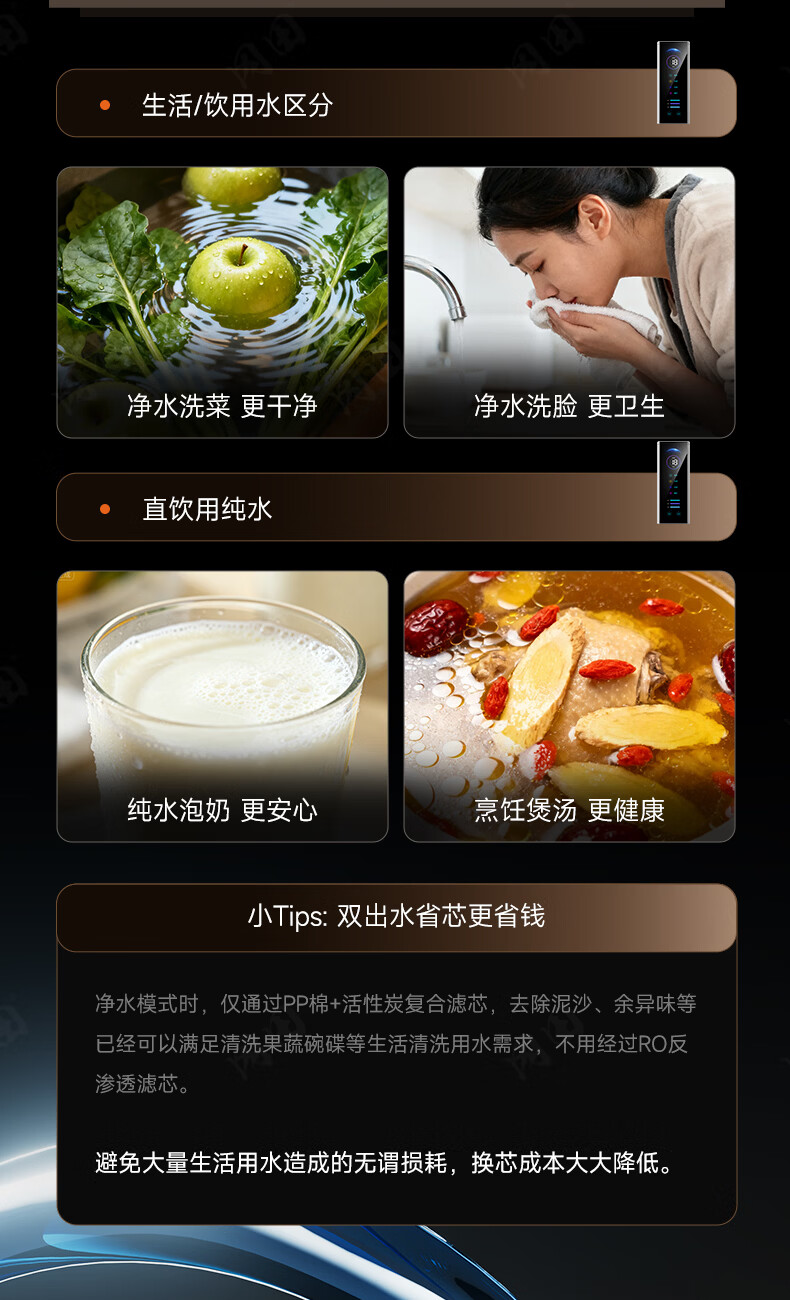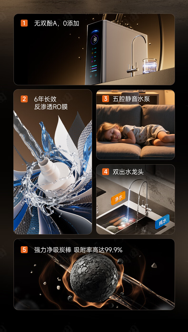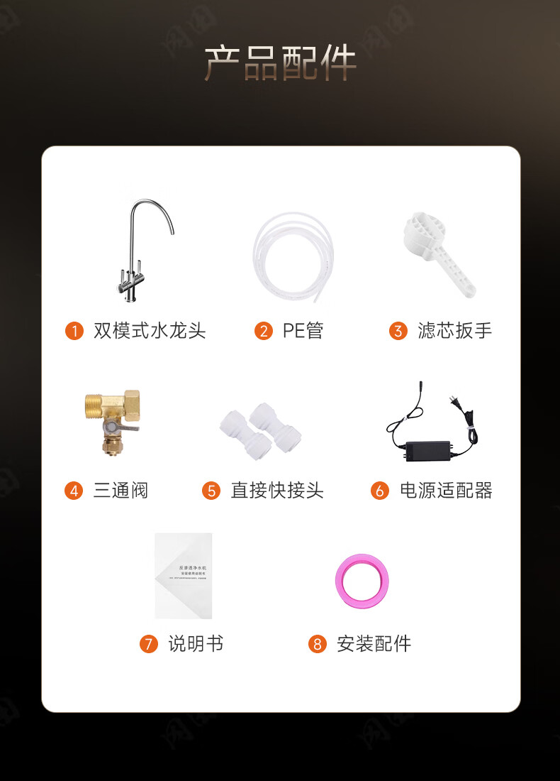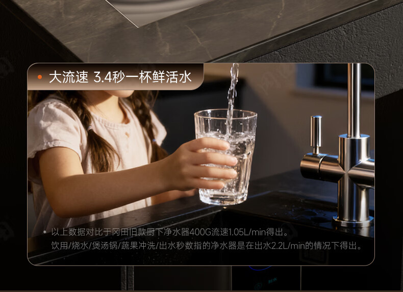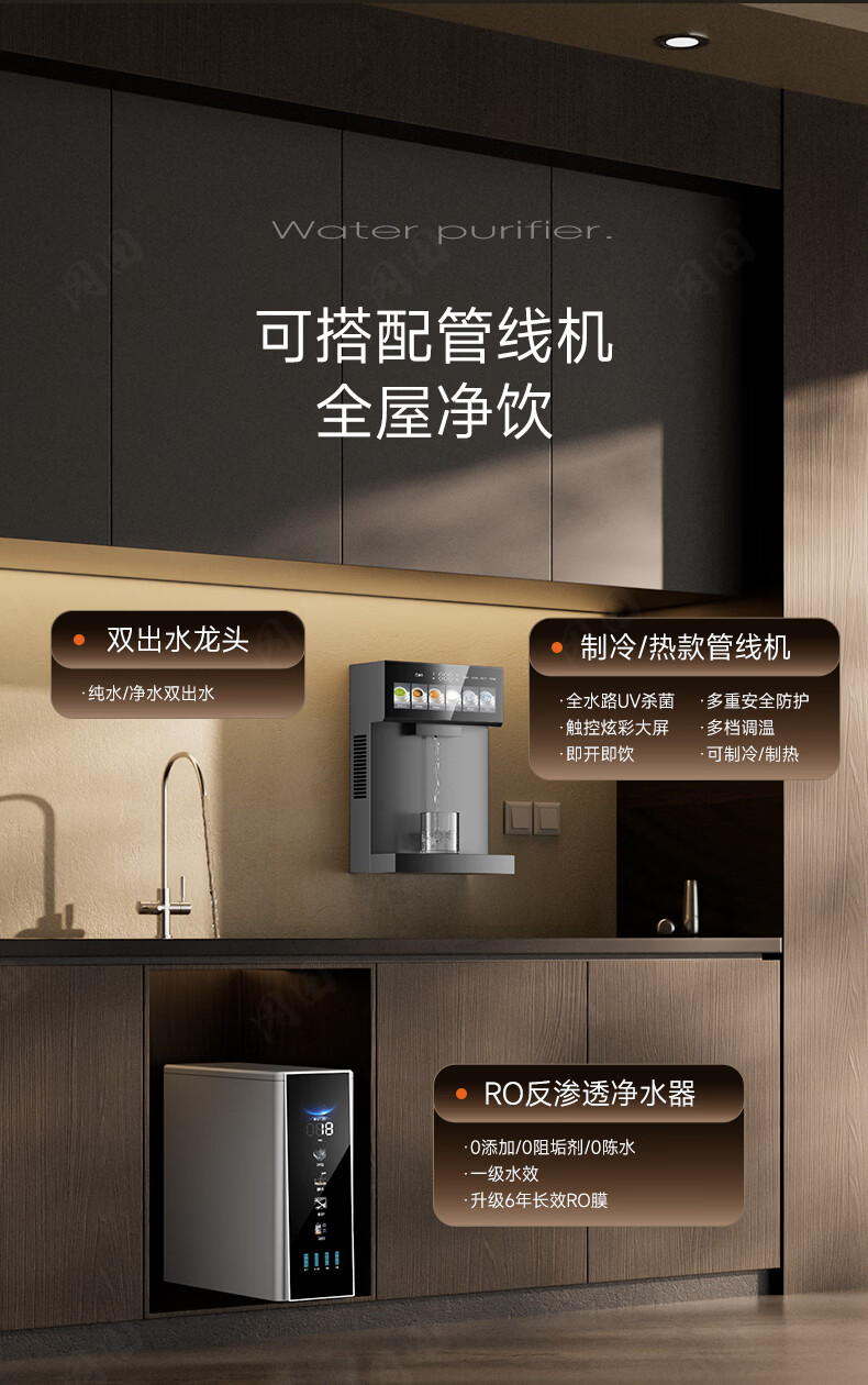 冈田(日本)净水器套装厨下式净水机 温热制冷直饮一体机 6年长效RO反渗透膜富含矿物质 母婴级直饮机 【黑色】净水器+前置过滤器+冷热管线机 1800G大流量