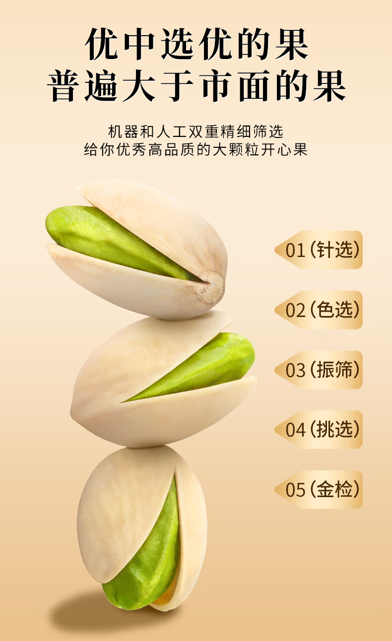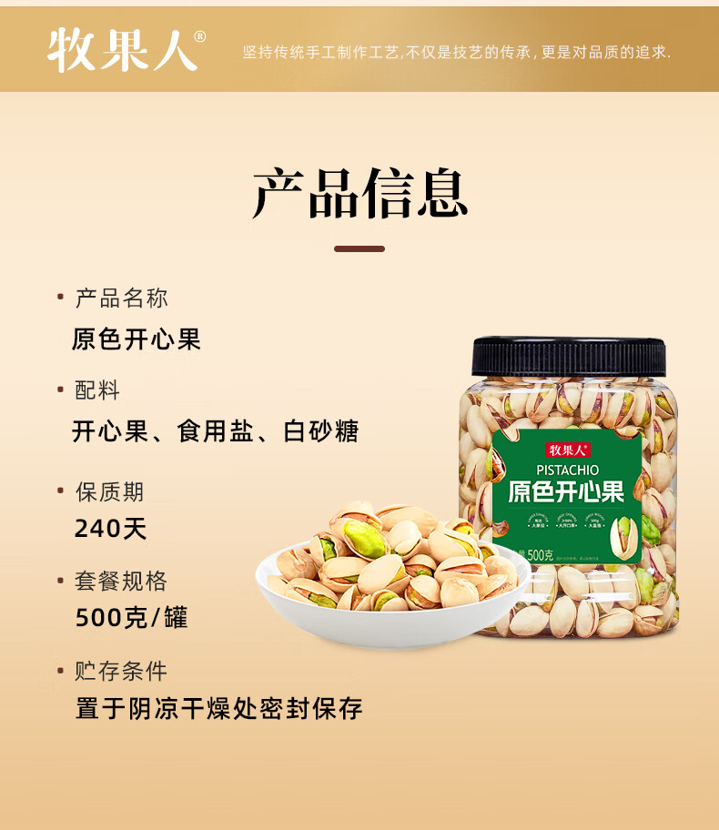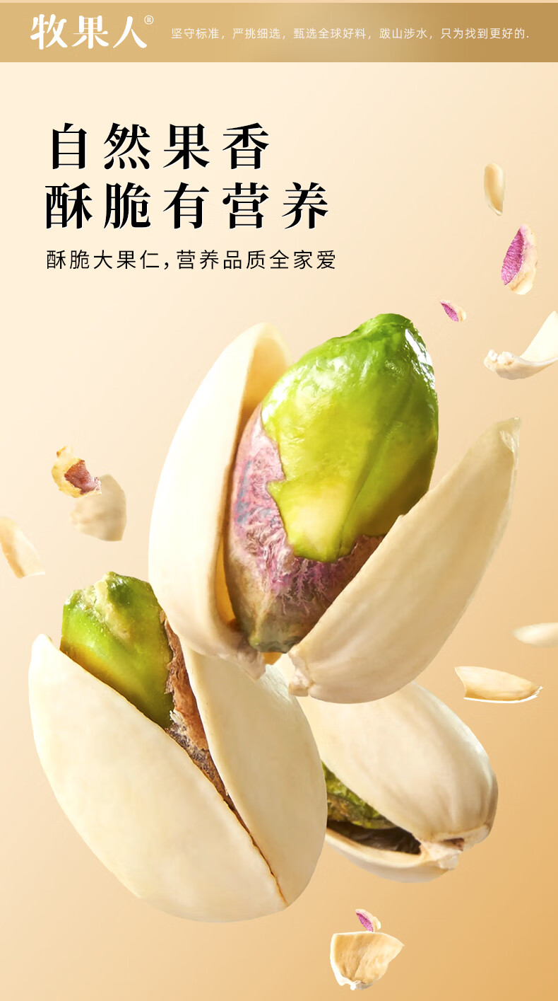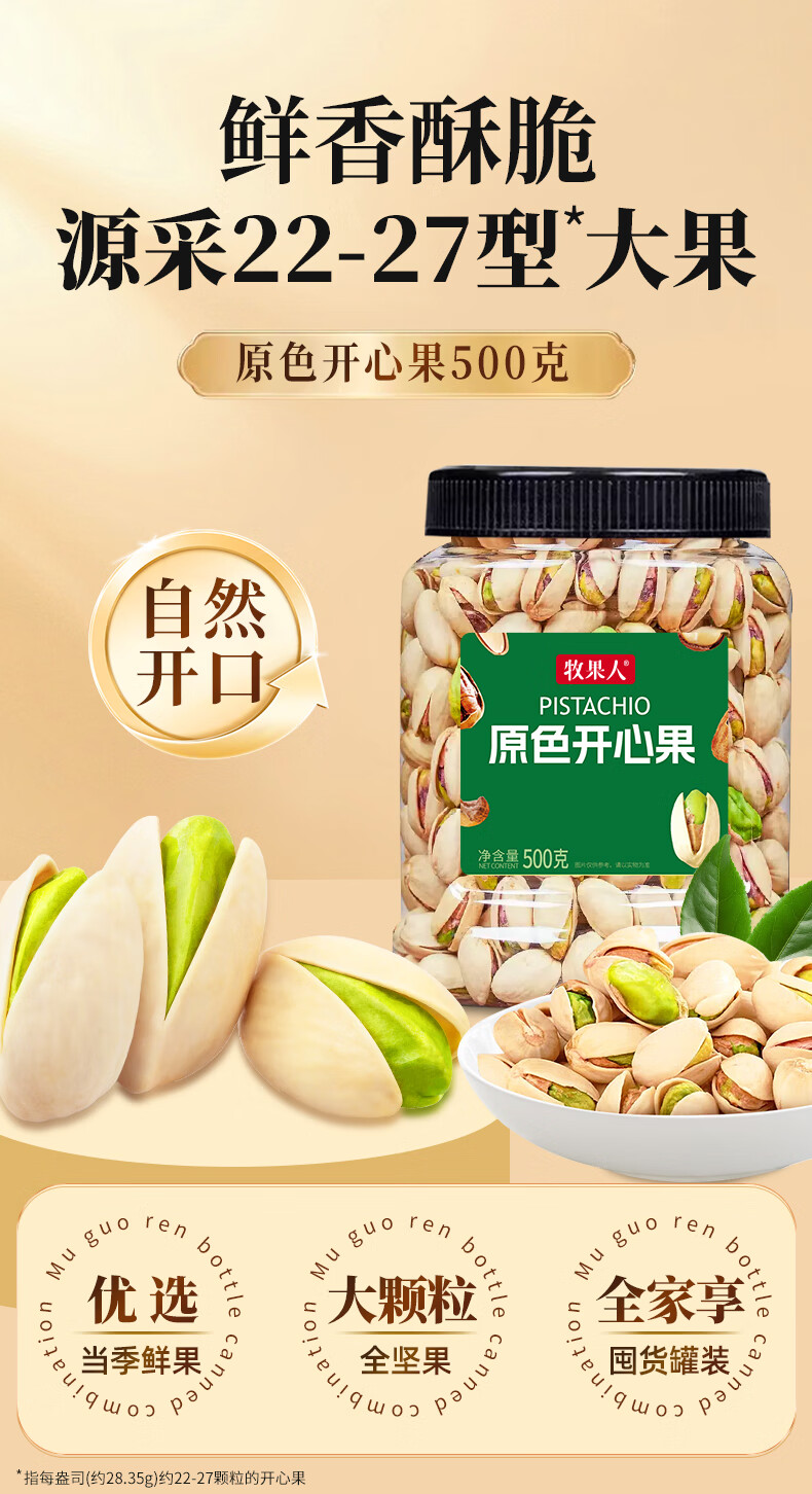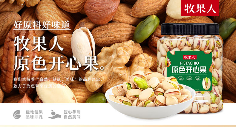牧果人原色开心果500g大颗粒无漂白果肉孕妇零食年货礼品