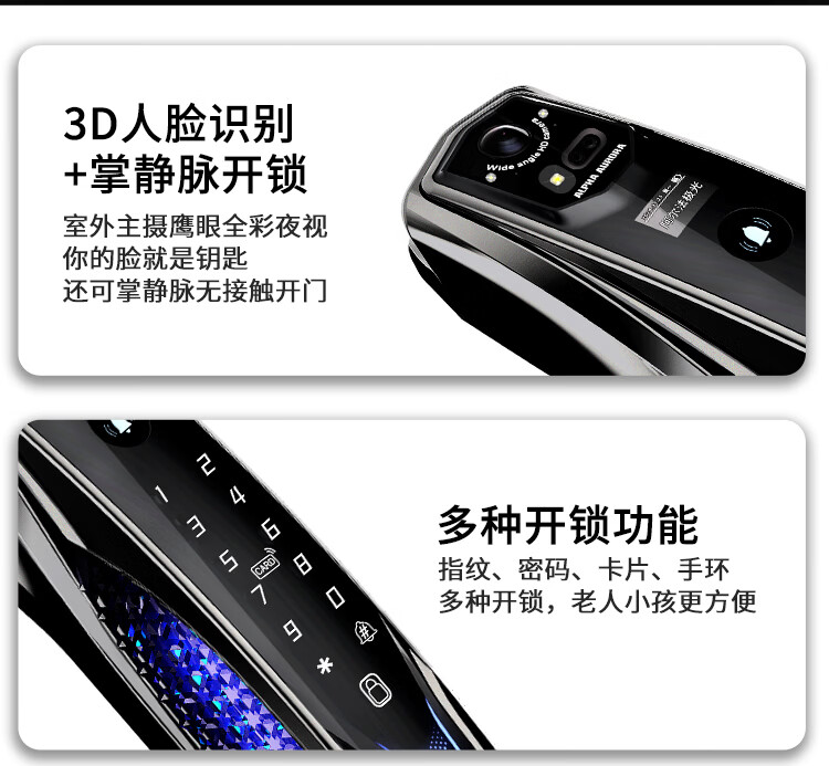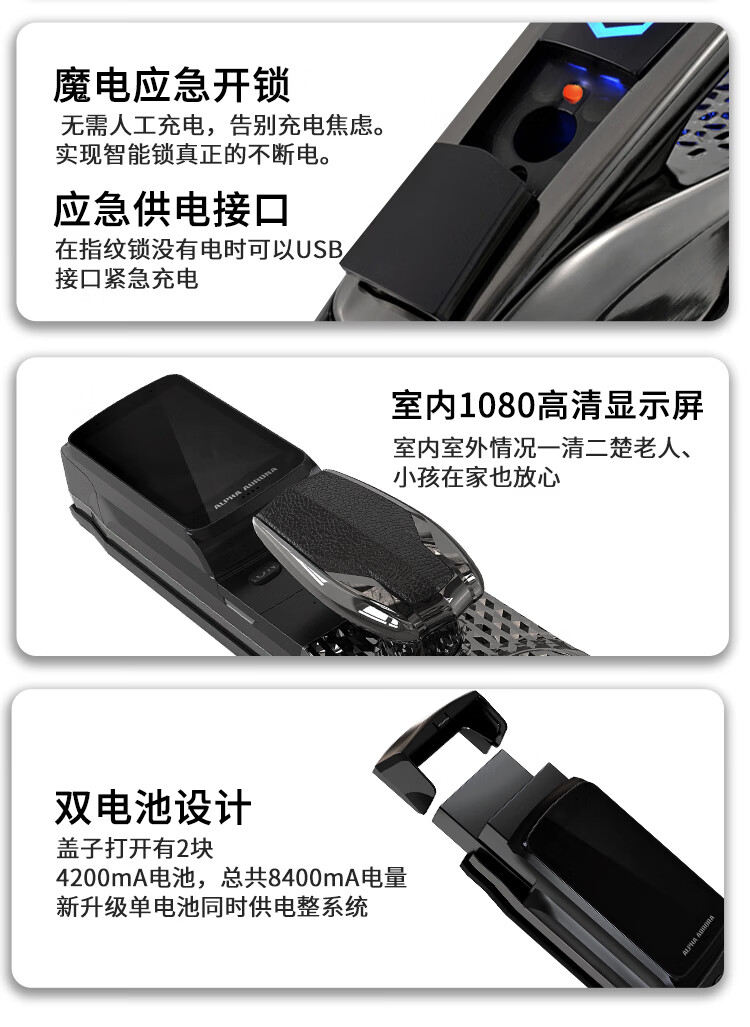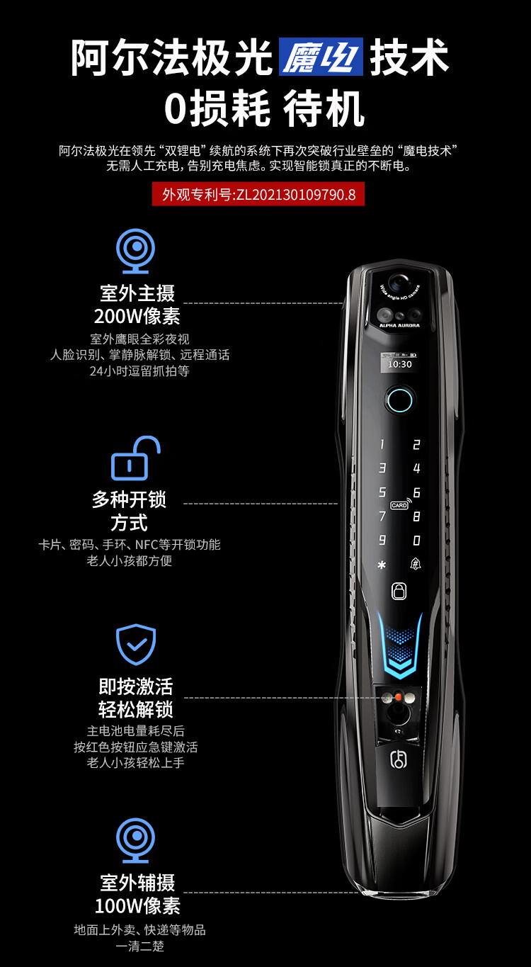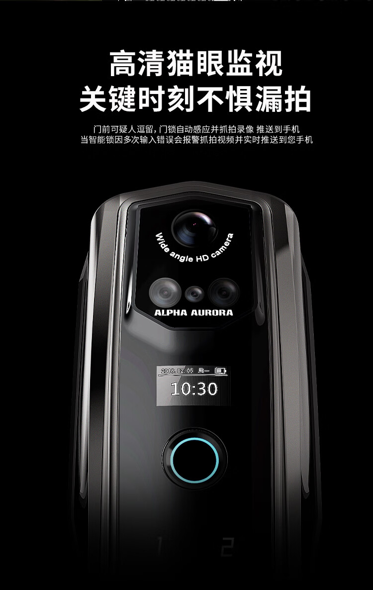 阿尔法极光(ALPHA AURORA)智能门锁P14fvm领航版 掌静脉指纹人脸大屏密码锁入户门上门安装