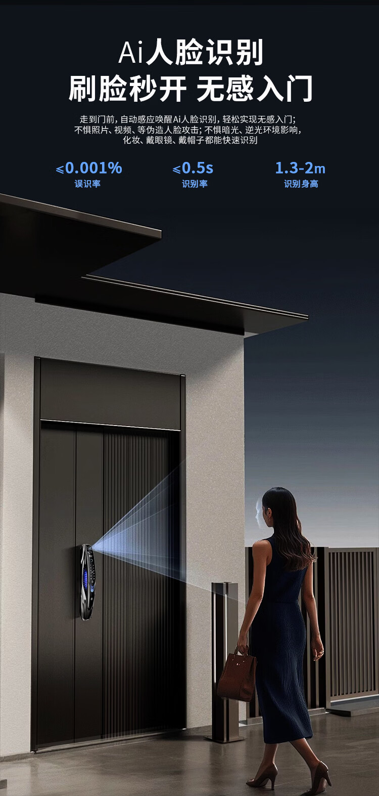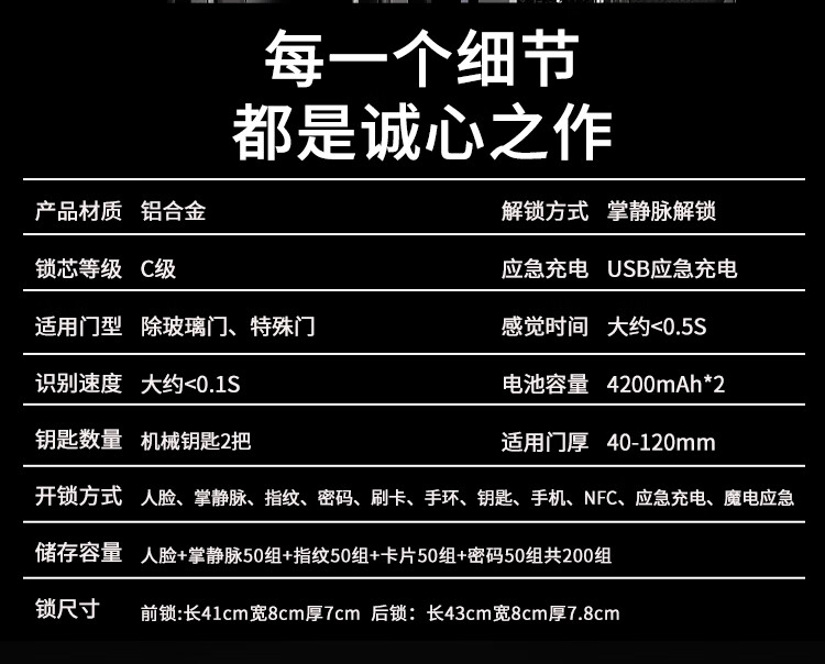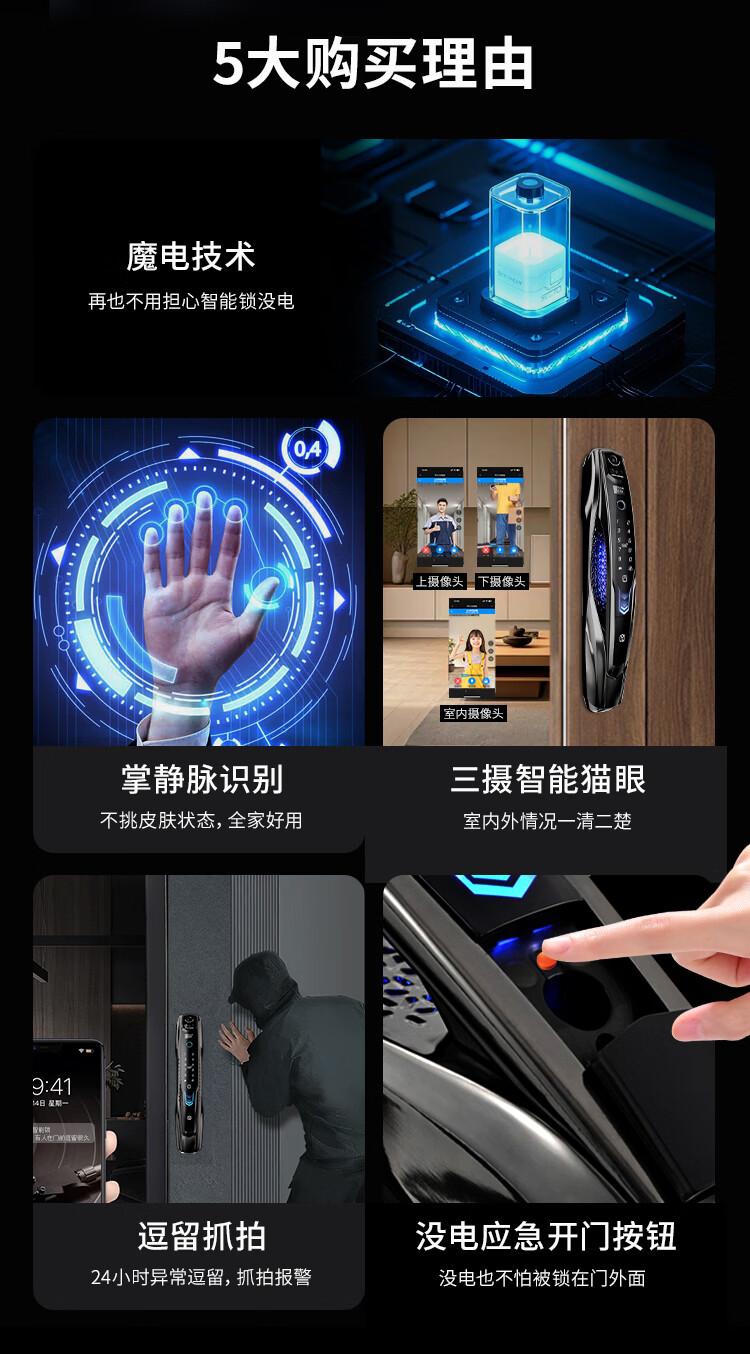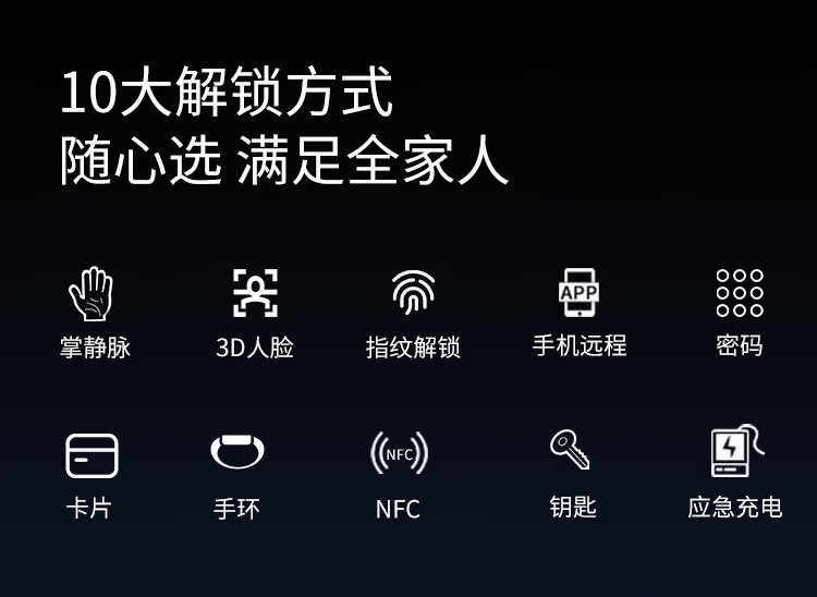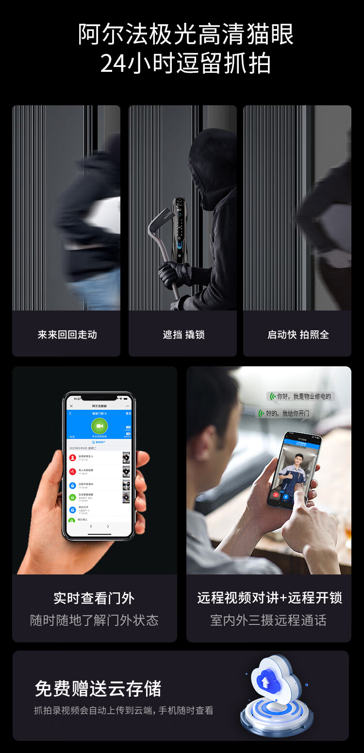 阿尔法极光(ALPHA AURORA)智能门锁P14fvm领航版 掌静脉指纹人脸大屏密码锁入户门上门安装