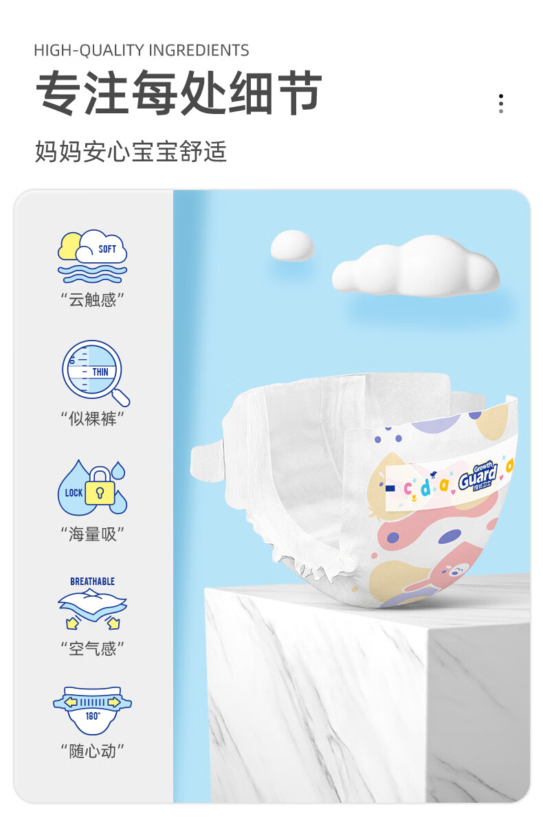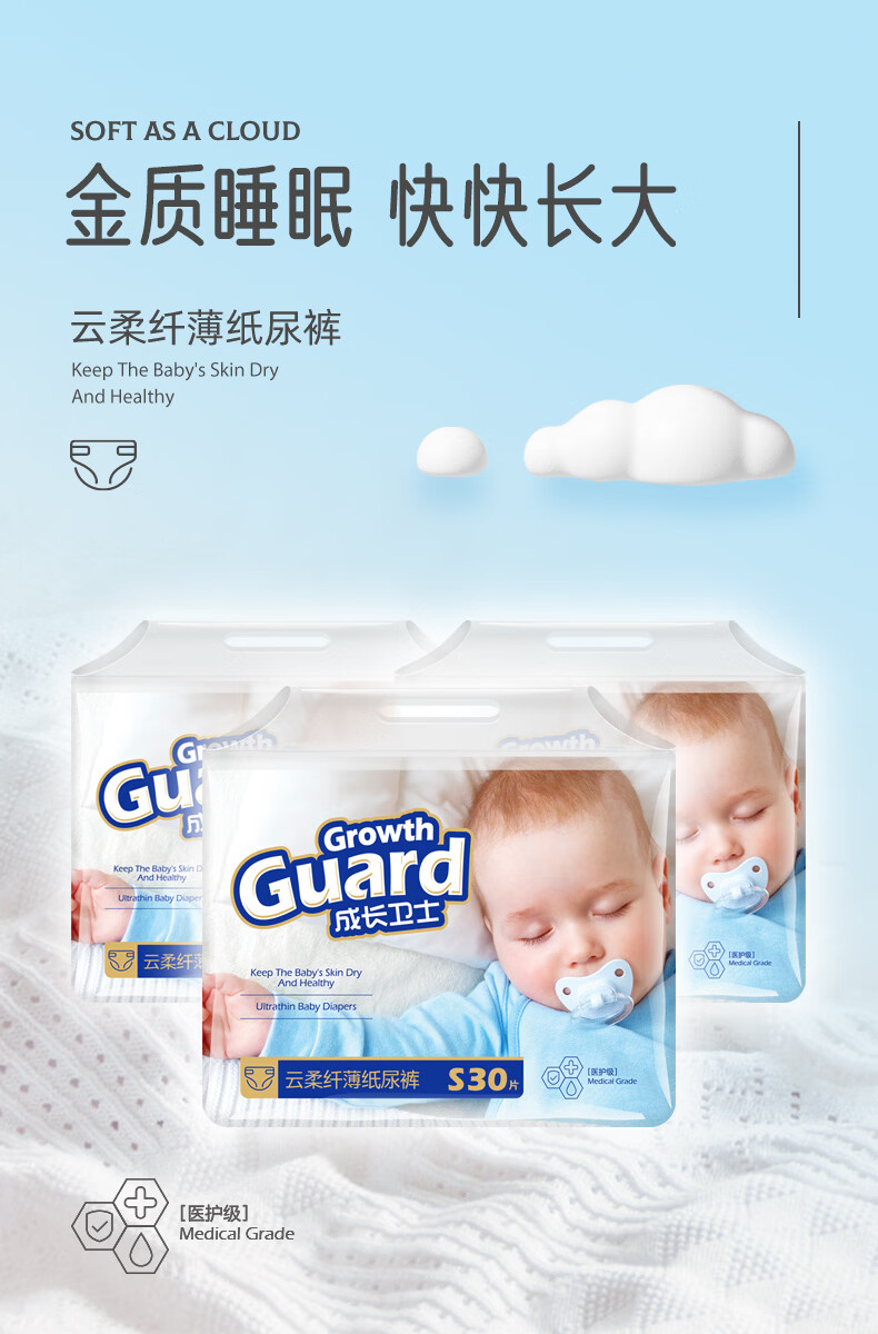 成长卫士云柔纤薄纸尿裤超薄透气干爽男女宝宝尿不湿 纸尿裤L码26片*6包(14-20斤)