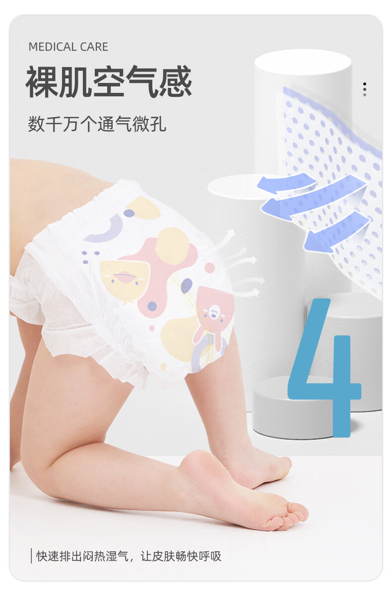 爸比船长云感薄系列纸尿裤拉拉裤 超大吸量无感裸感婴儿透气亲肤 S码纸尿裤60片