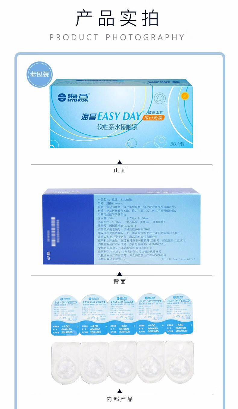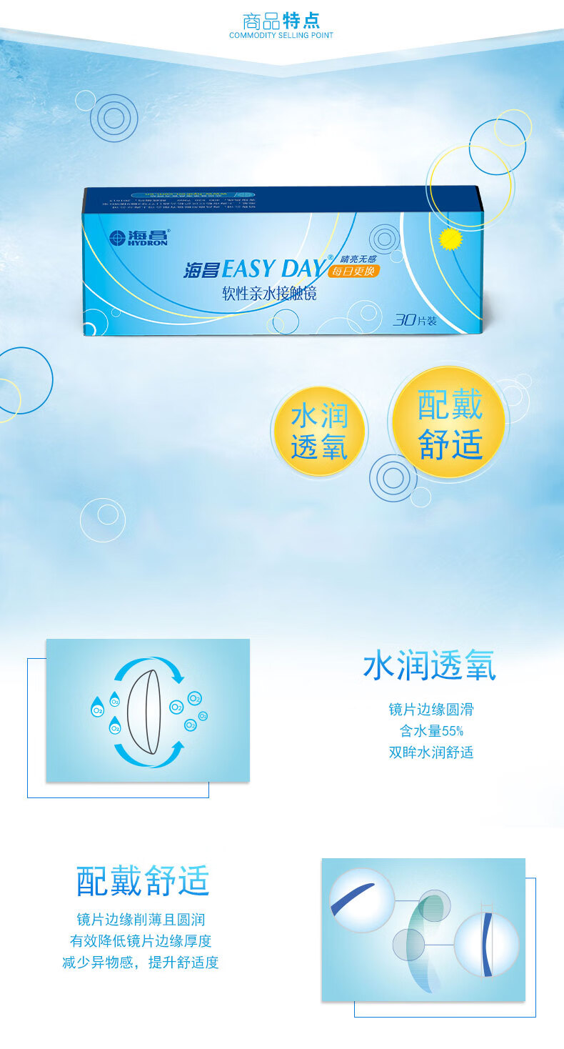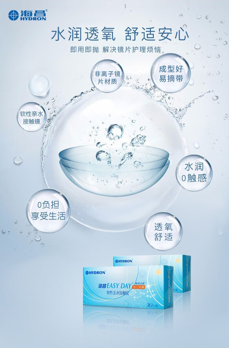 海昌【60片新日期】海昌隐形眼镜日抛一次性Easyday小直径近视薄优氧 2盒:60片【特惠推荐】 400度