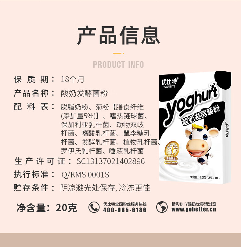 优比特【金装原味】酸奶发酵菌粉 添加膳食纤维双歧杆菌酸奶粉 2g*10条