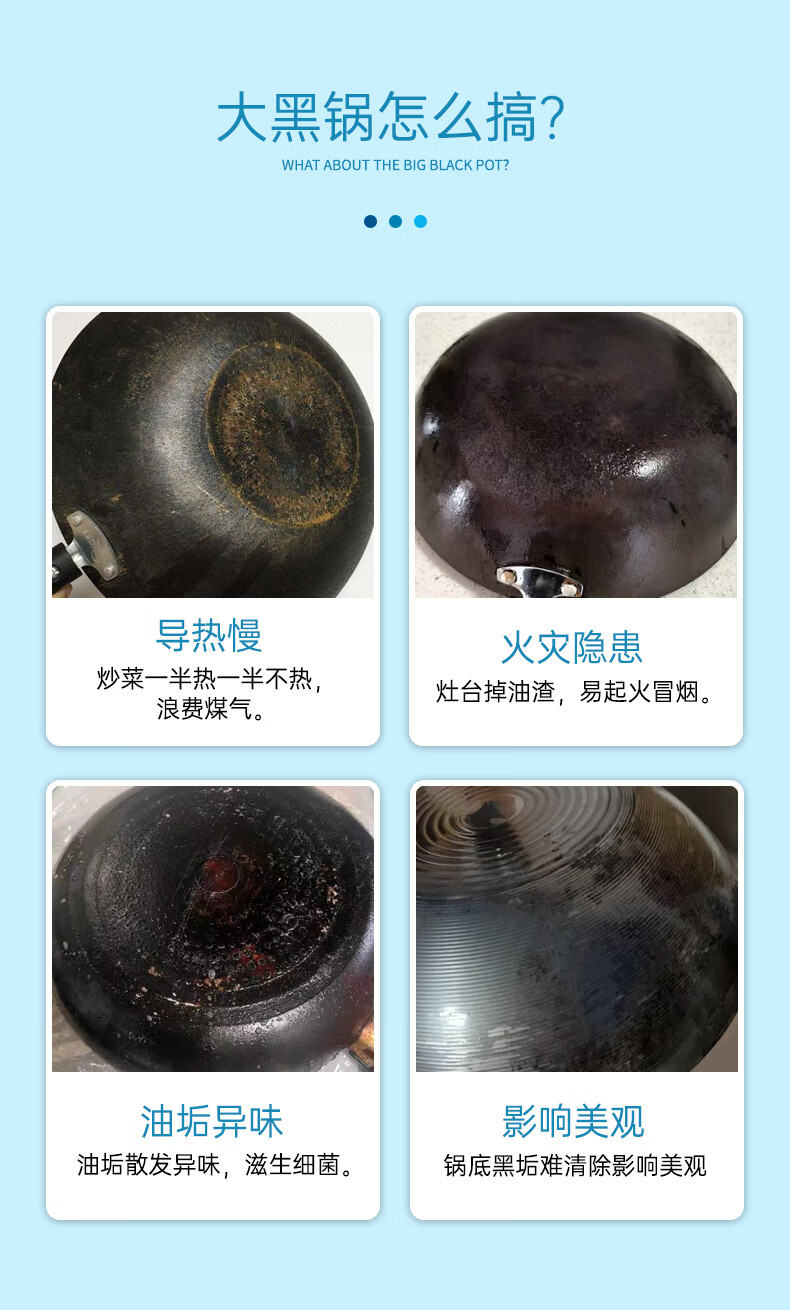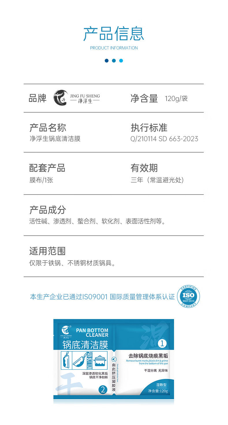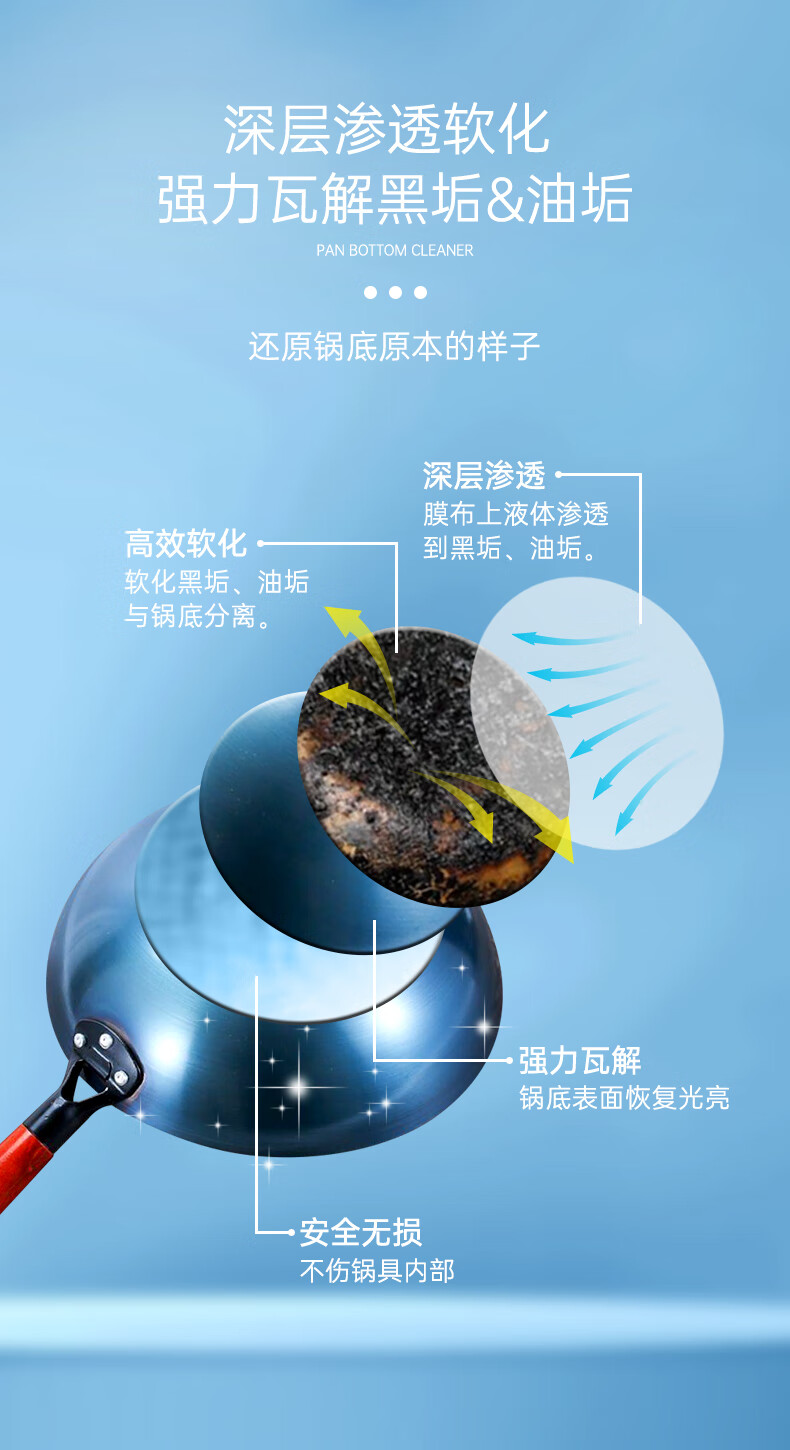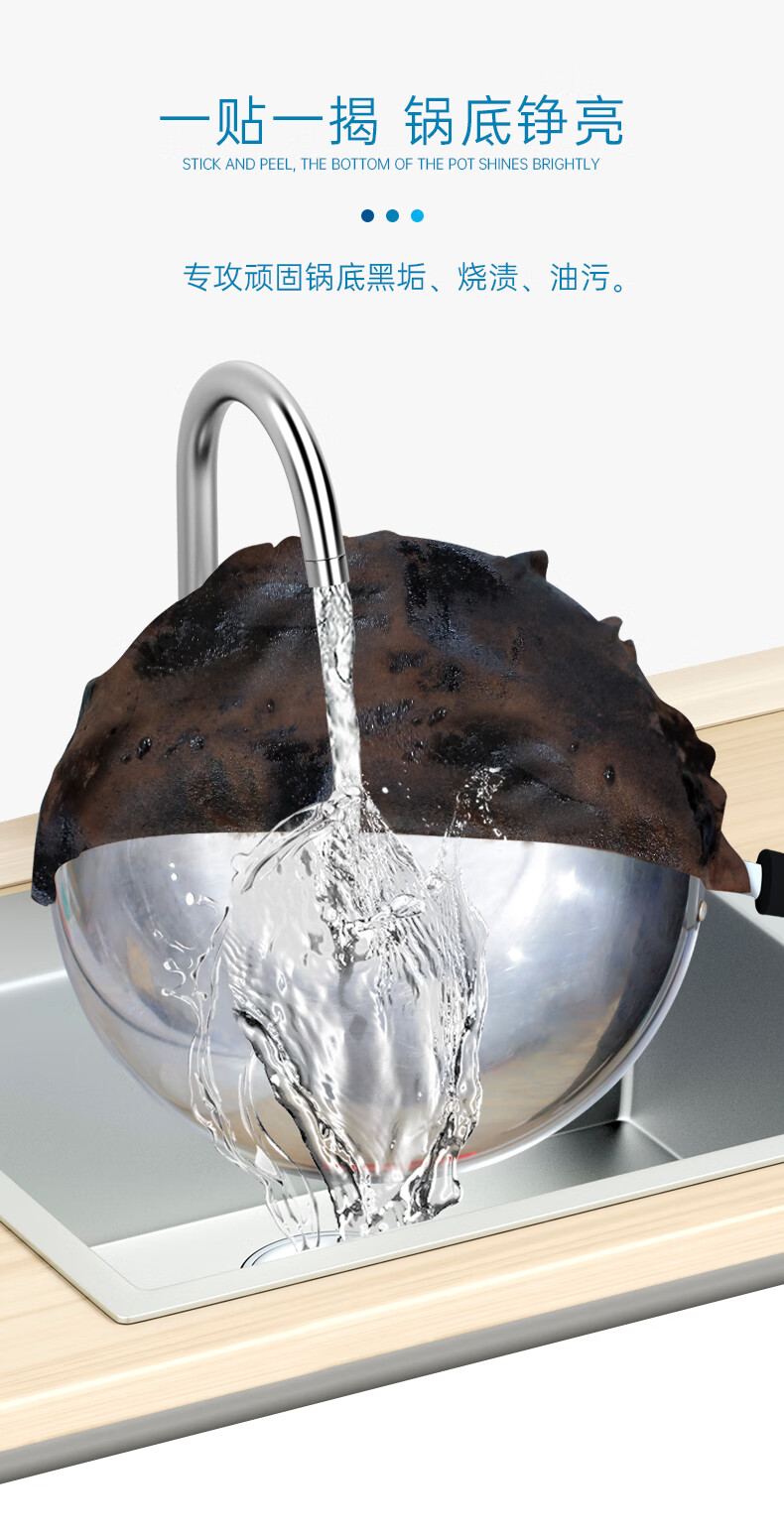 净浮生锅底除黑剂120g*3贴黑锅底清洁膜不锈钢清洁剂铁锅强力除黑垢神器