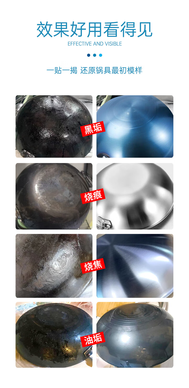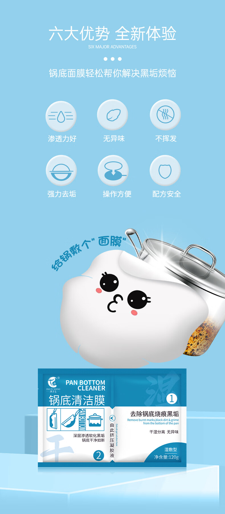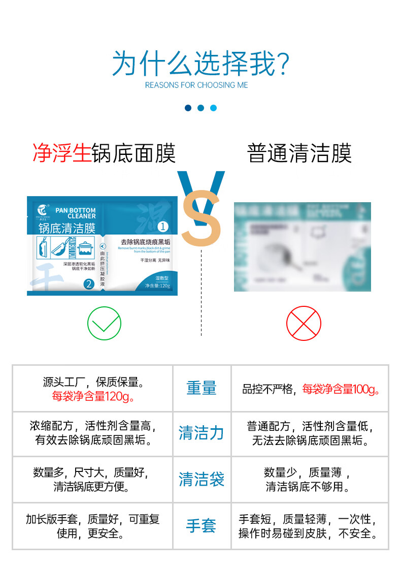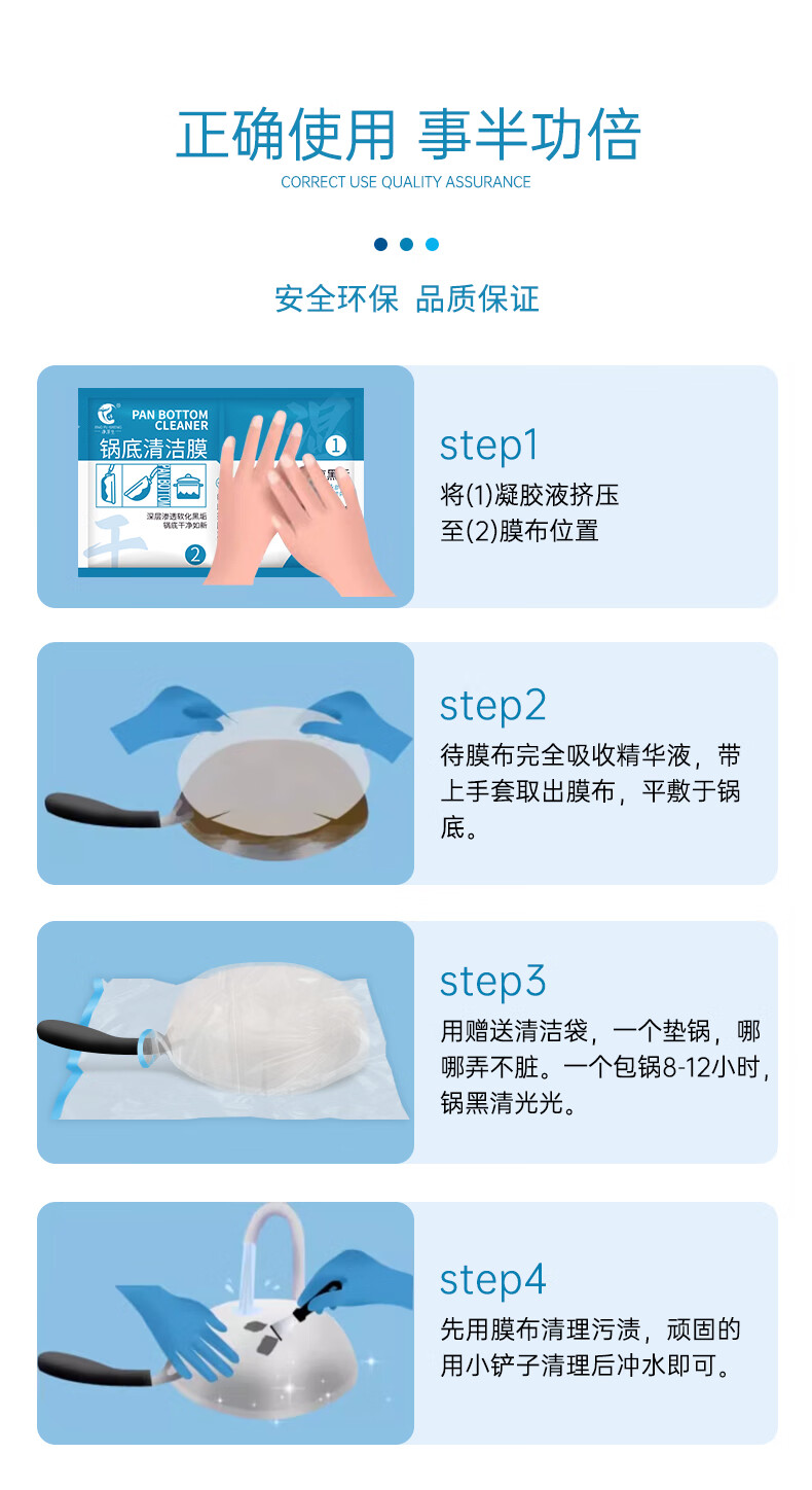 净浮生锅底除黑剂120g*3贴黑锅底清洁膜不锈钢清洁剂铁锅强力除黑垢神器