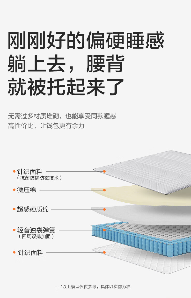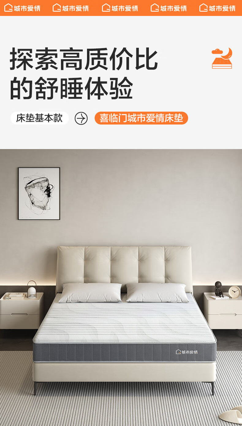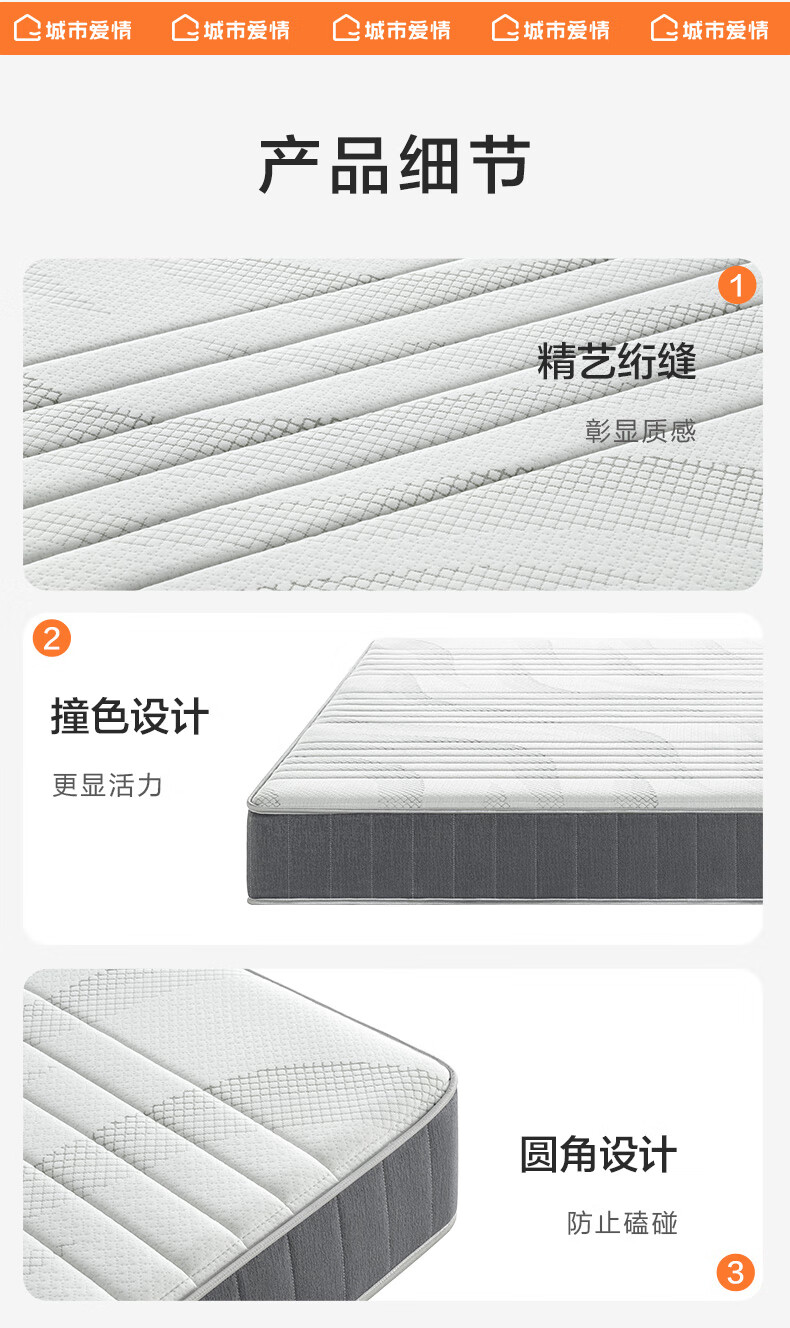 城市爱情喜临门床垫舒脊硬质绵轻音独袋弹簧床垫子 大白H 1.8x2米 偏硬