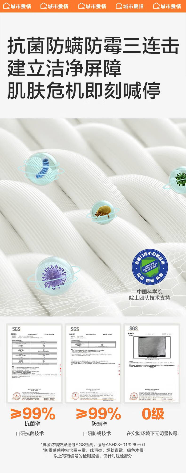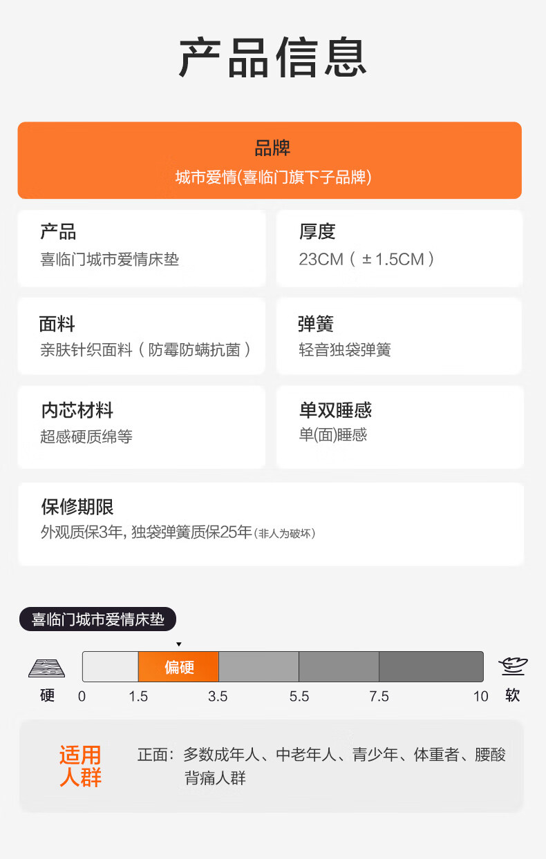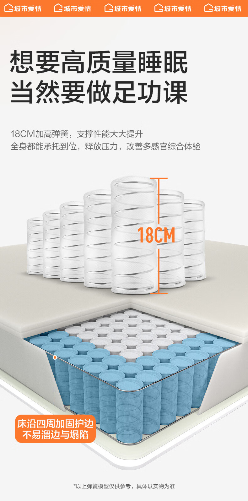 城市爱情喜临门床垫舒脊硬质绵轻音独袋弹簧床垫子 大白H 1.8x2米 偏硬