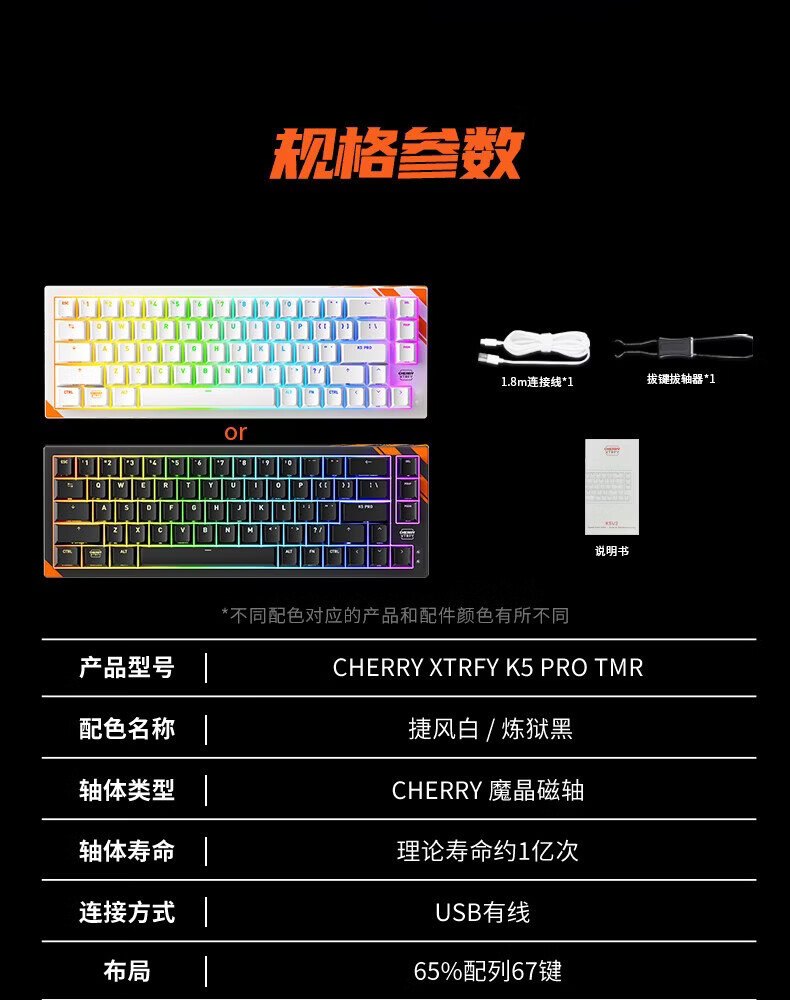 CHERRY樱桃 K5 PRO TMR魔晶磁轴键盘 冠军键盘 三角洲打瓦 K5 PRO-白色-磁轴