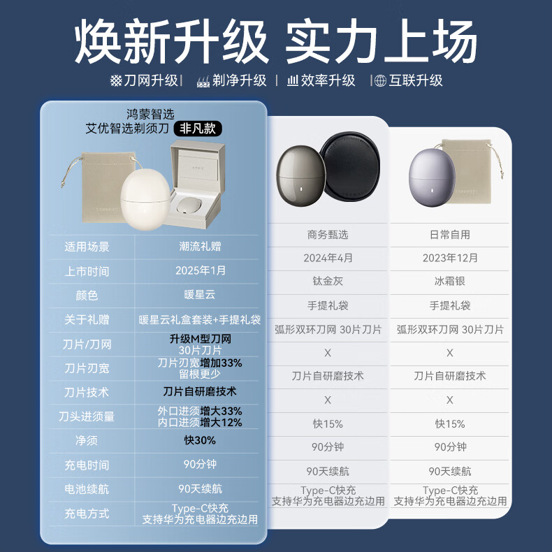 华为智选鸿蒙智选艾优智能剃须刀星曜石男士刮胡刀电动剃须刀便携小巧迷你生日礼物送男朋友老公情人节礼物