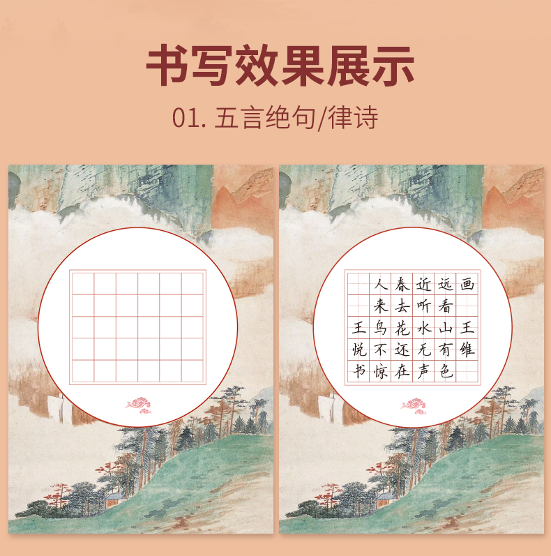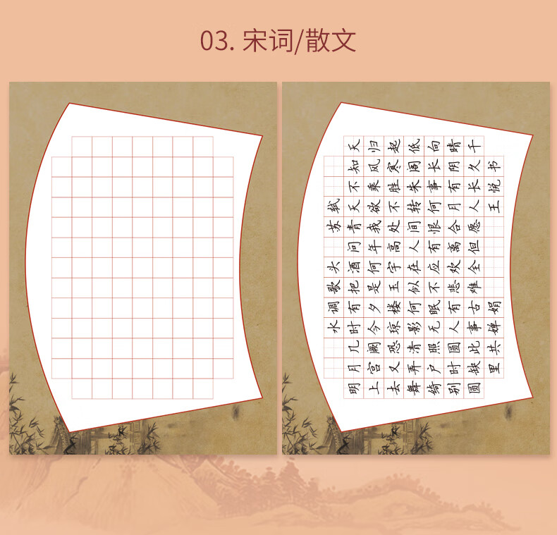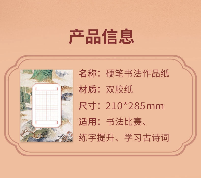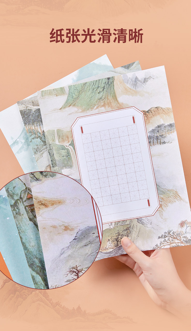 六品堂田字格硬笔书法练习用纸a4比赛专用纸中国风小学生古诗词书写练字本书法纸