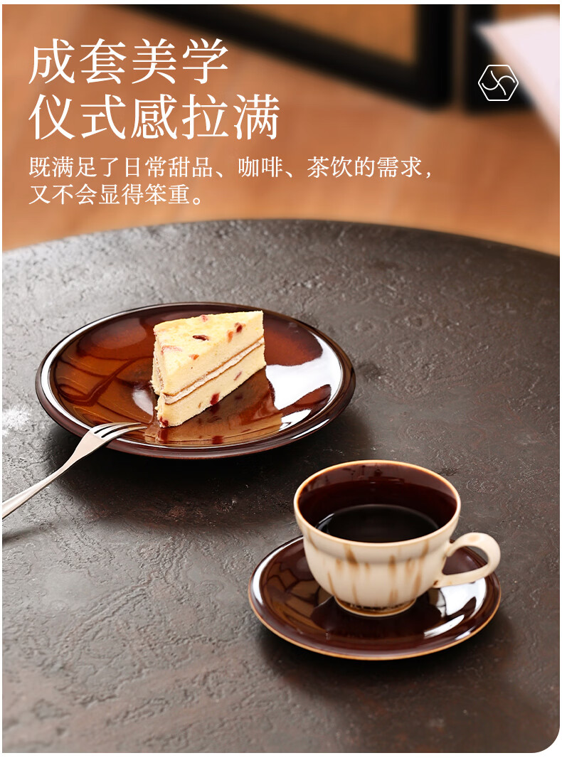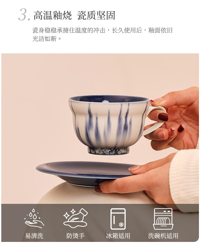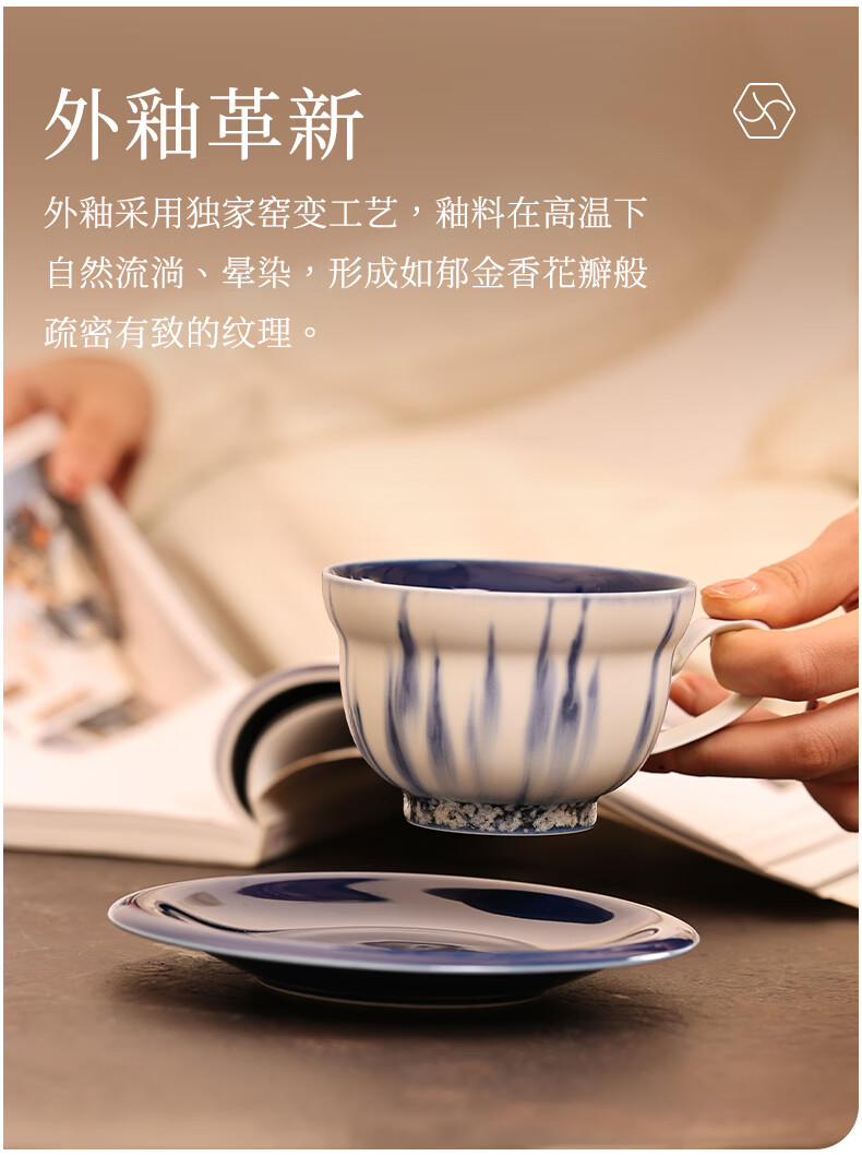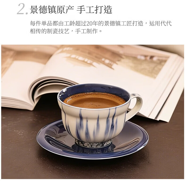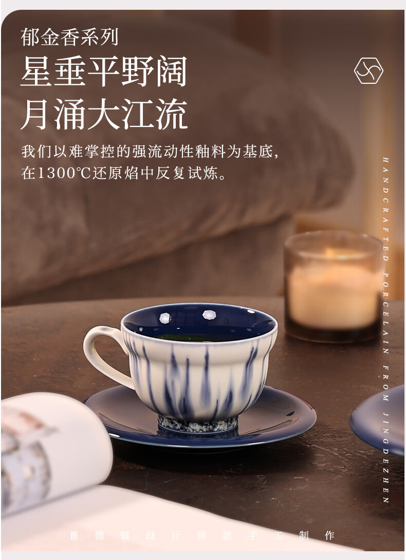 象上陶瓷咖啡杯景德镇高温颜色釉手工小众礼物高颜值新婚礼物乔迁礼 星垂蓝咖啡杯碟套装 2个 220ml
