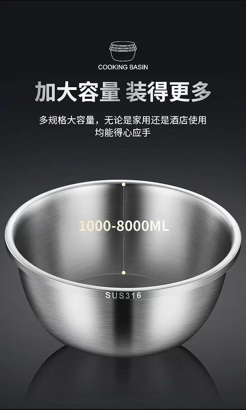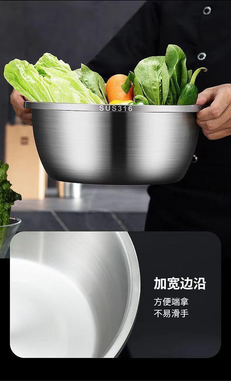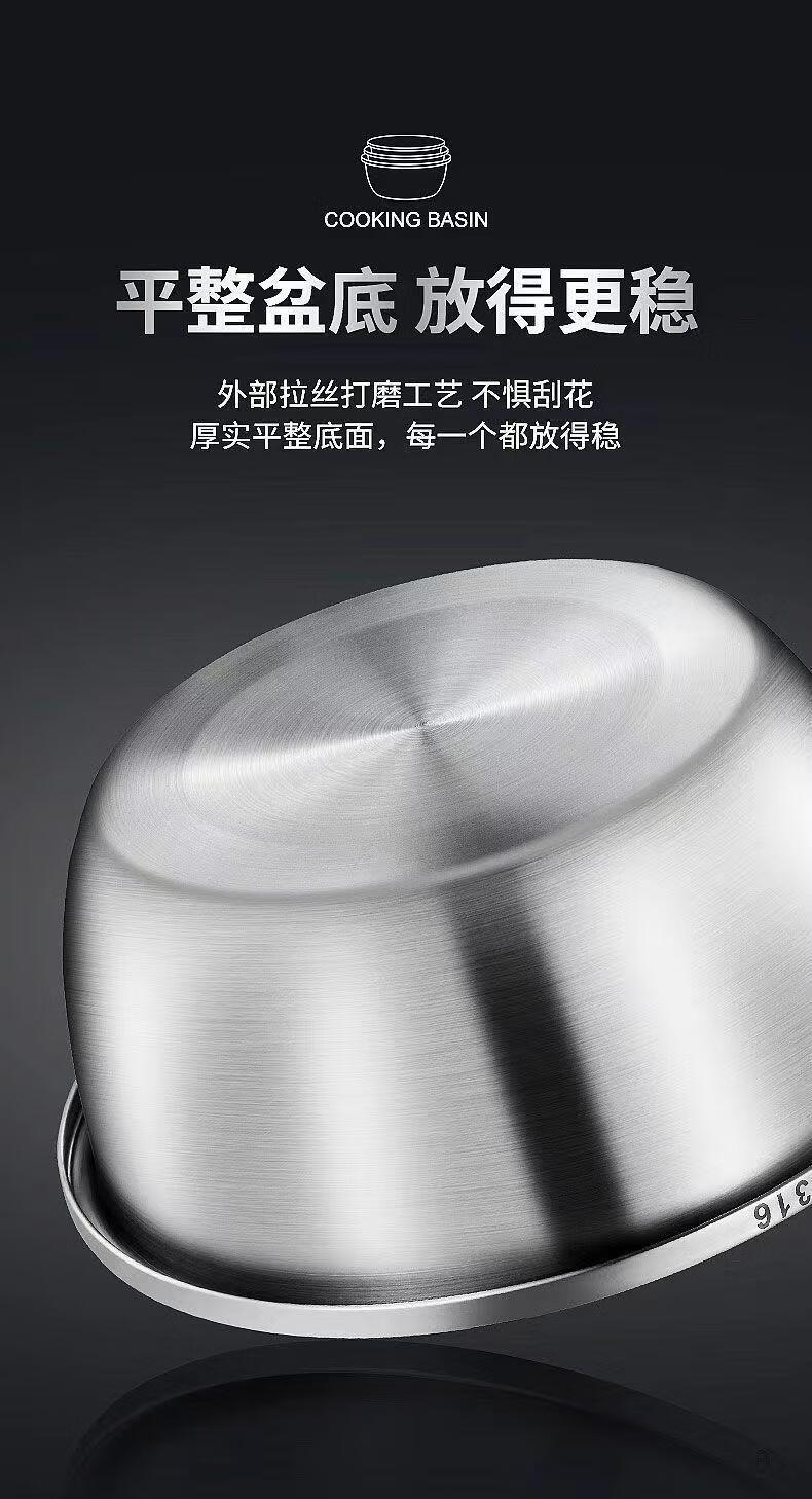 MPPMCK白钢盆316不锈钢盆加深加高食品级厨房打蛋和面盆特厚巨厚不锈钢 新款【宽边316钢】加厚加深30cm