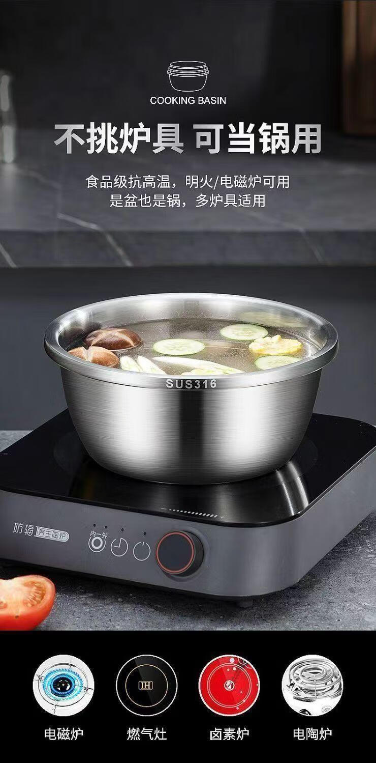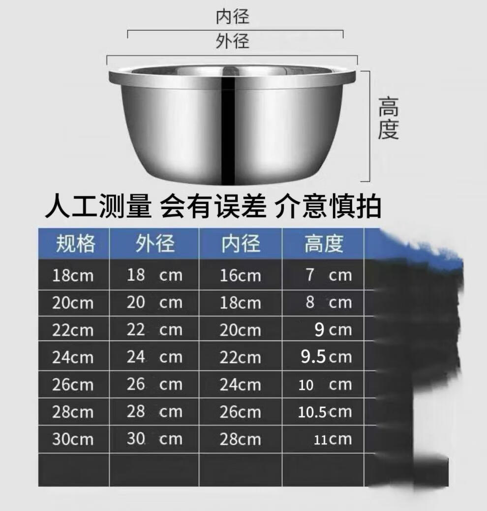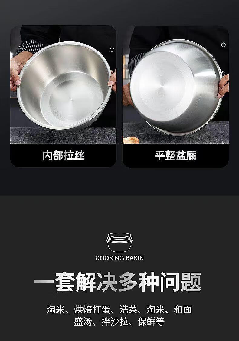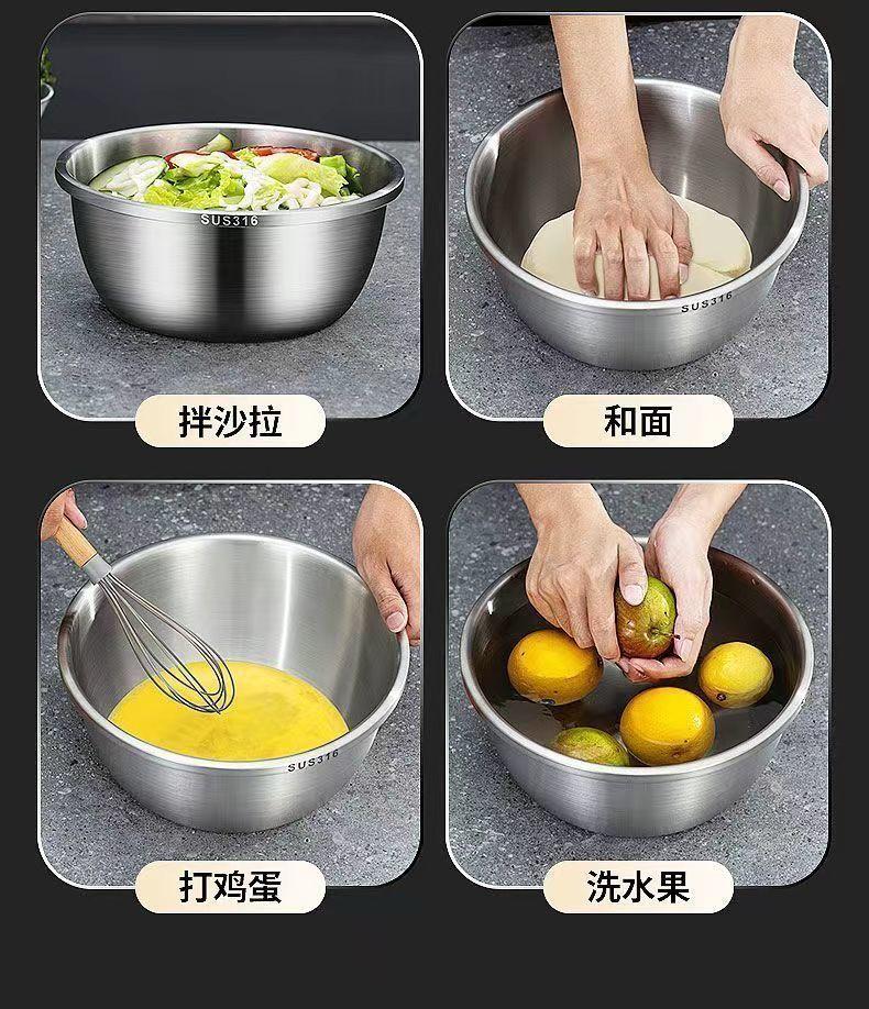 MPPMCK白钢盆316不锈钢盆加深加高食品级厨房打蛋和面盆特厚巨厚不锈钢 新款【宽边316钢】加厚加深30cm
