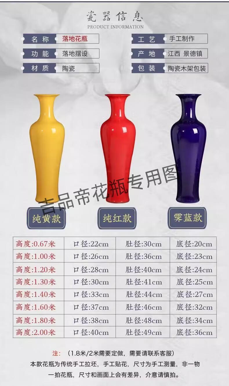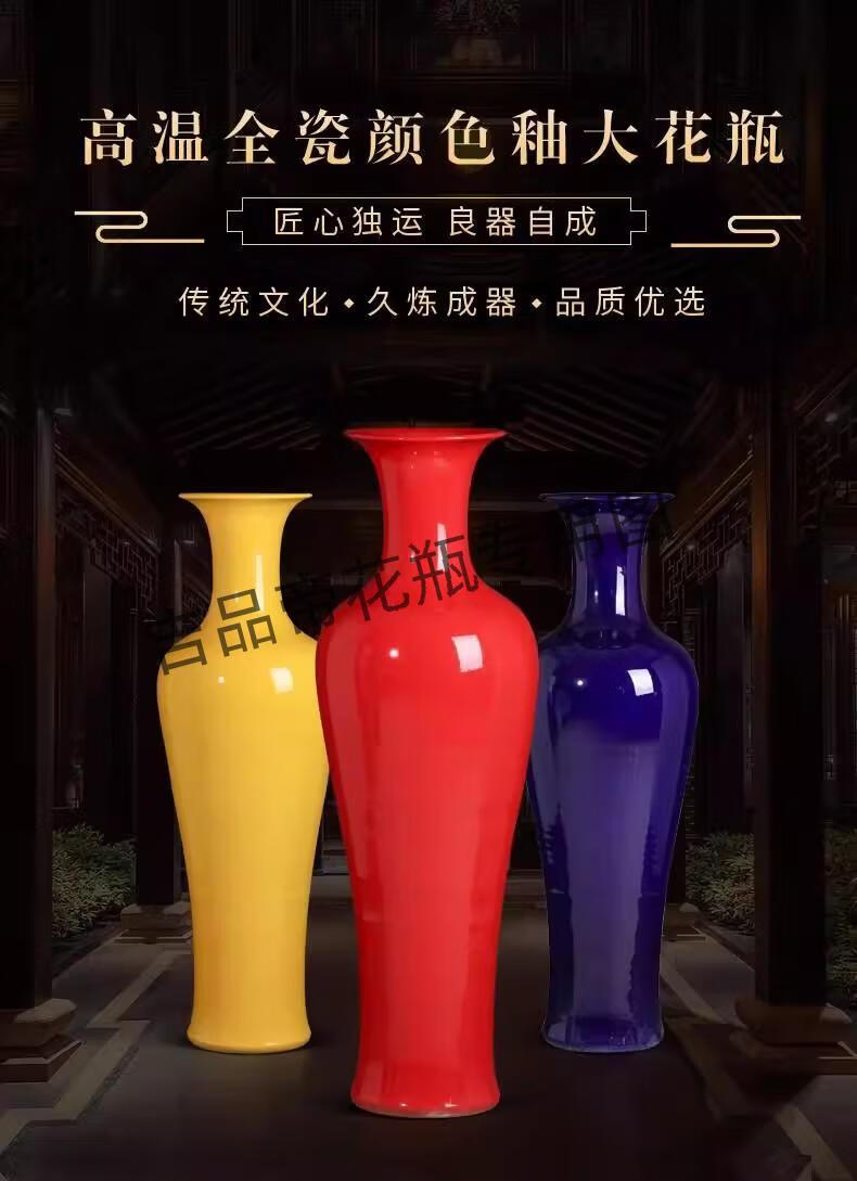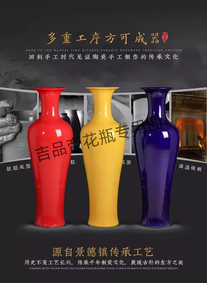 吉品帝陶瓷器中国红落地大花瓶中式客厅家居玄关装饰酒店插花摆件 蓝色/单个送底座 160cm