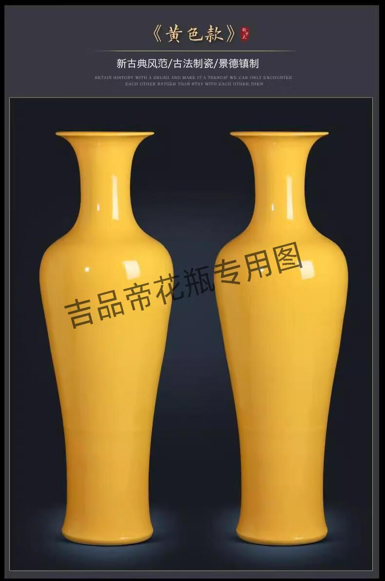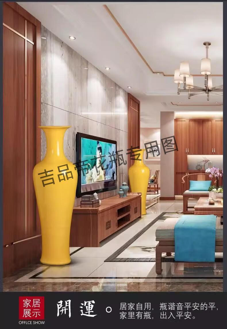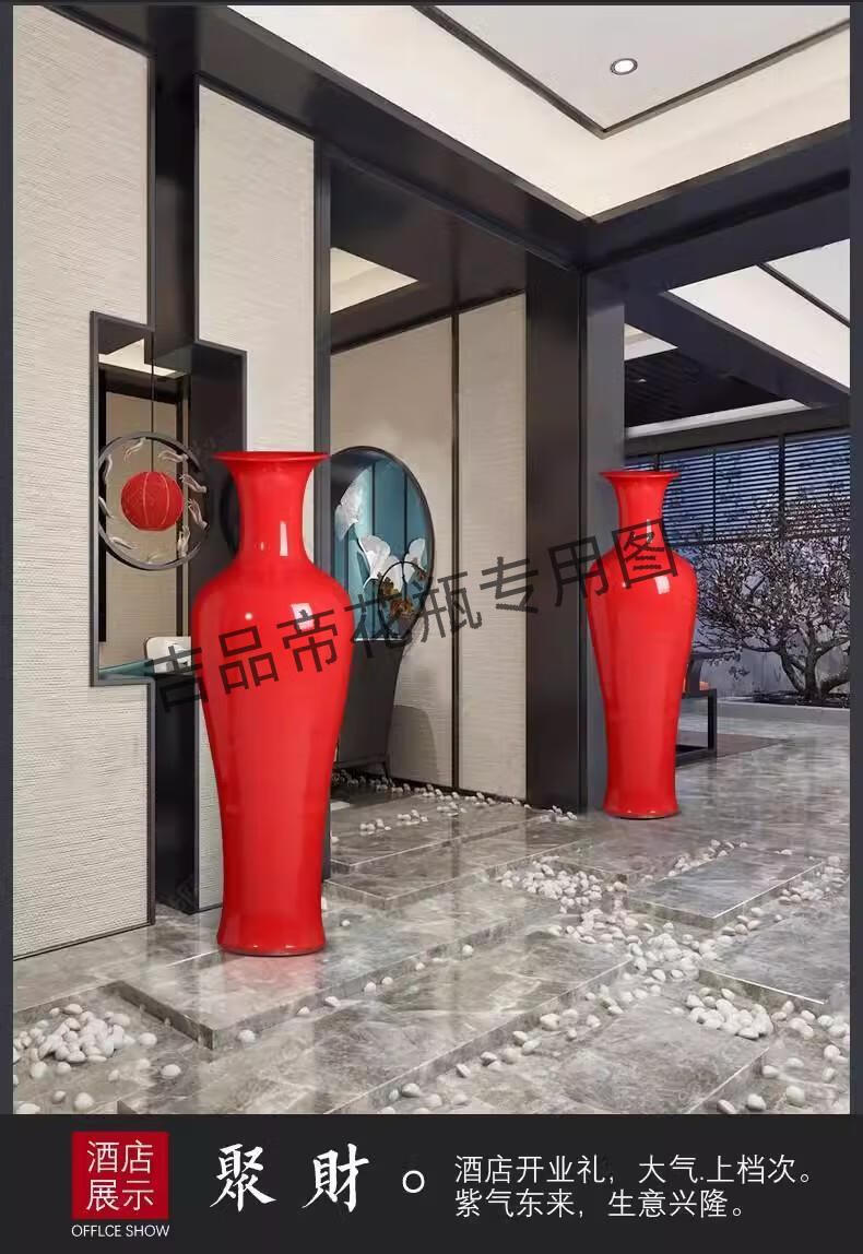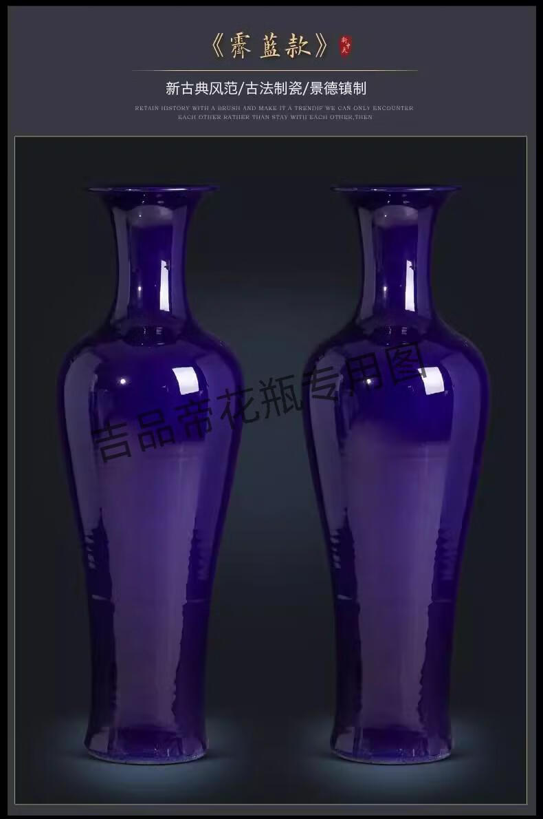 吉品帝陶瓷器中国红落地大花瓶中式客厅家居玄关装饰酒店插花摆件 蓝色/单个送底座 160cm