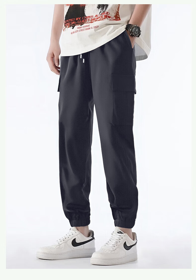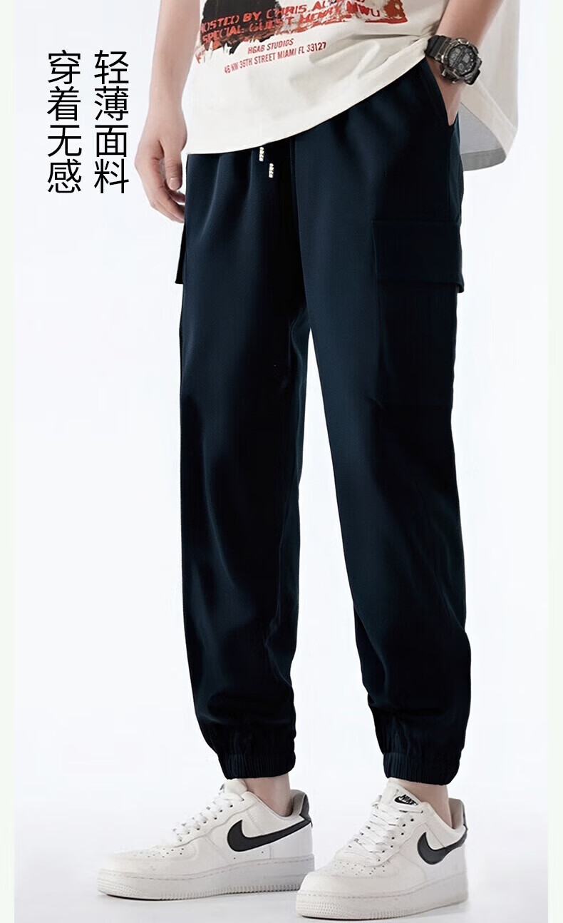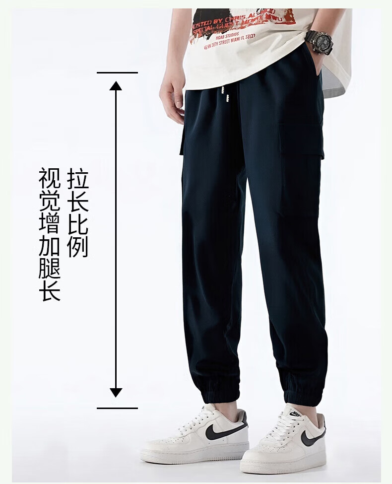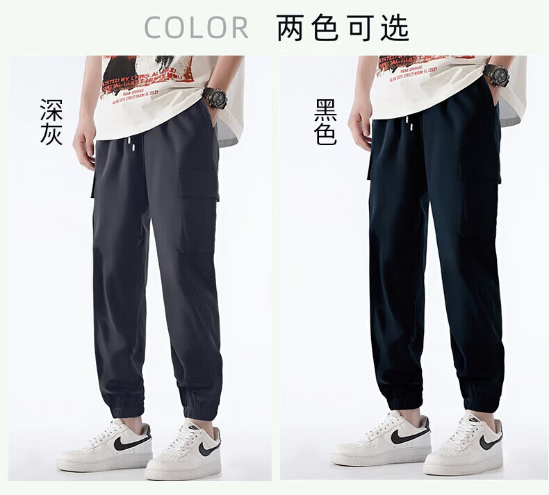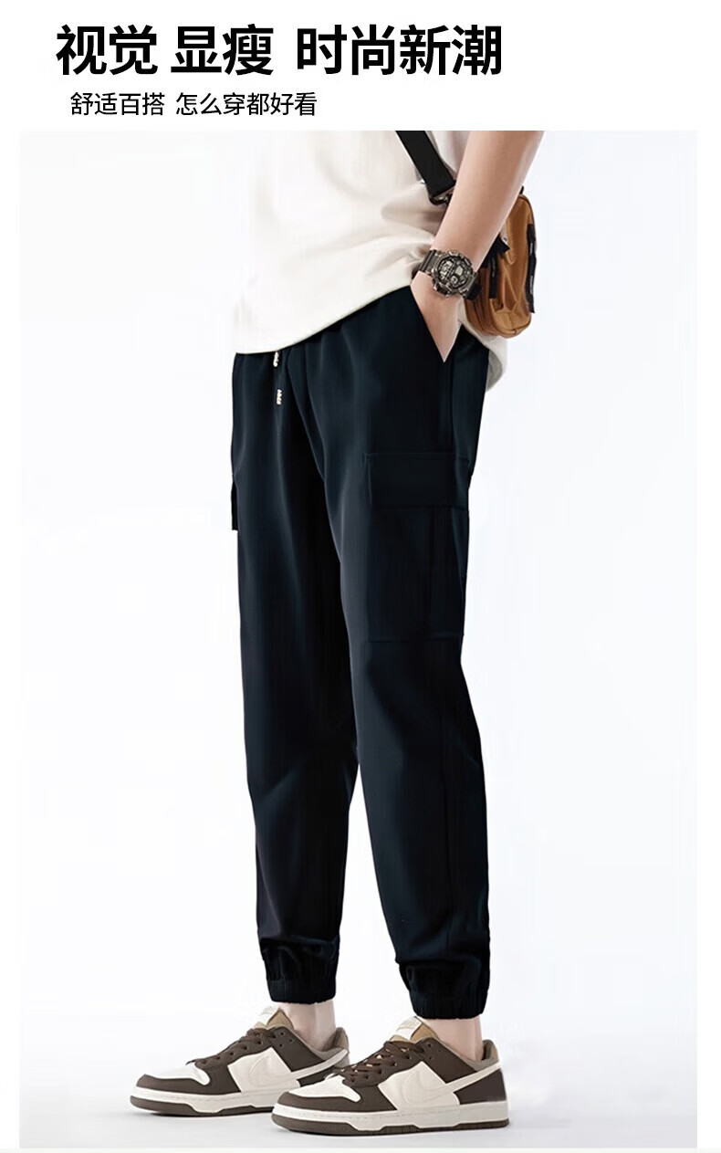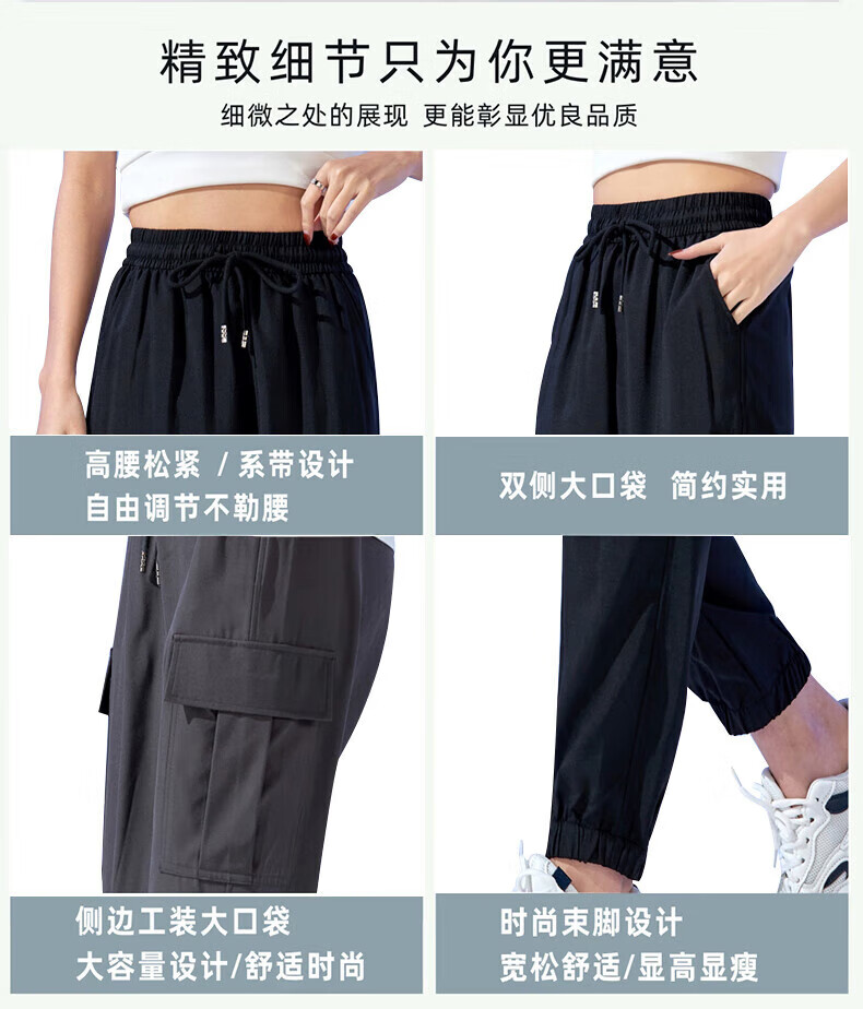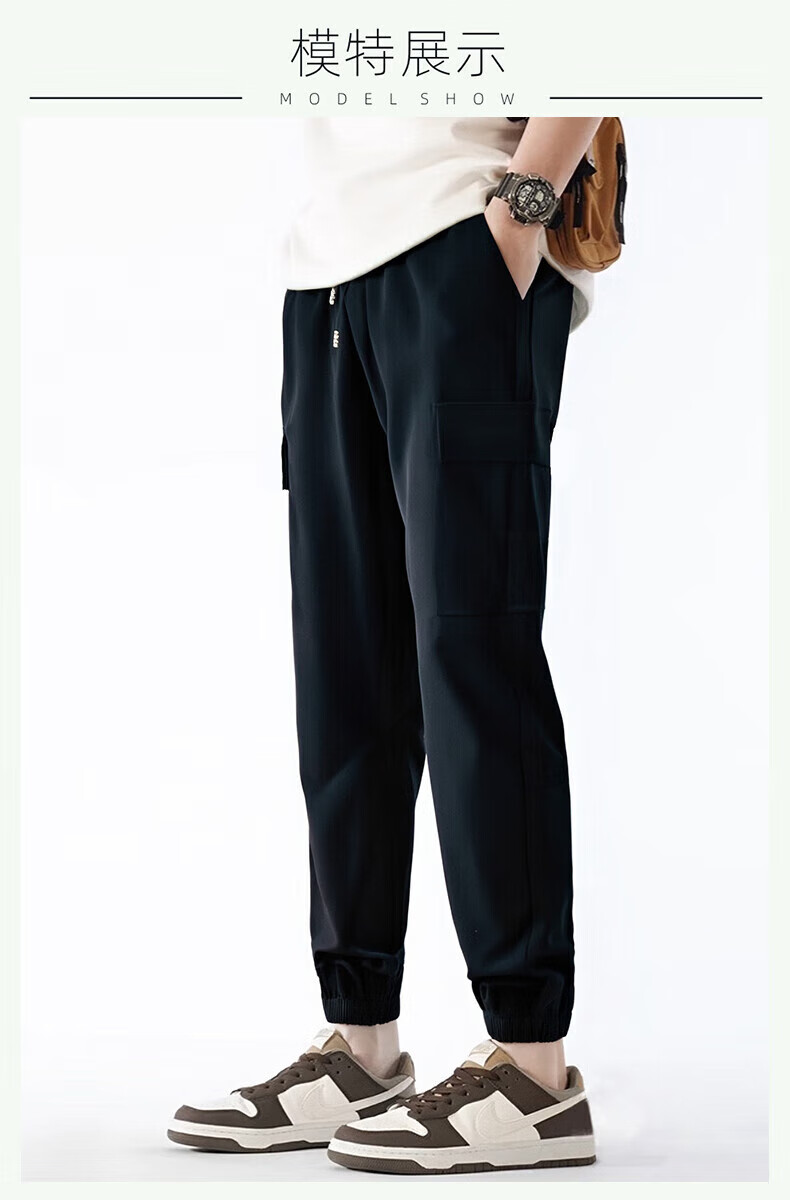 鸭鸭(YAYA)工装休闲裤男女同款潮流宽松运动情侣束脚速干长裤子 黑色 2XL