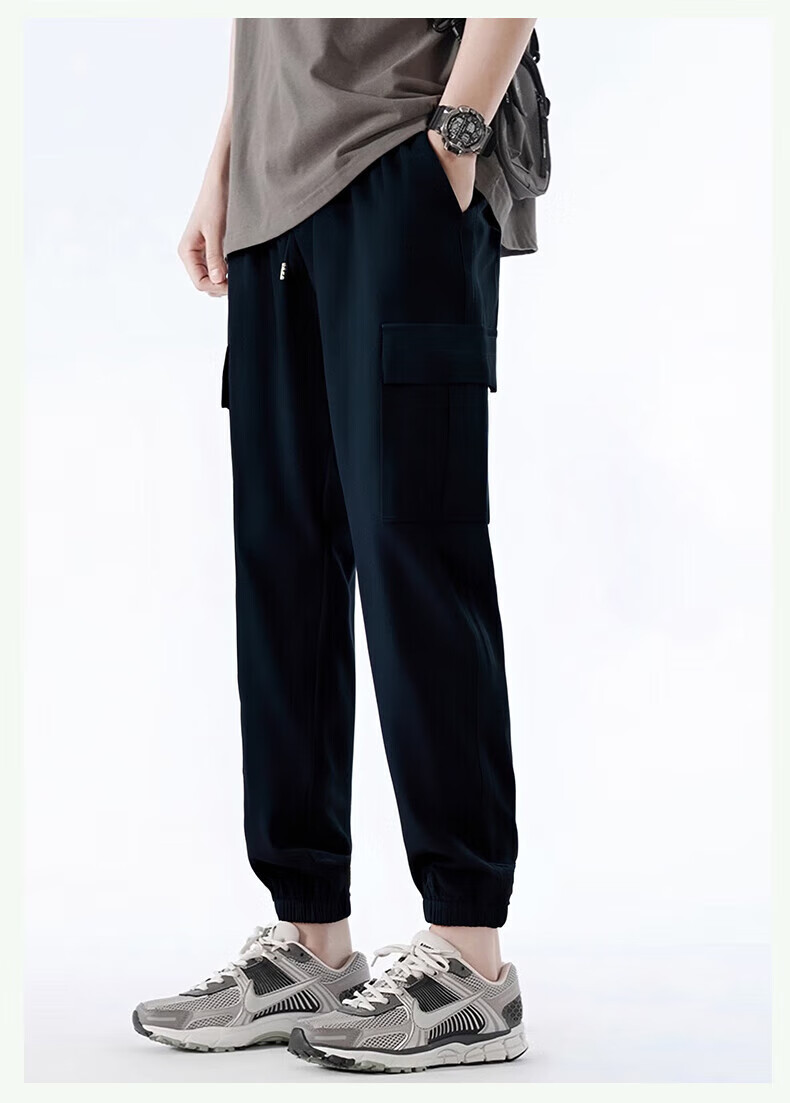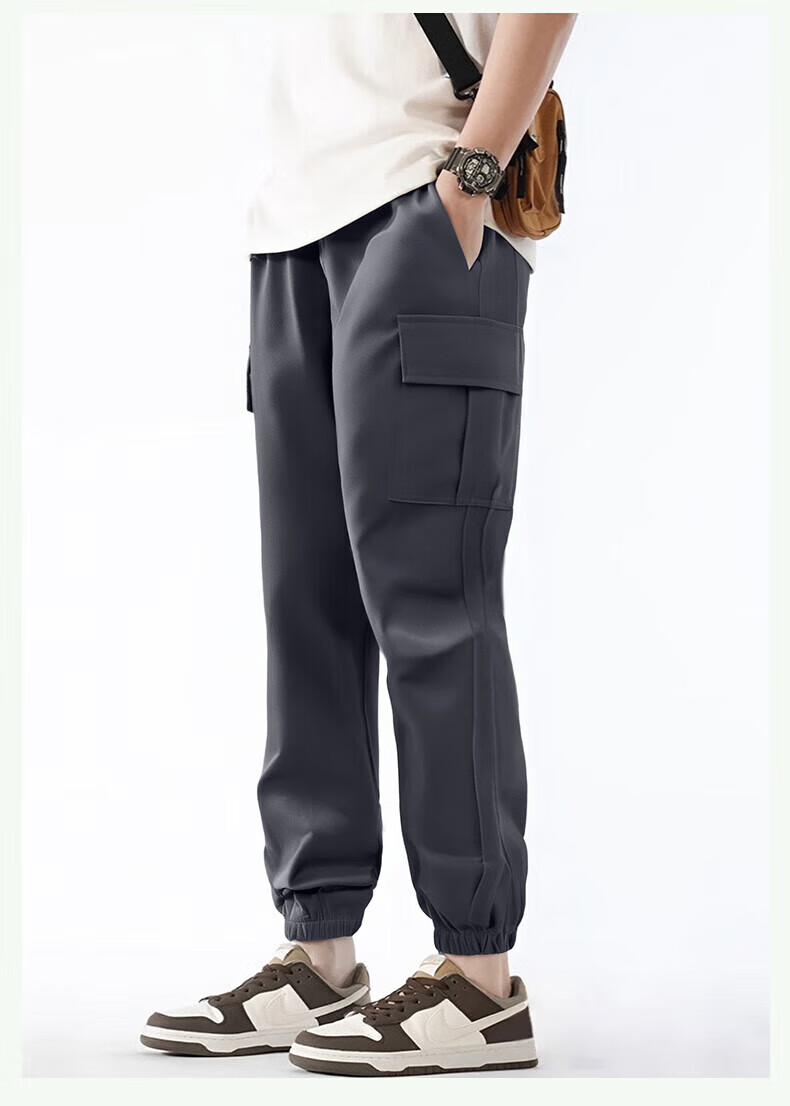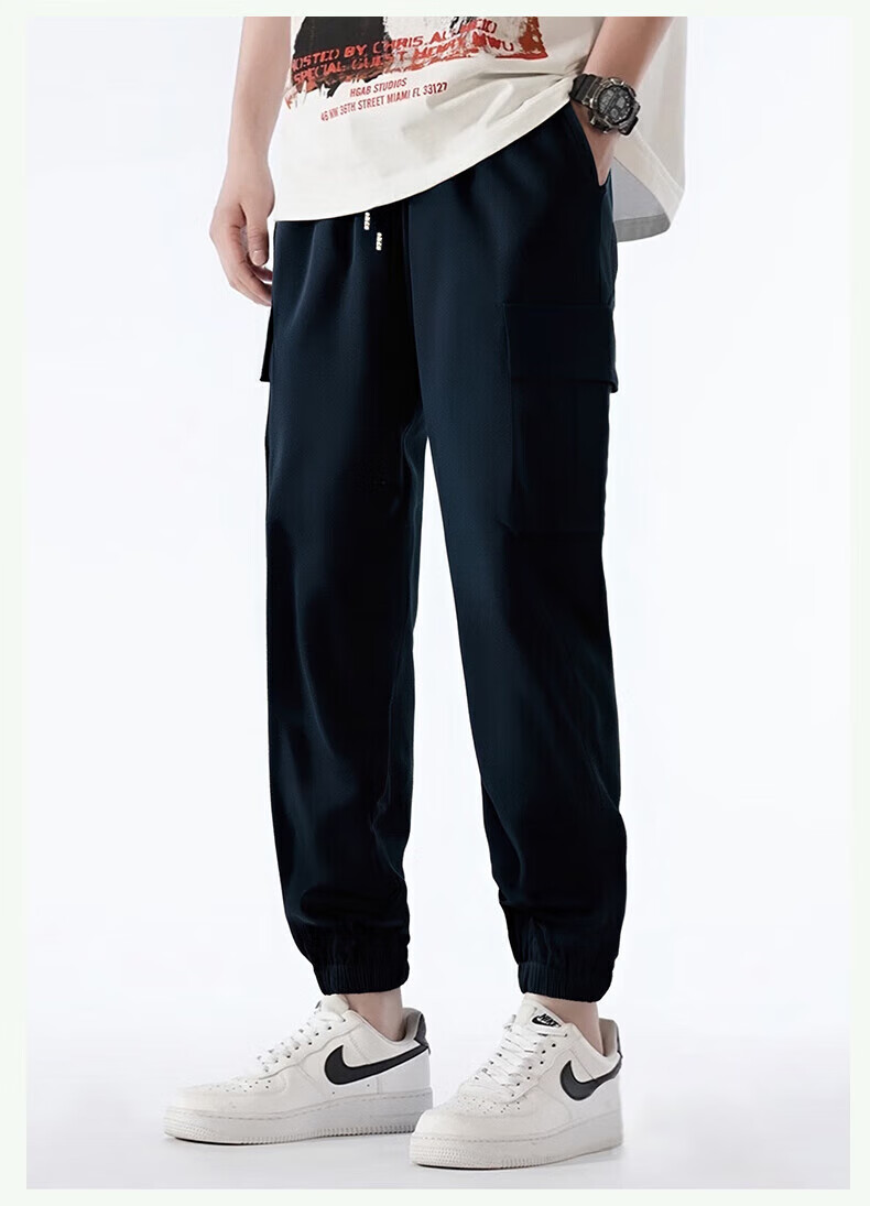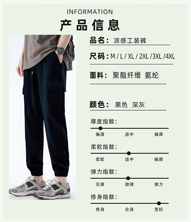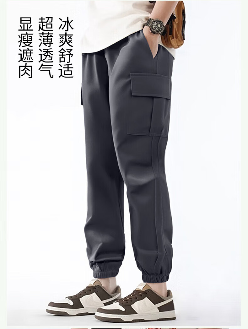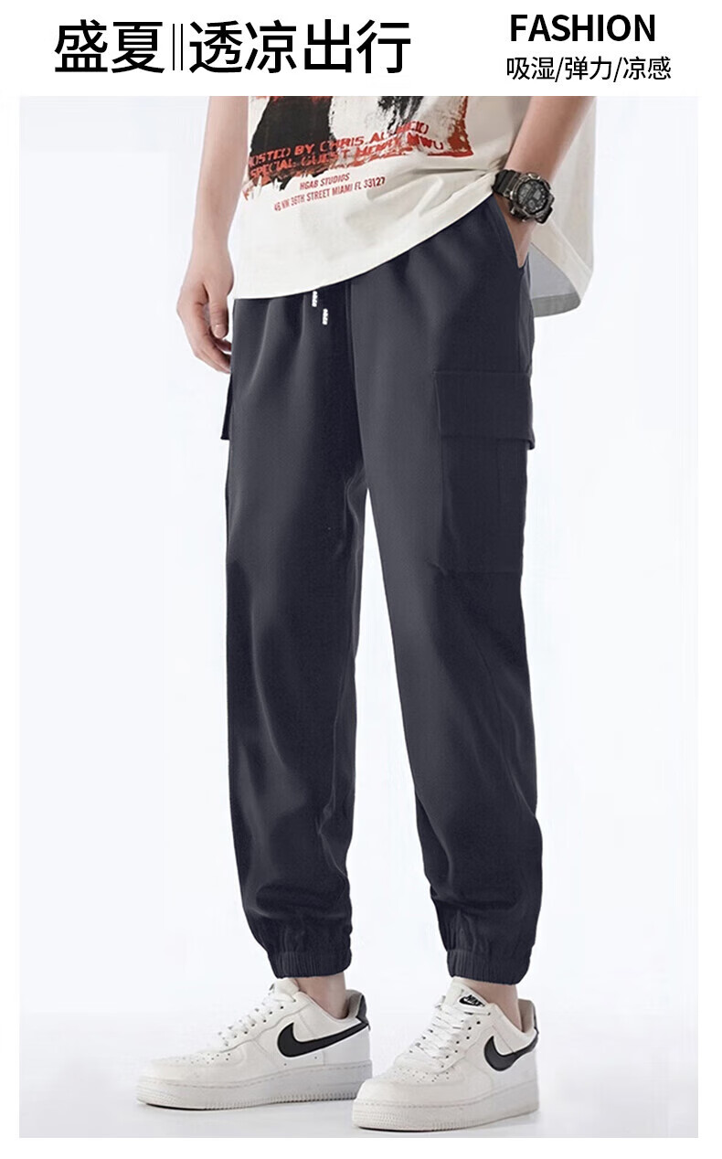 鸭鸭(YAYA)工装休闲裤男女同款潮流宽松运动情侣束脚速干长裤子 黑色 2XL
