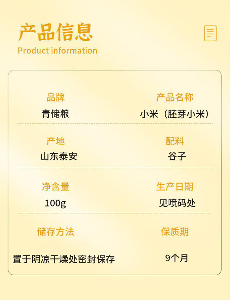 青储粮胚芽小米杂粮黄小米新米当季粮食煮粥煮饭粒粒饱满 1.5kg(100g*15袋独立装)