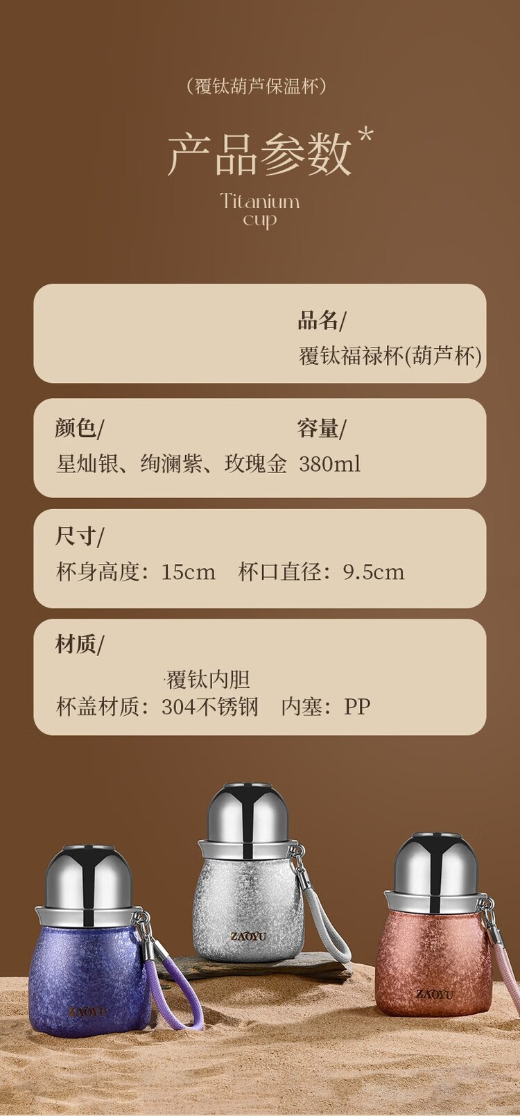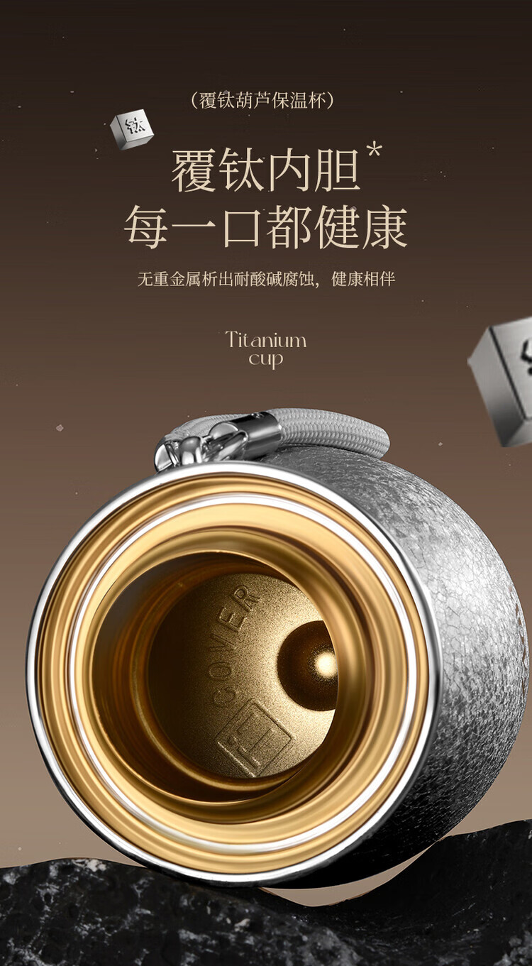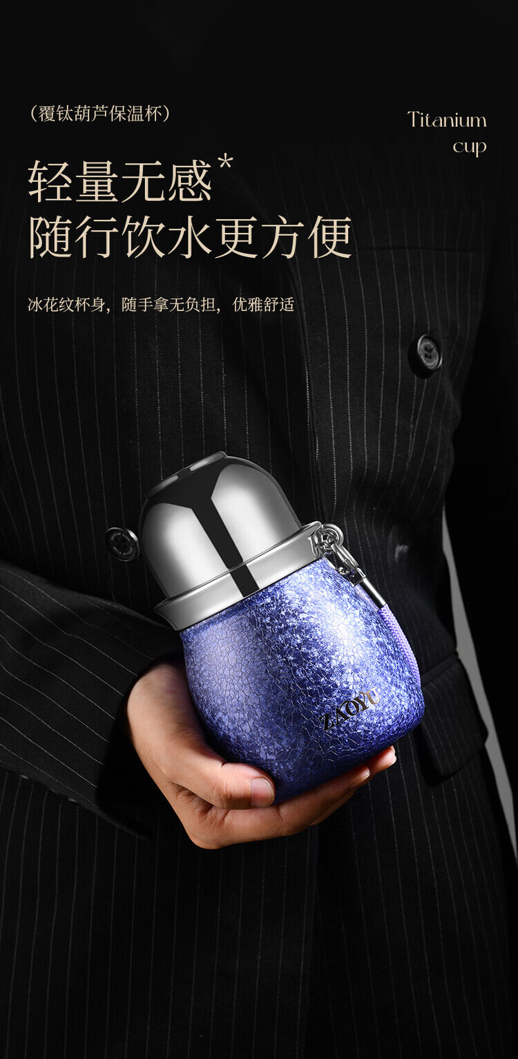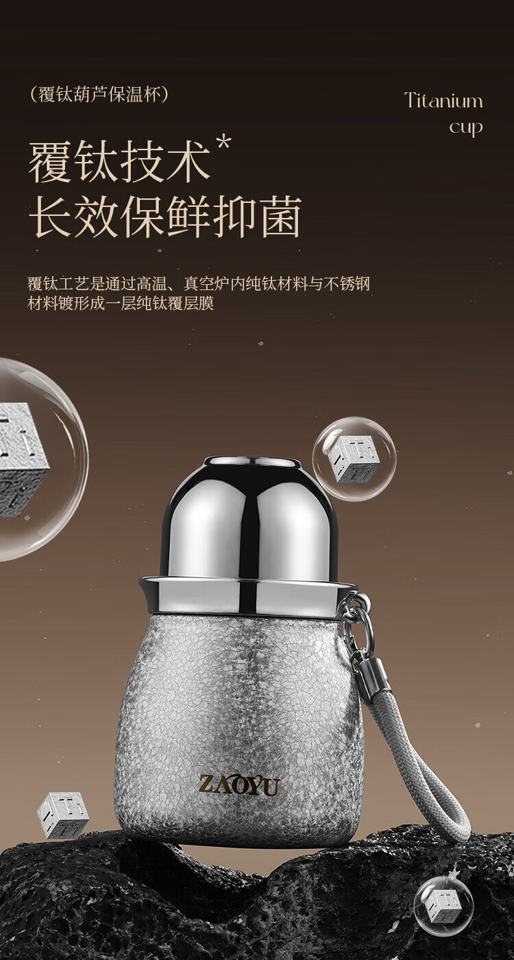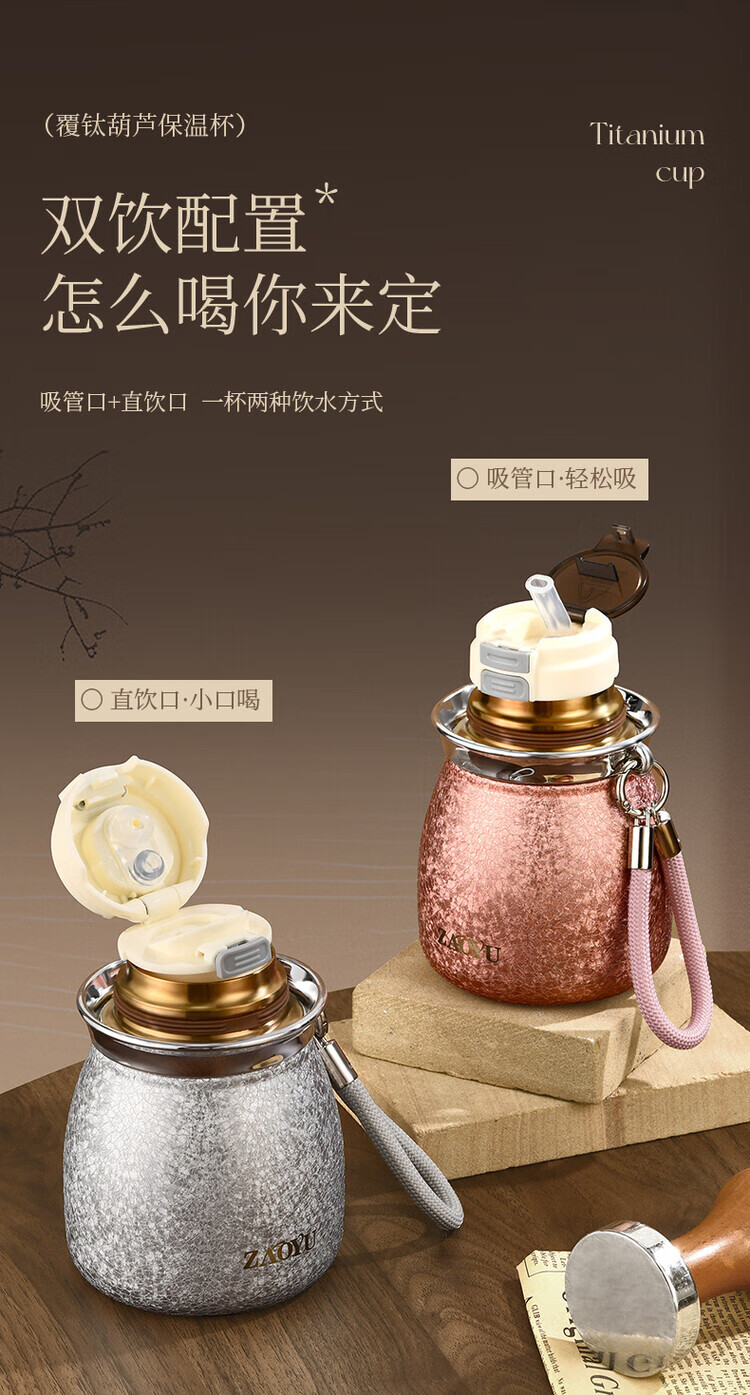 SOXW德国新款感钛杯葫芦保温杯女士高颜值小巧便携双饮口覆钛水杯 【繁花似锦】380ml绿色