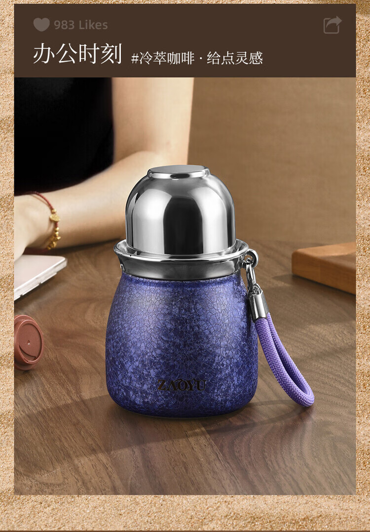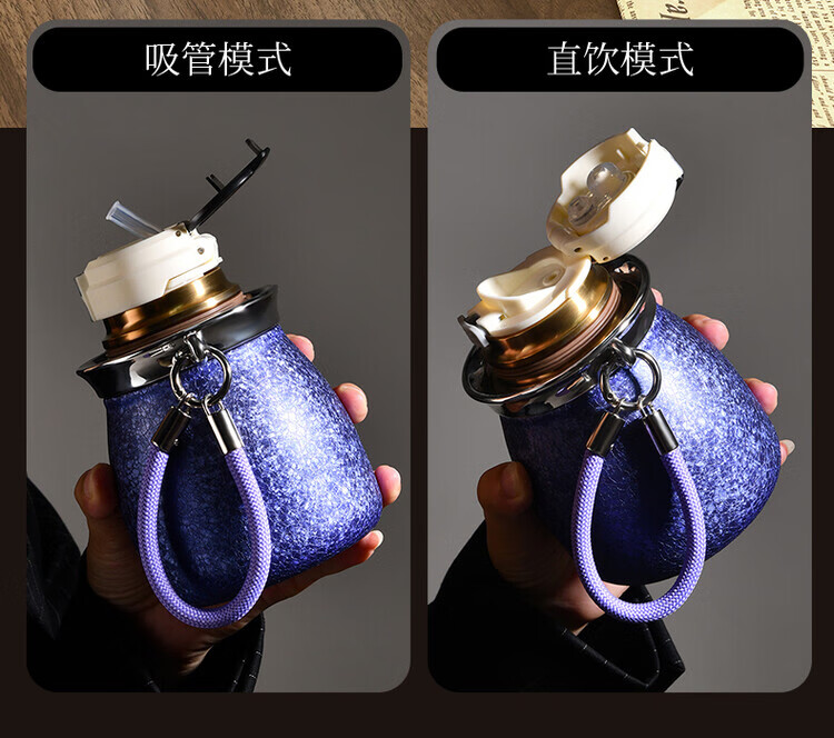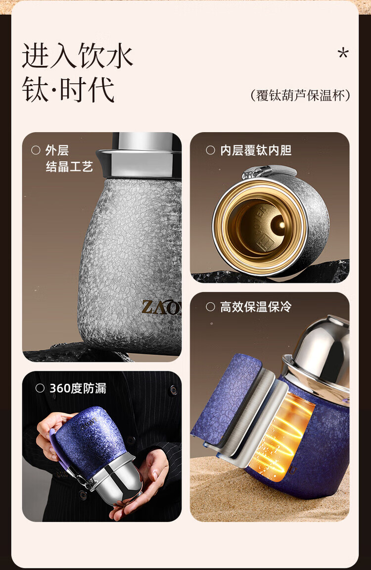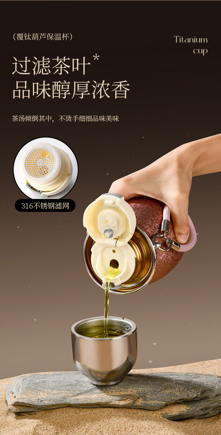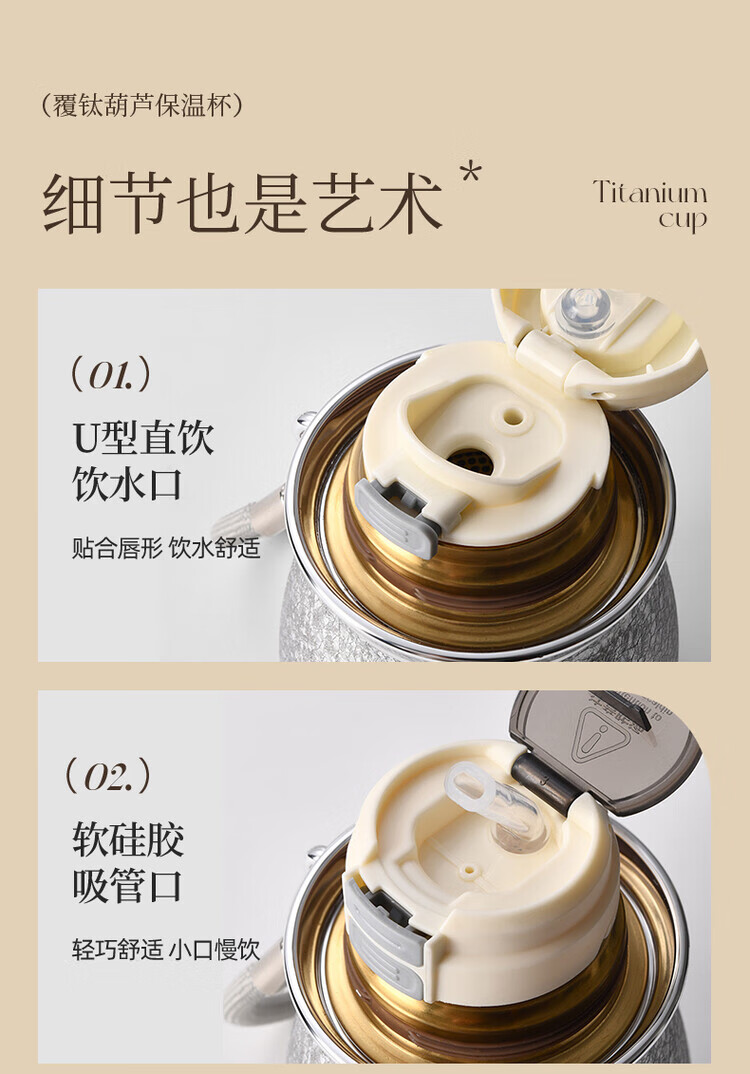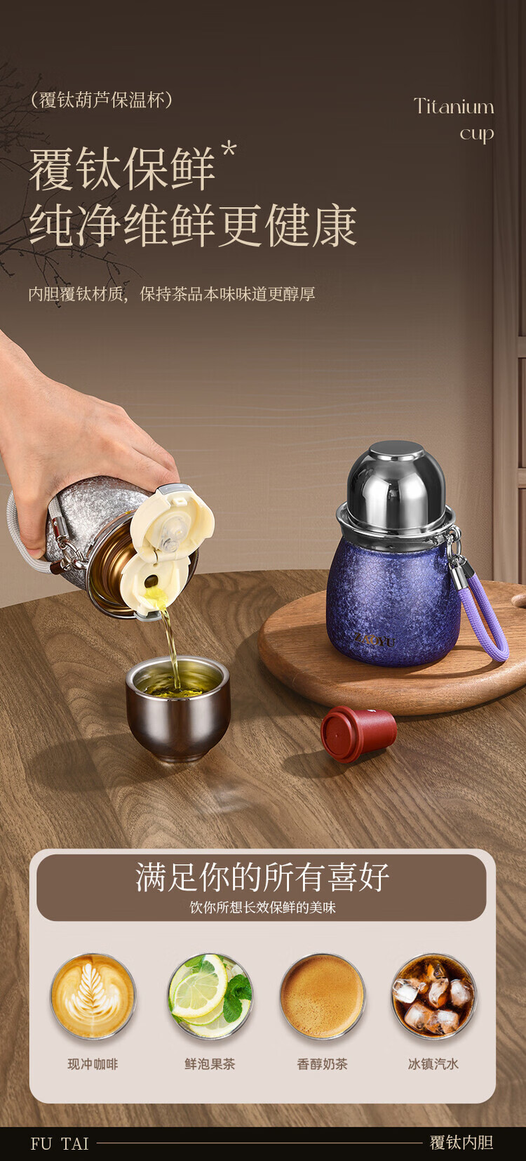 SOXW德国新款感钛杯葫芦保温杯女士高颜值小巧便携双饮口覆钛水杯 【繁花似锦】380ml绿色