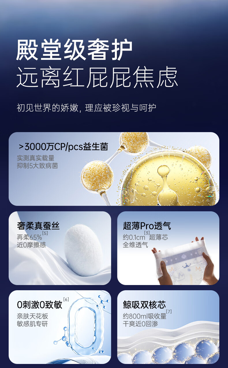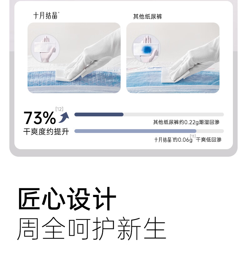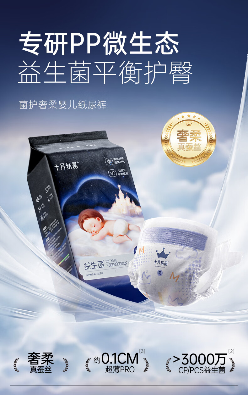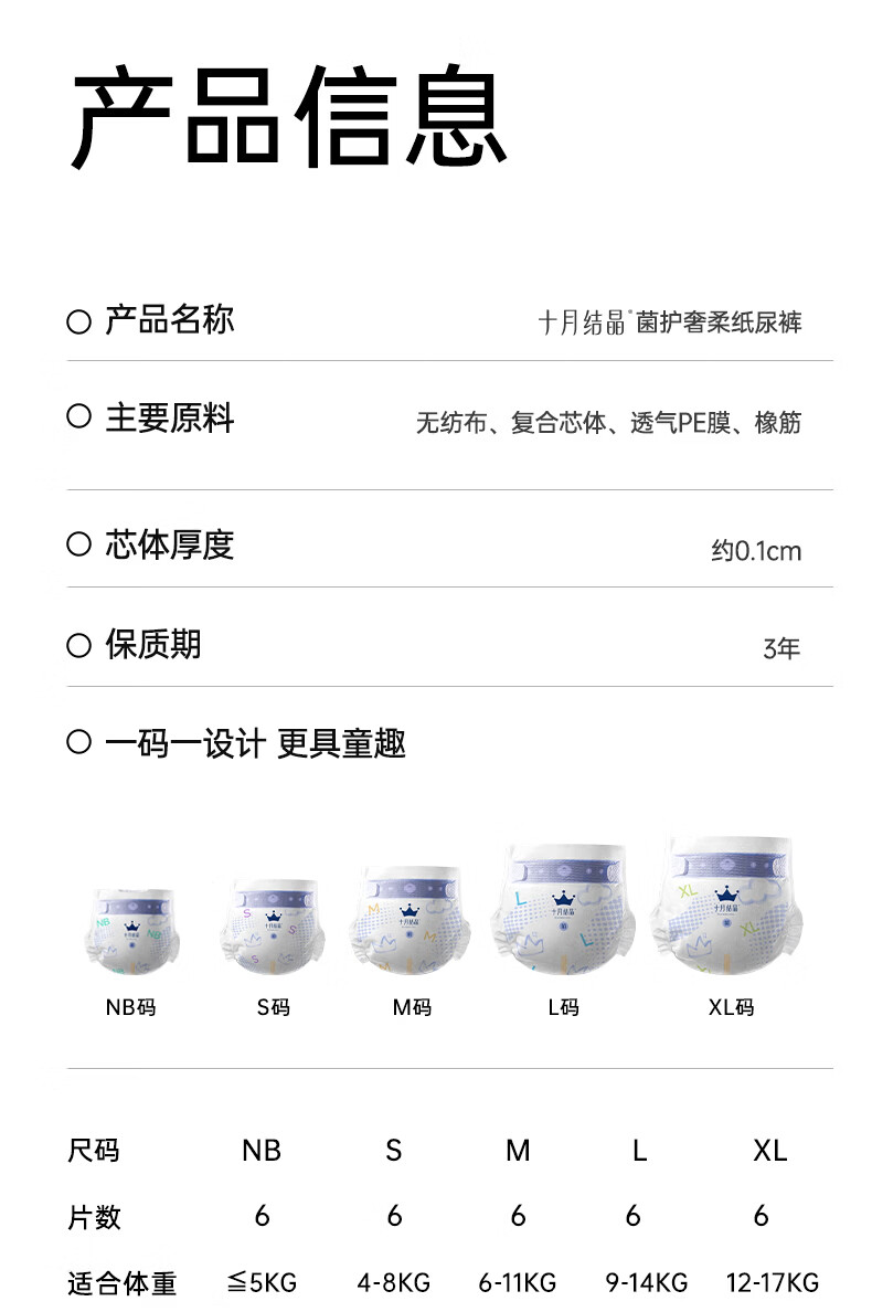 十月结晶菌护奢柔纸尿裤益生菌超薄透气新生儿尿不湿【试用装】NB码6片