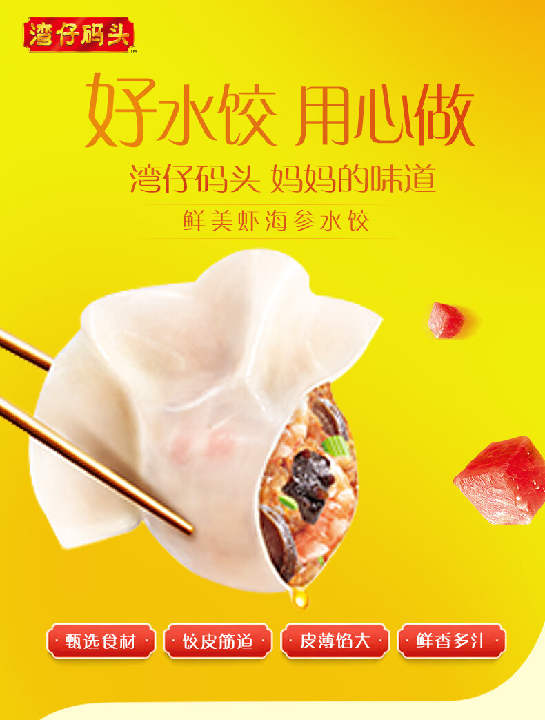湾仔码头鲜美虾海参水饺400g24只早餐食品速食半成品面点饺子