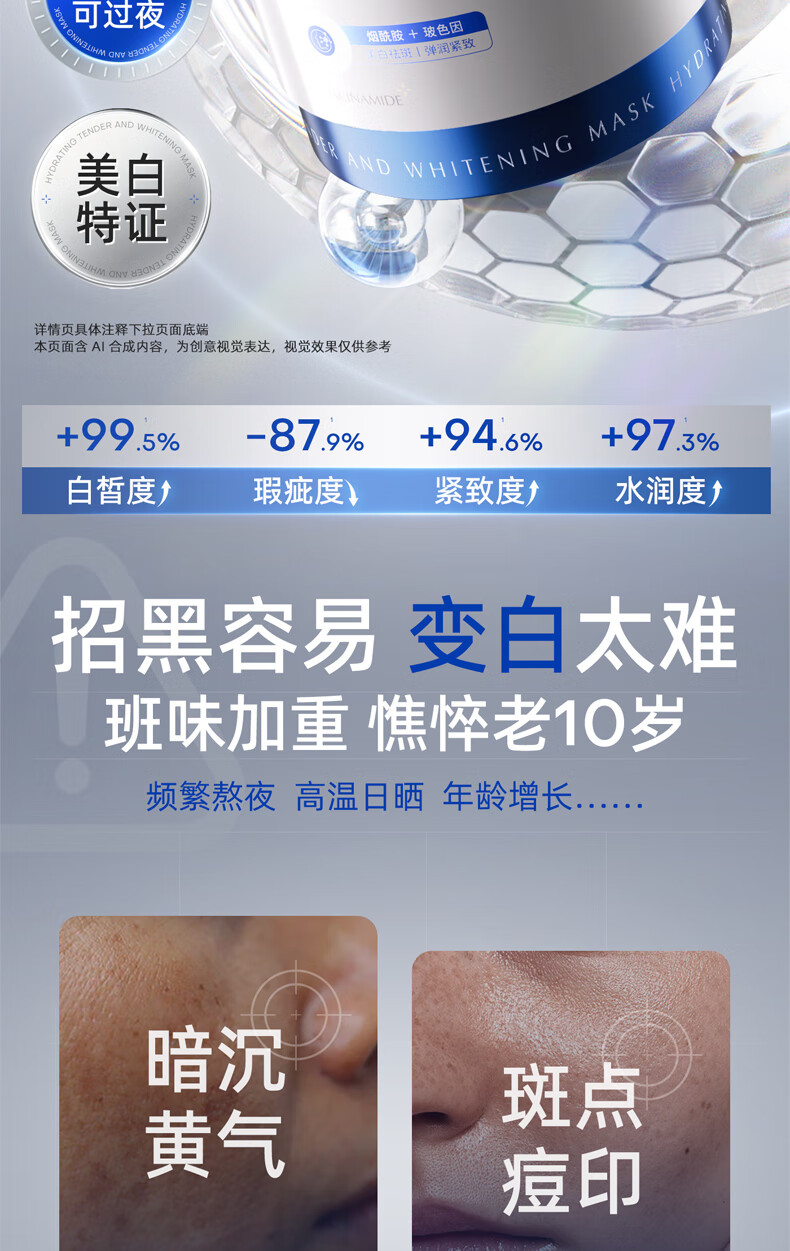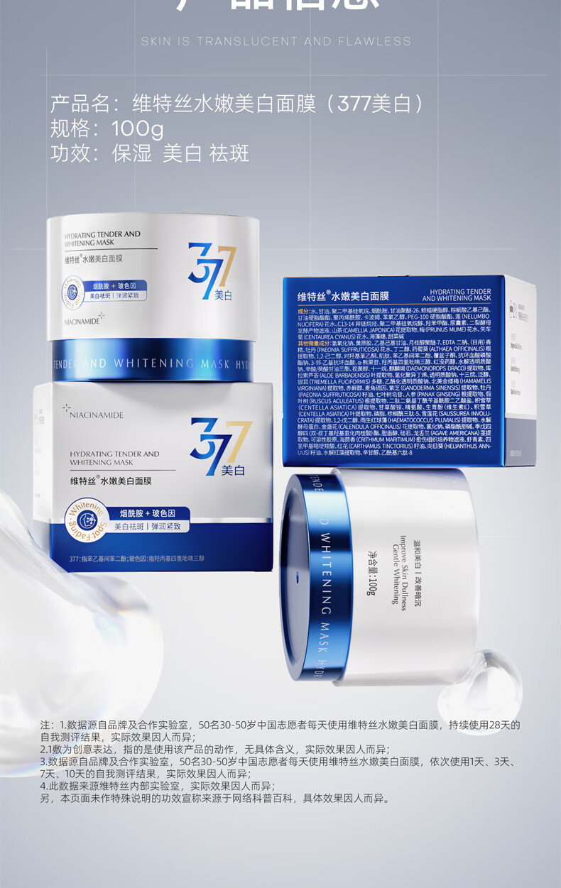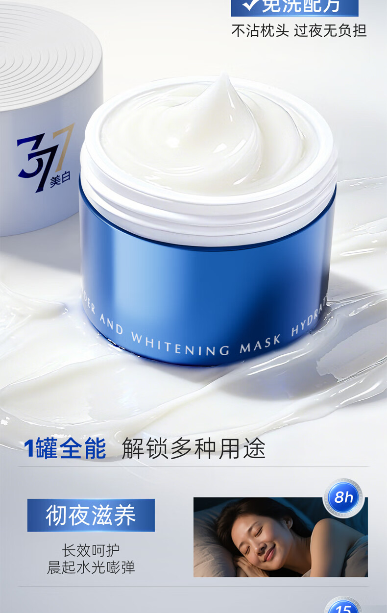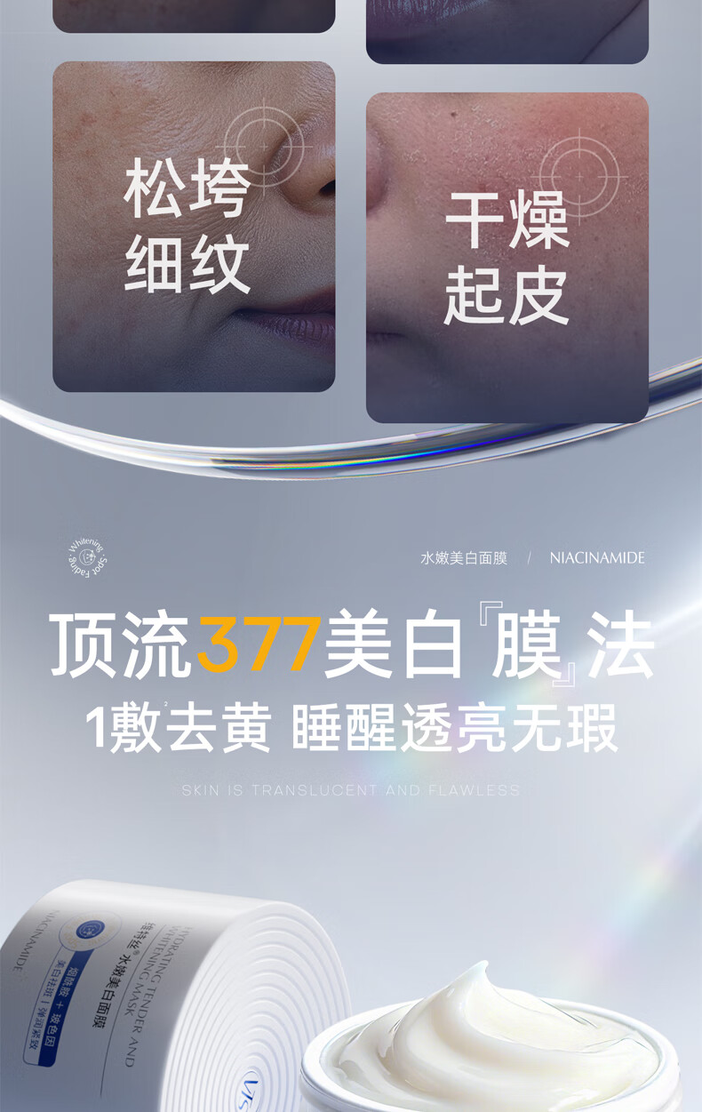 维特丝377美白睡眠面膜膏涂抹式免洗紧致抗衰皱补水去黄淡斑提亮男女士