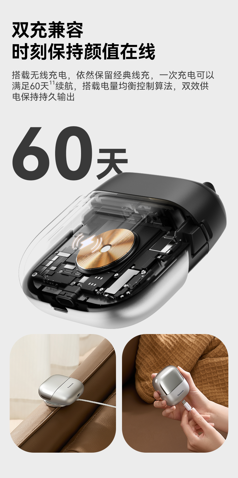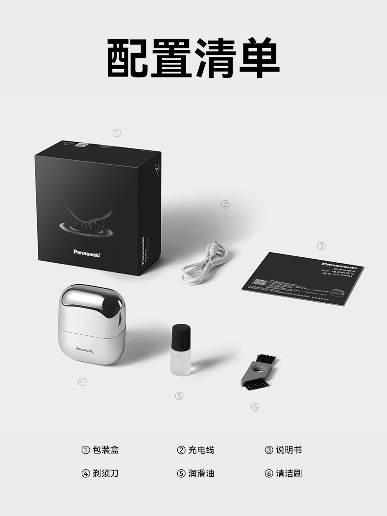 松下(Panasonic)小方盒2.0电动剃须刀便携款往复式进口磁悬浮马达电动刮胡刀Type-c可水洗男士生日礼物男友CM31黑