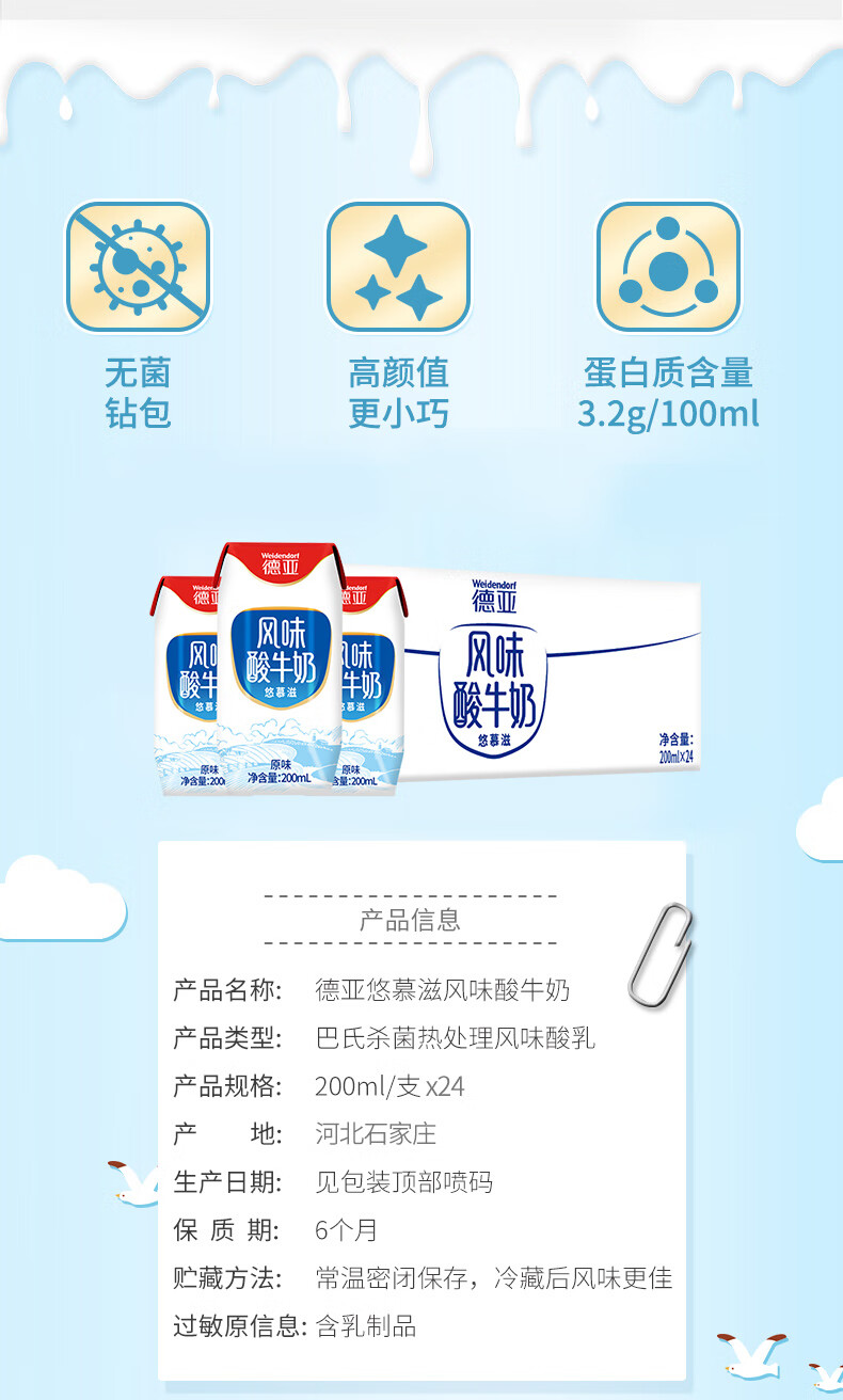 德亚(Weidendorf)【国产】常温原味酸奶200ml*24盒/206g*24盒 新老版本随机