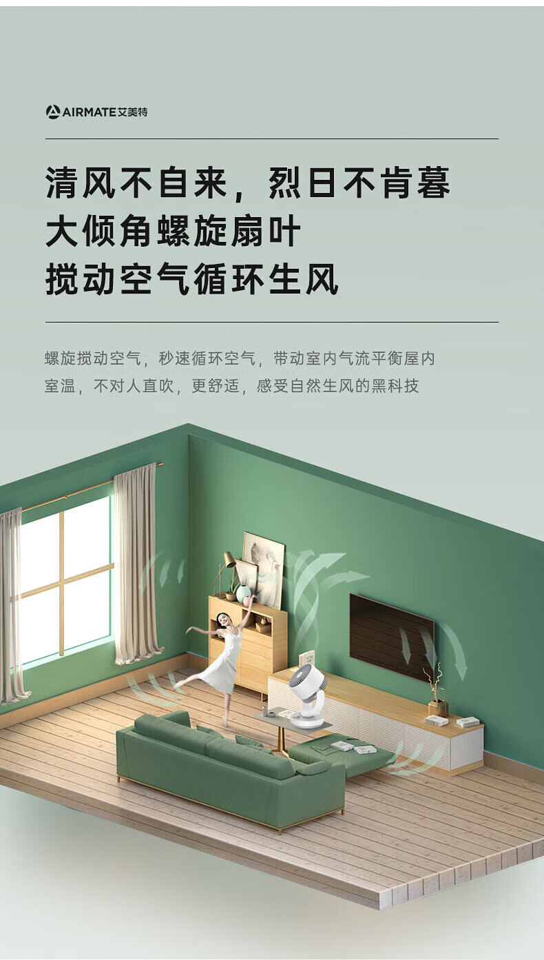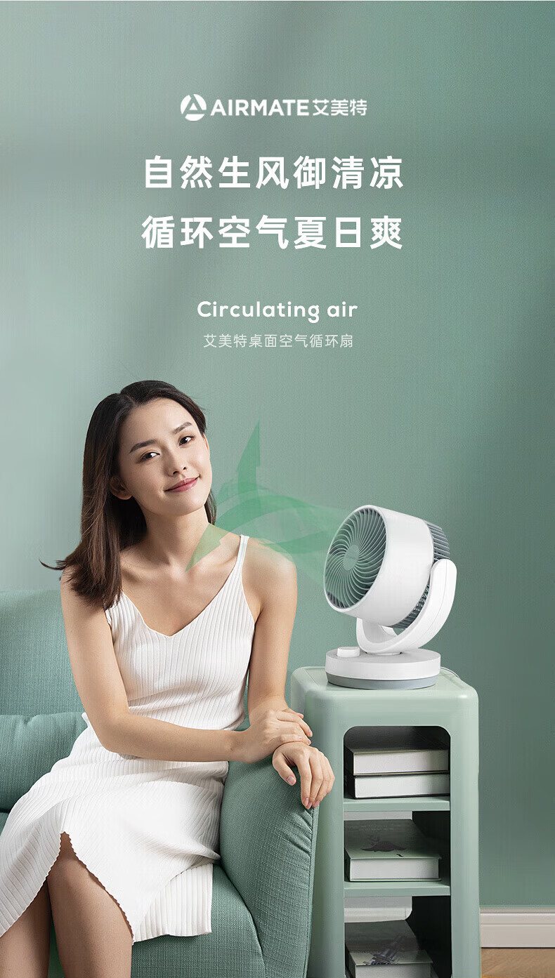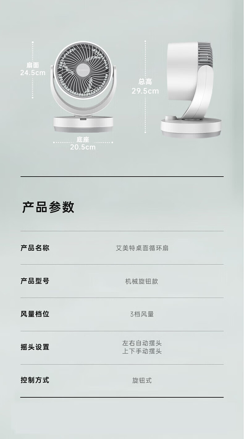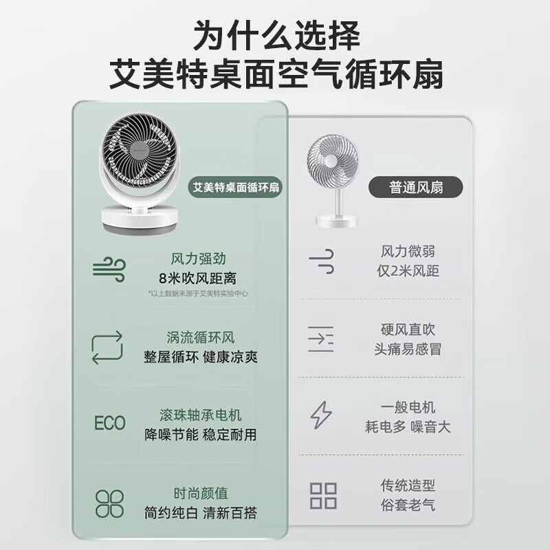艾美特(AIRMATE)【桌面空气循环扇】电风扇家用办公室迷你小风扇宿舍台式桌面扇循环对流大风量摇头遥控轻音低噪扇 机械旋钮款【8米风距】