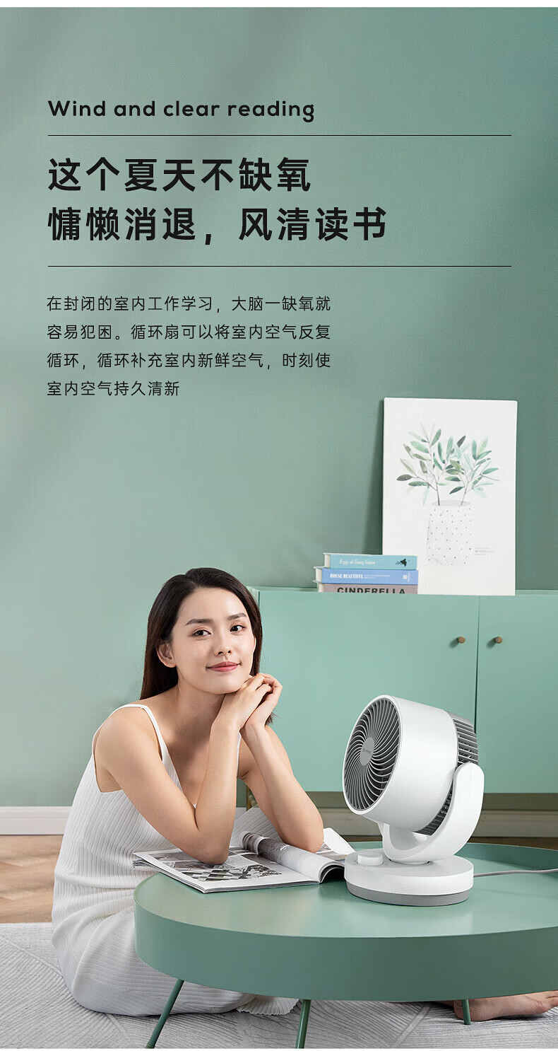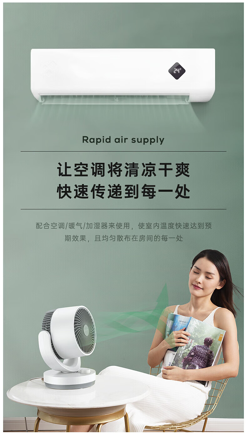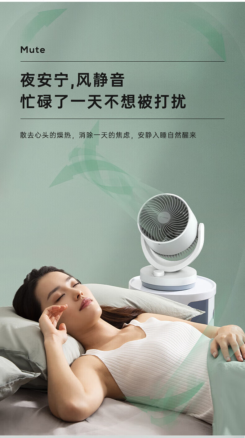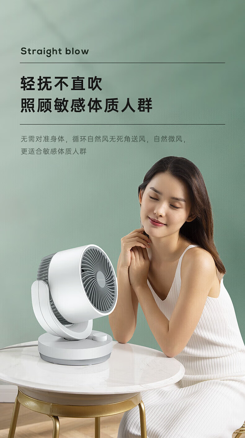 艾美特(AIRMATE)【桌面空气循环扇】电风扇家用办公室迷你小风扇宿舍台式桌面扇循环对流大风量摇头遥控轻音低噪扇 机械旋钮款【8米风距】