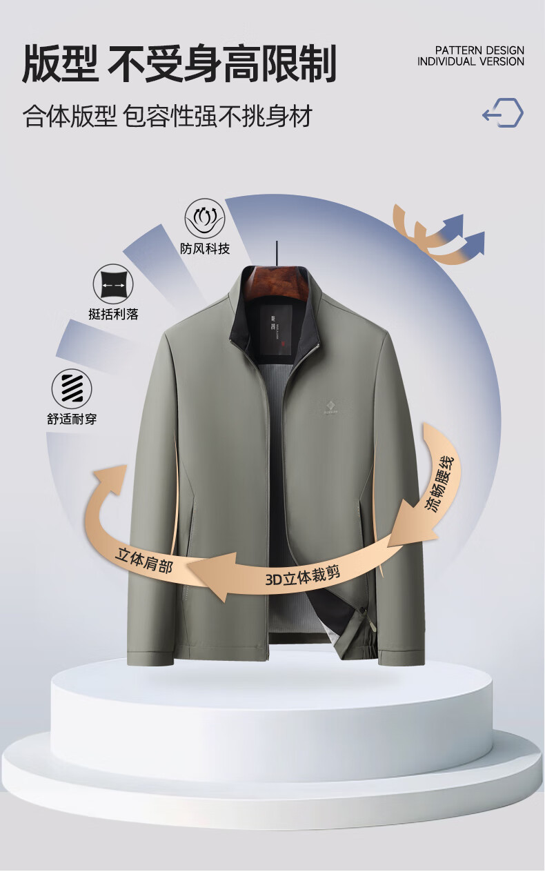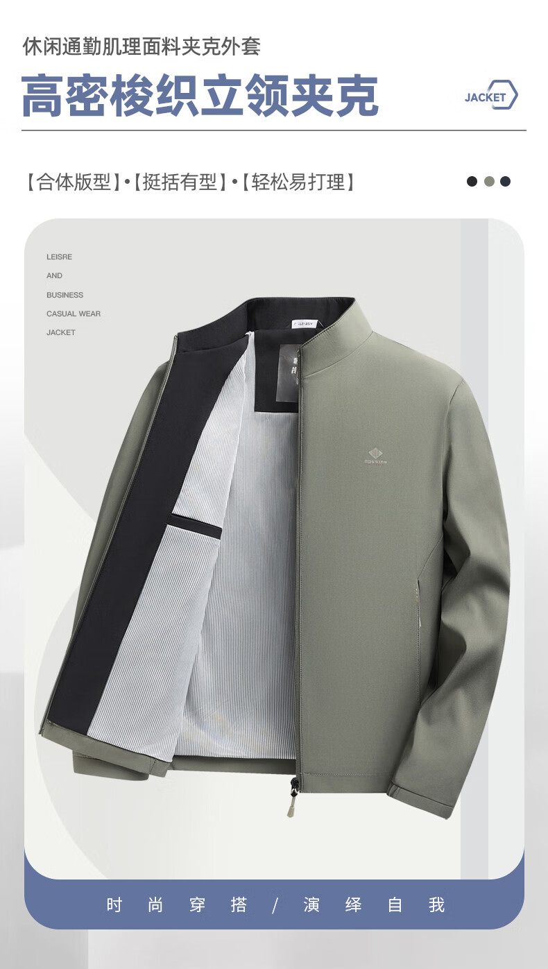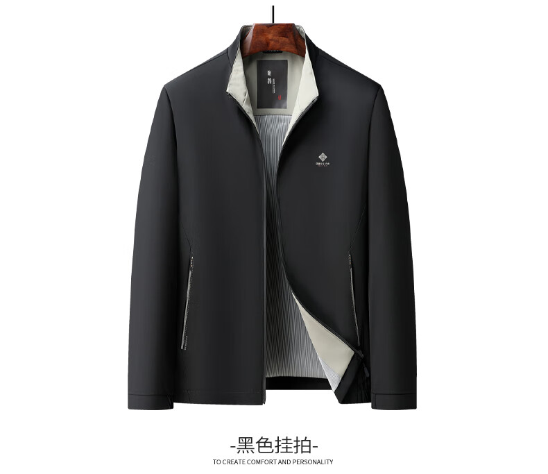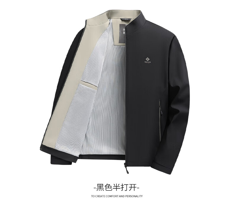 SHANSHAN杉杉夹克男2025春秋商务休闲时尚防风立领男士日常通勤夹克衫外套 黑色 4XL /195【建议180-210斤】