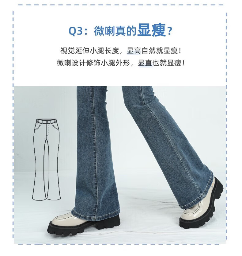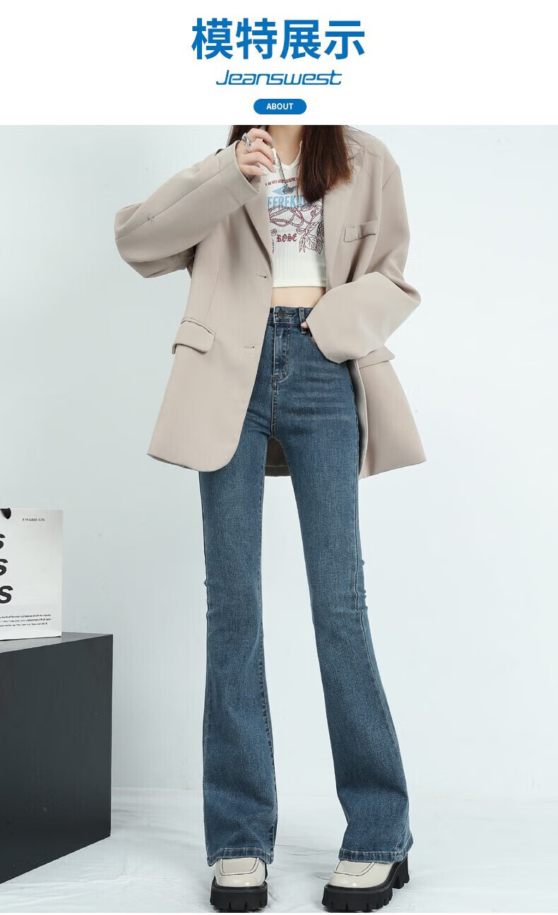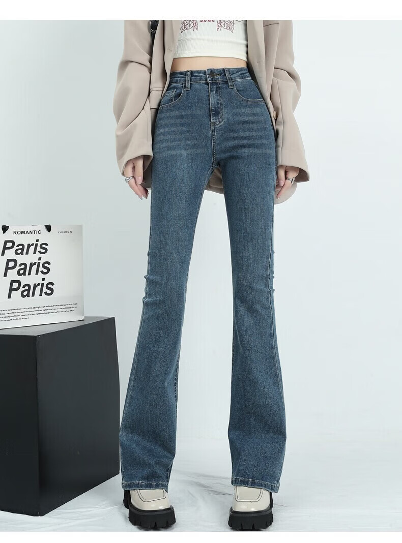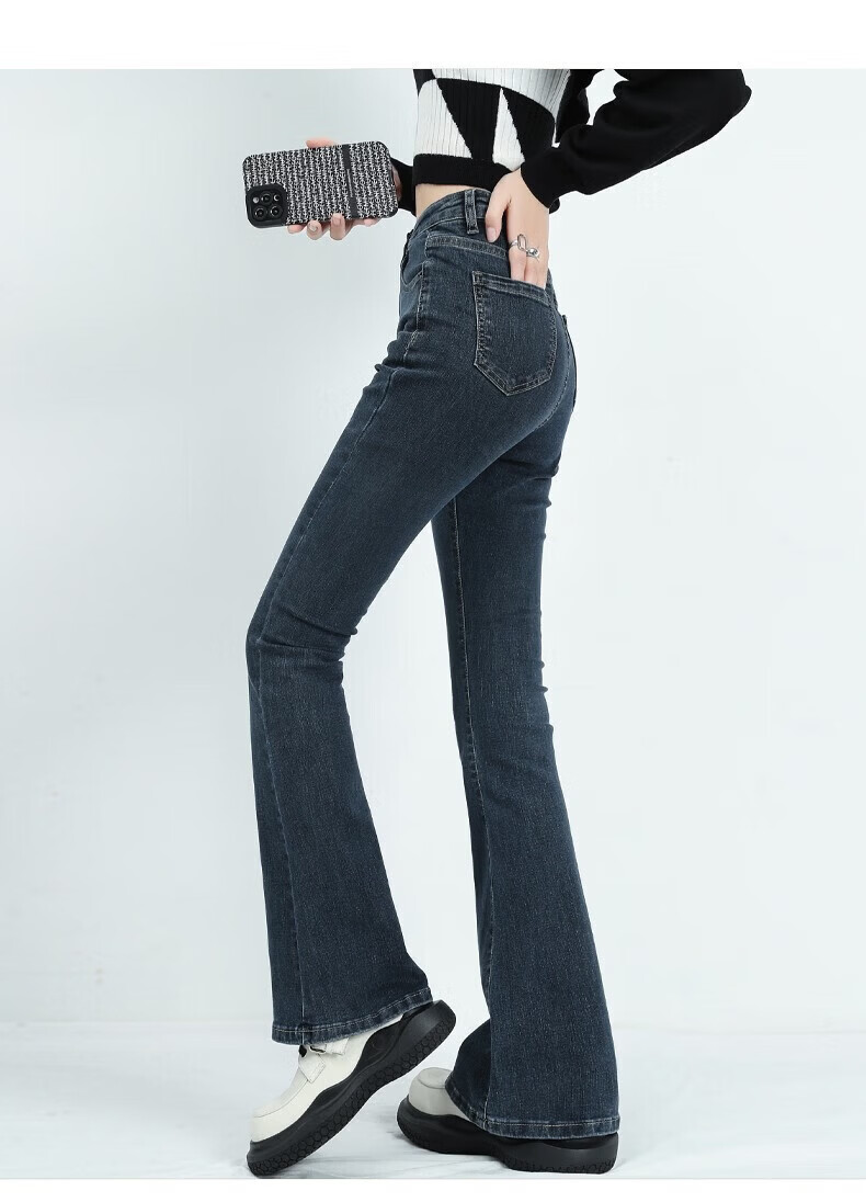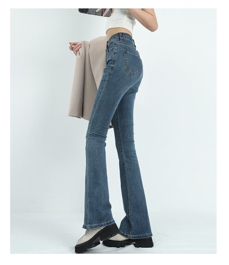 真维斯(Jeanswest)牛仔裤女秋季新款高腰显瘦微喇裤子时尚修身百搭舒适裤子女 复古蓝长裤身高163CM以下 S 建议【90-100】斤】