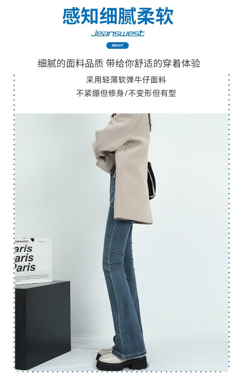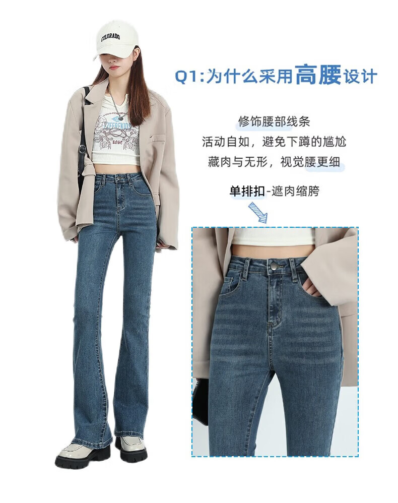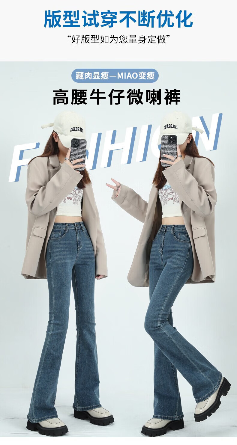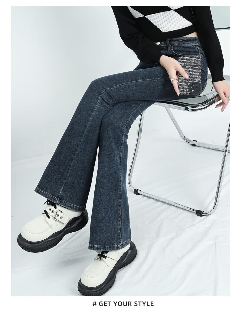 真维斯(Jeanswest)牛仔裤女秋季新款高腰显瘦微喇裤子时尚修身百搭舒适裤子女 复古蓝长裤身高163CM以下 S 建议【90-100】斤】