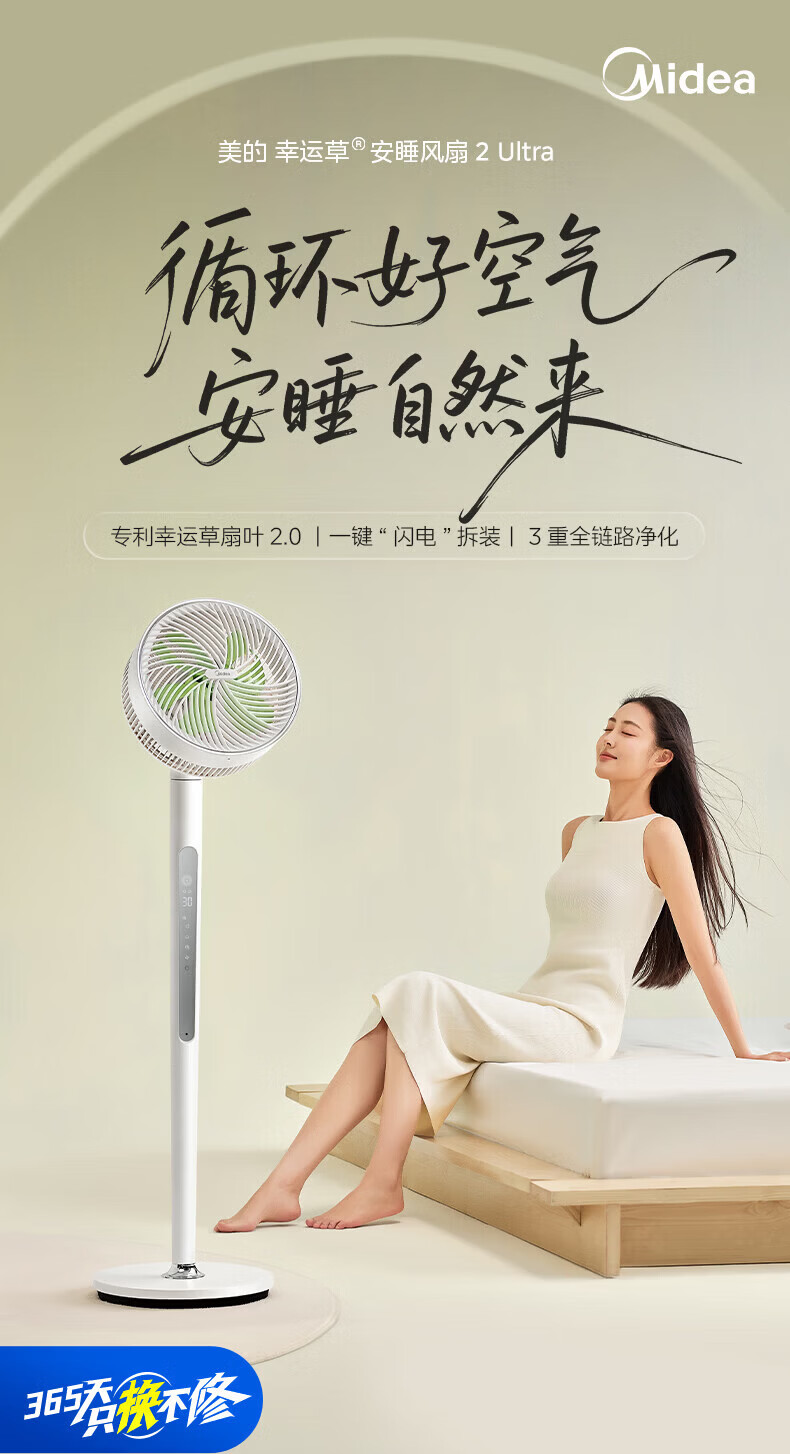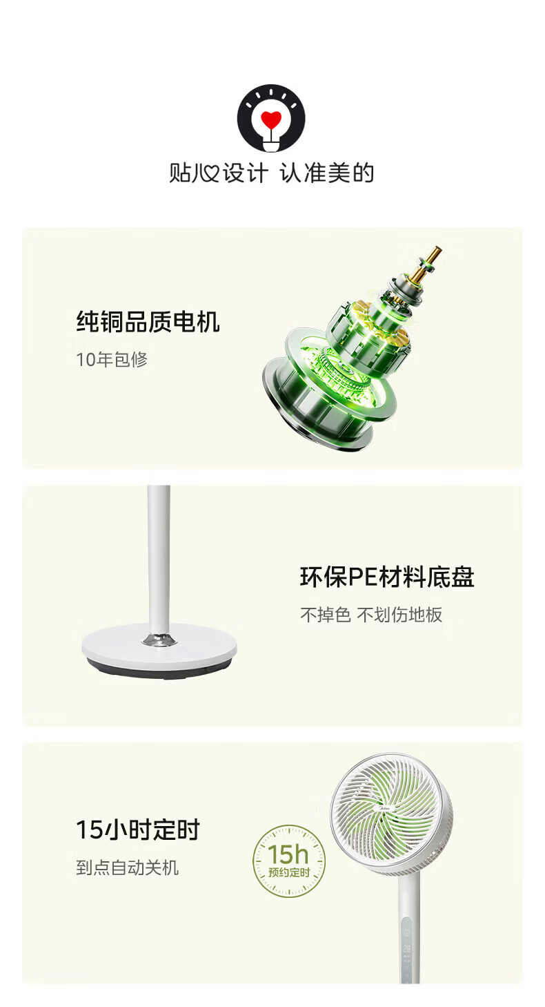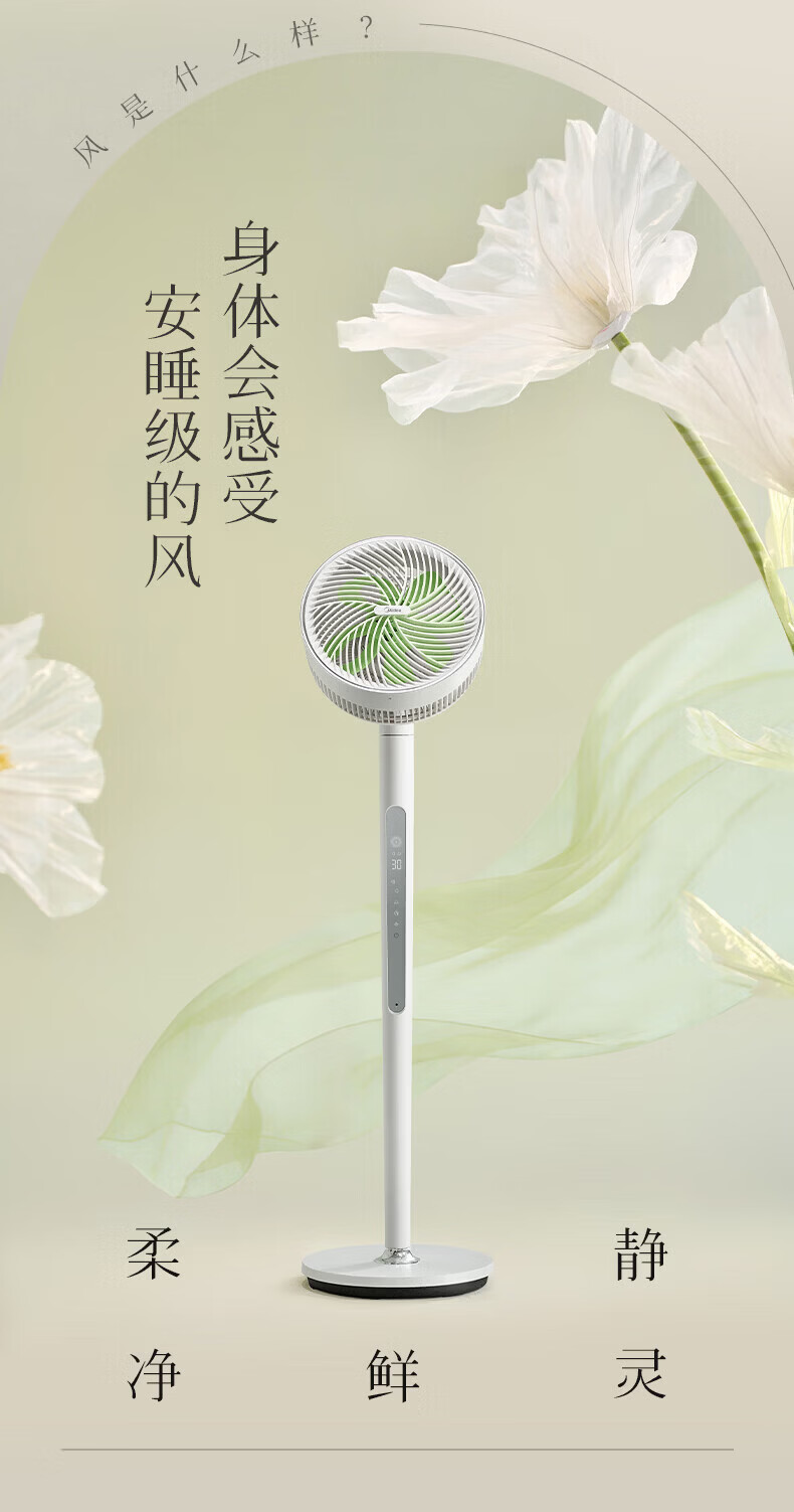 美的(Midea)风扇低音落地扇循环卧室台扇遥控低音自动摇头换气扇空调伴侣四季可用 幸运草语音+遥控+APP 幸运草语音遥控+一级能效+轻音低噪