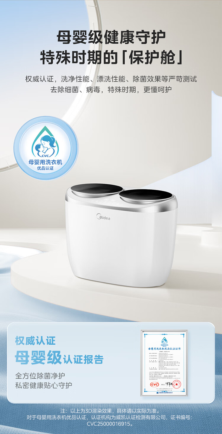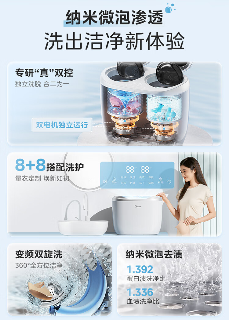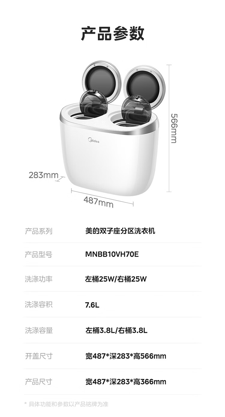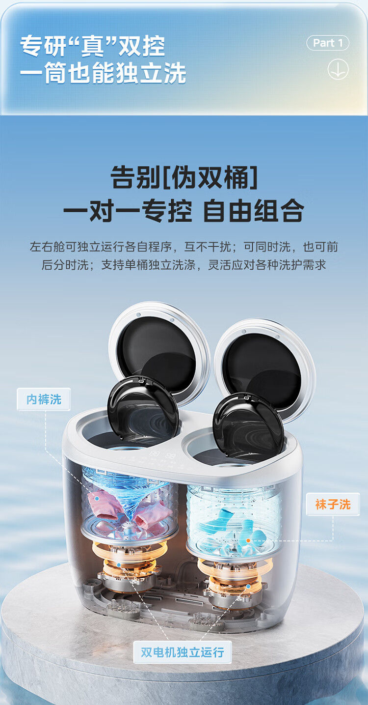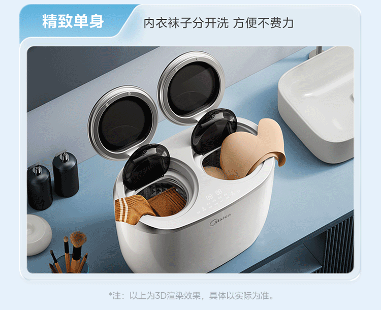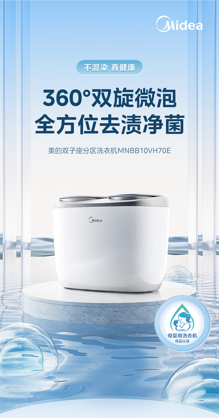 美的(Midea)双子座 波轮洗衣机全自动 1KG迷你内衣洗 分区洗衣机 专业除菌螨 MNBB10VH70E 以旧换新