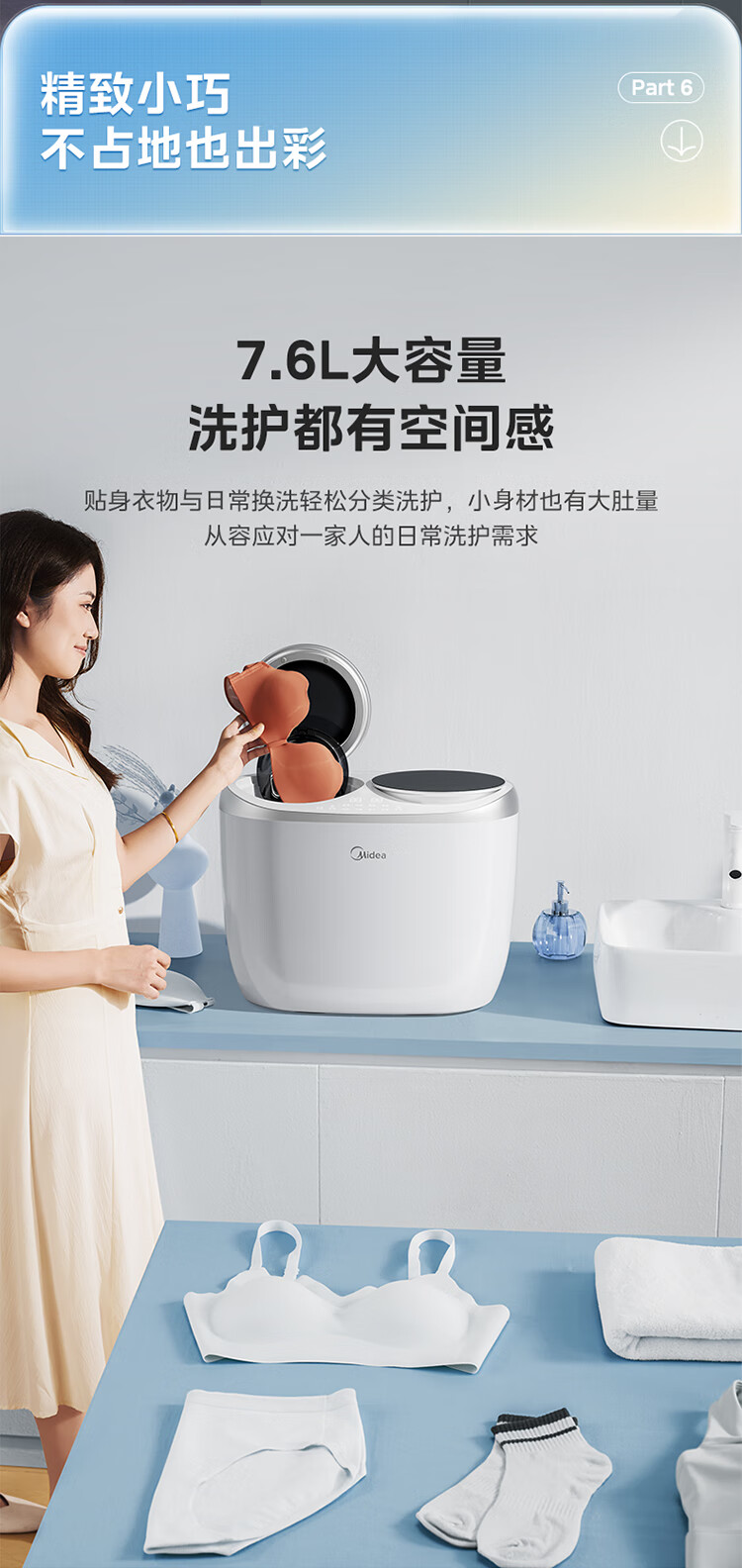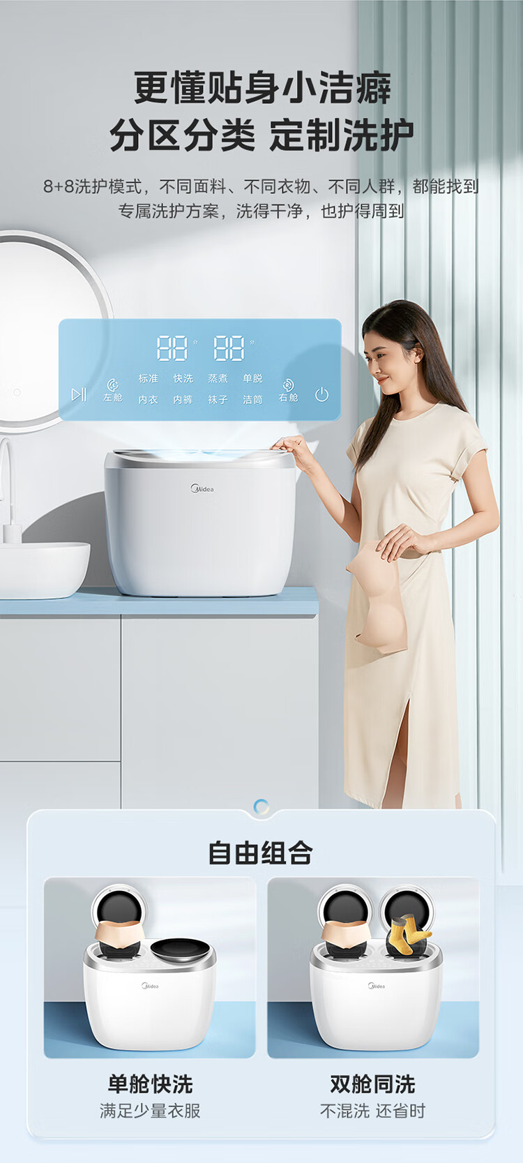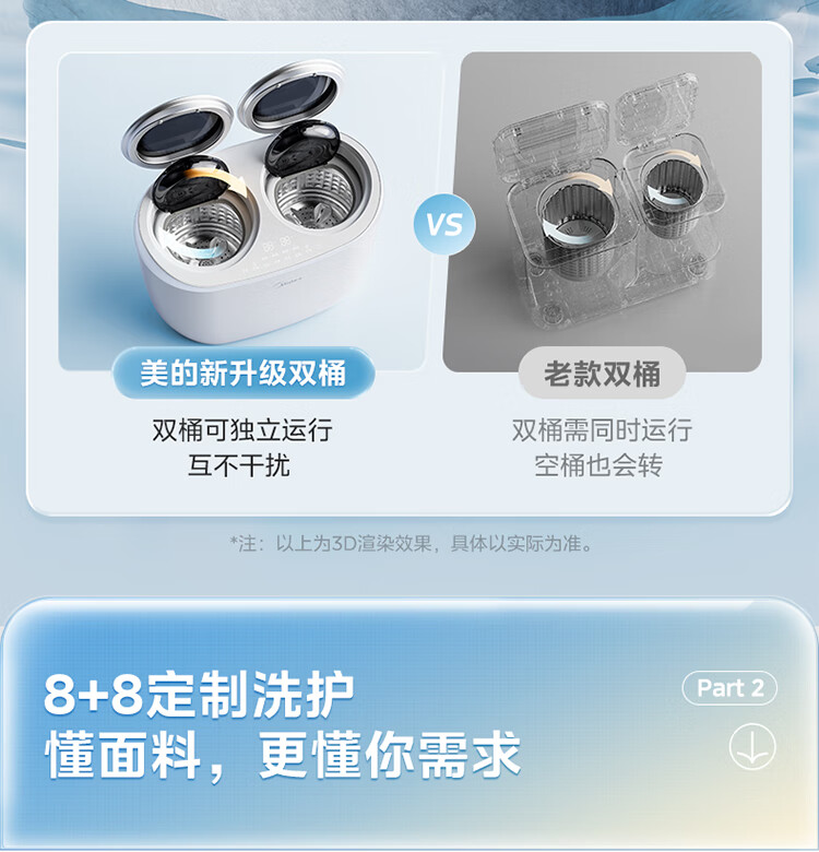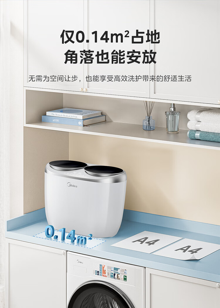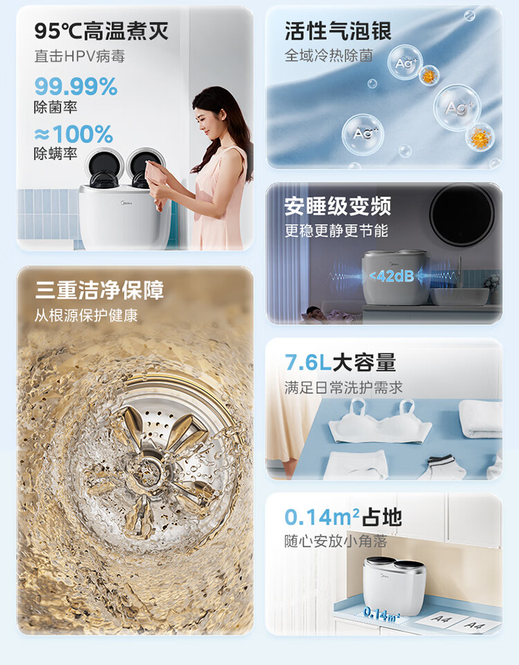 美的(Midea)双子座 波轮洗衣机全自动 1KG迷你内衣洗 分区洗衣机 专业除菌螨 MNBB10VH70E 以旧换新