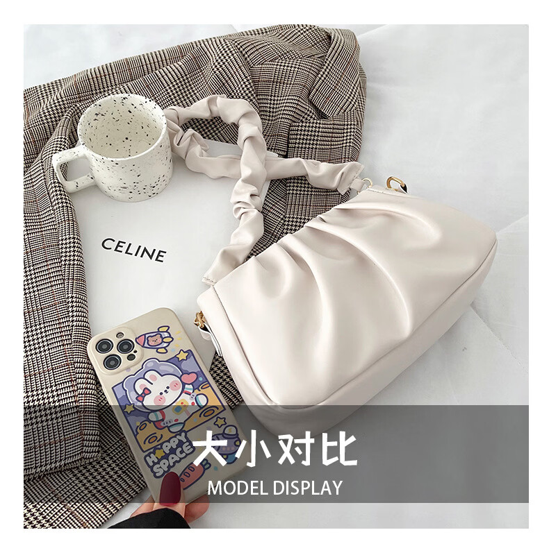 【优选百货】春季褶皱云朵包饺子包2024新款腋下包单肩斜挎包网红 白色