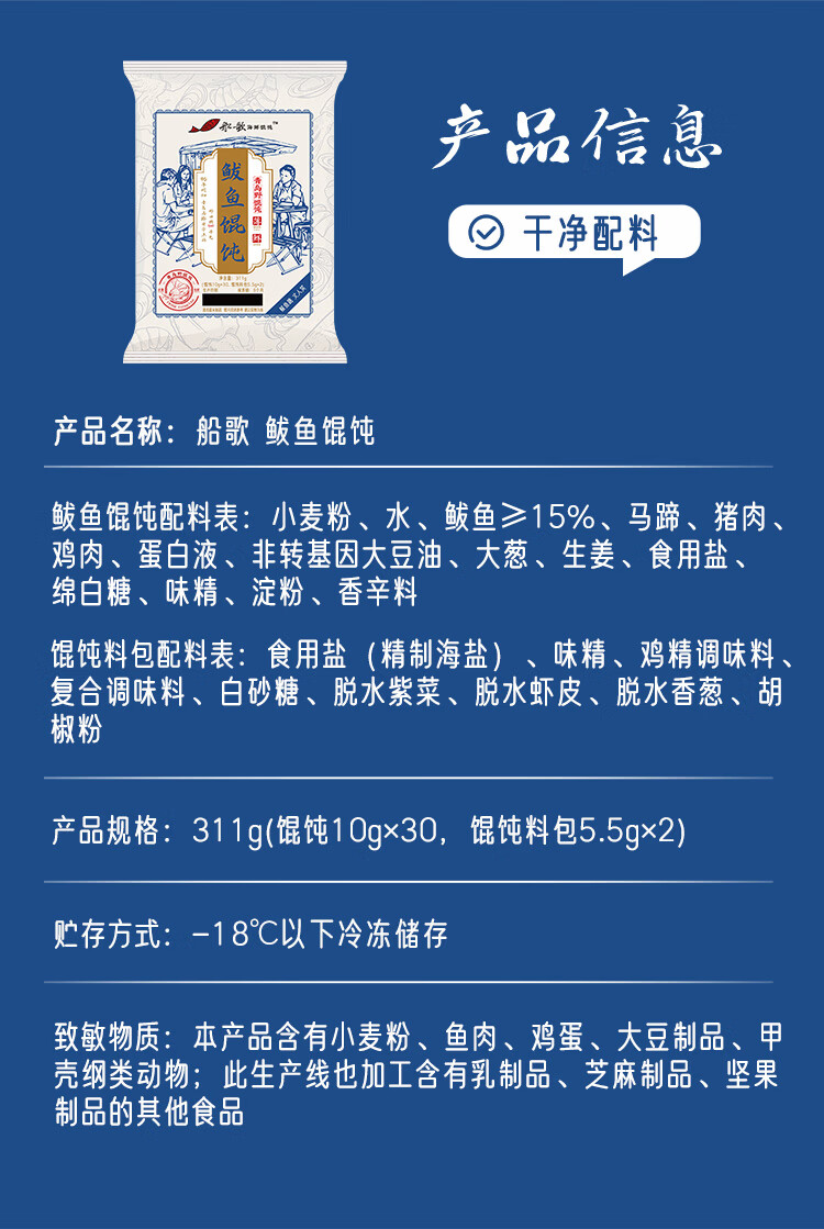 船歌鱼水饺鲅鱼野馄饨311g30只儿童早餐抄手小云吞紫菜虾皮混沌早餐速食生鲜