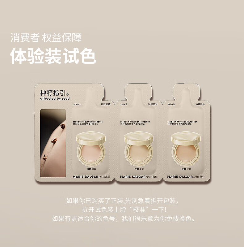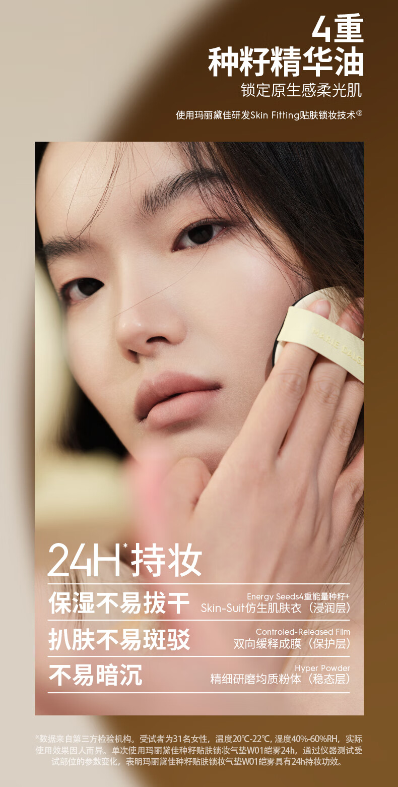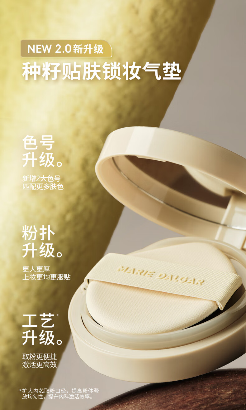 玛丽黛佳(MARIE DALGAR)妇女节礼物种籽气垫2.0锁妆持妆干皮滋润遮瑕W01皑雾