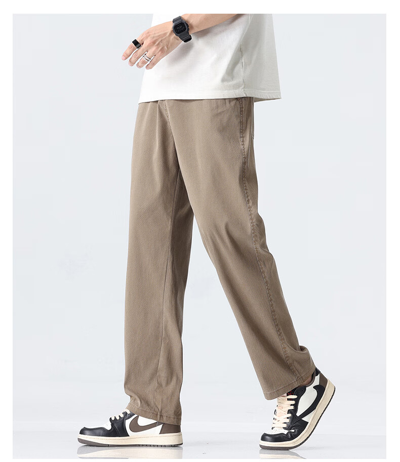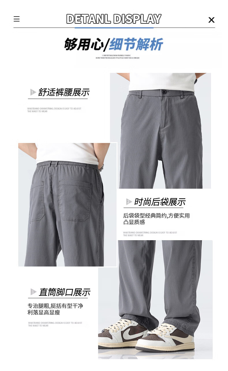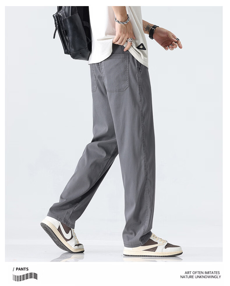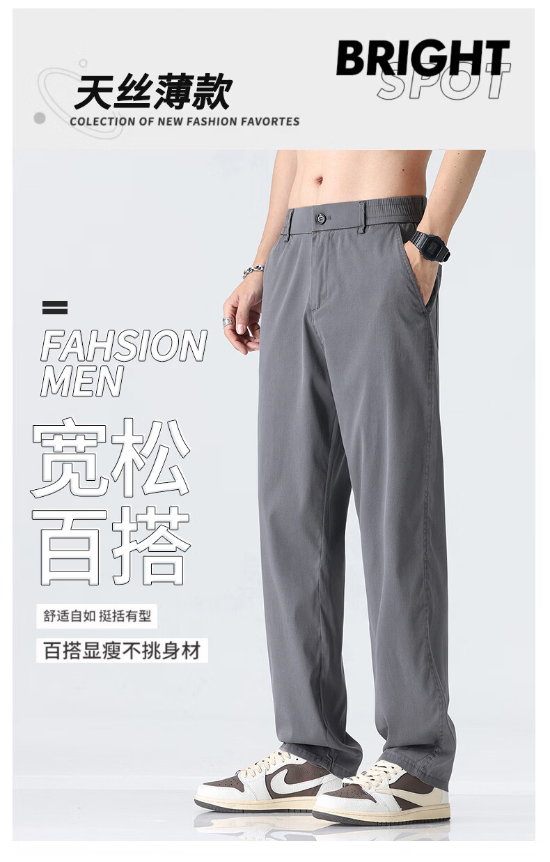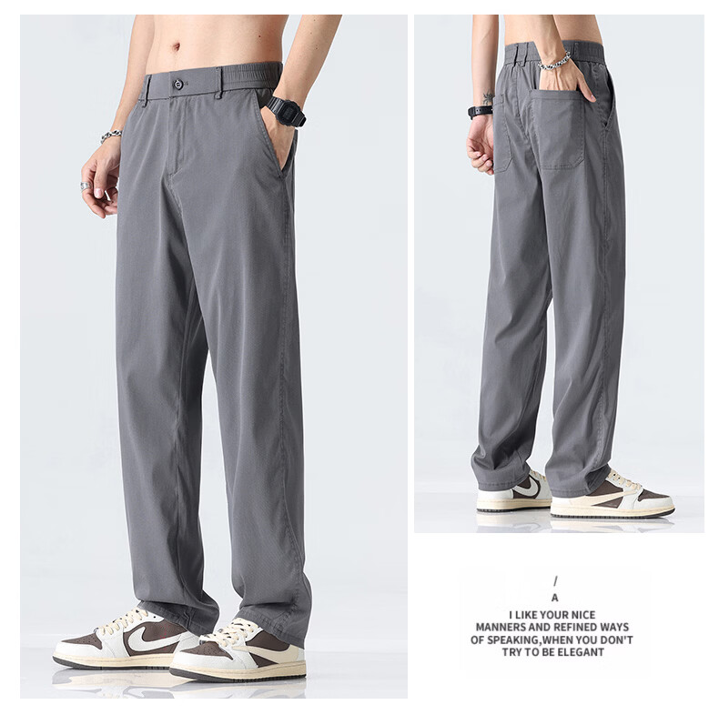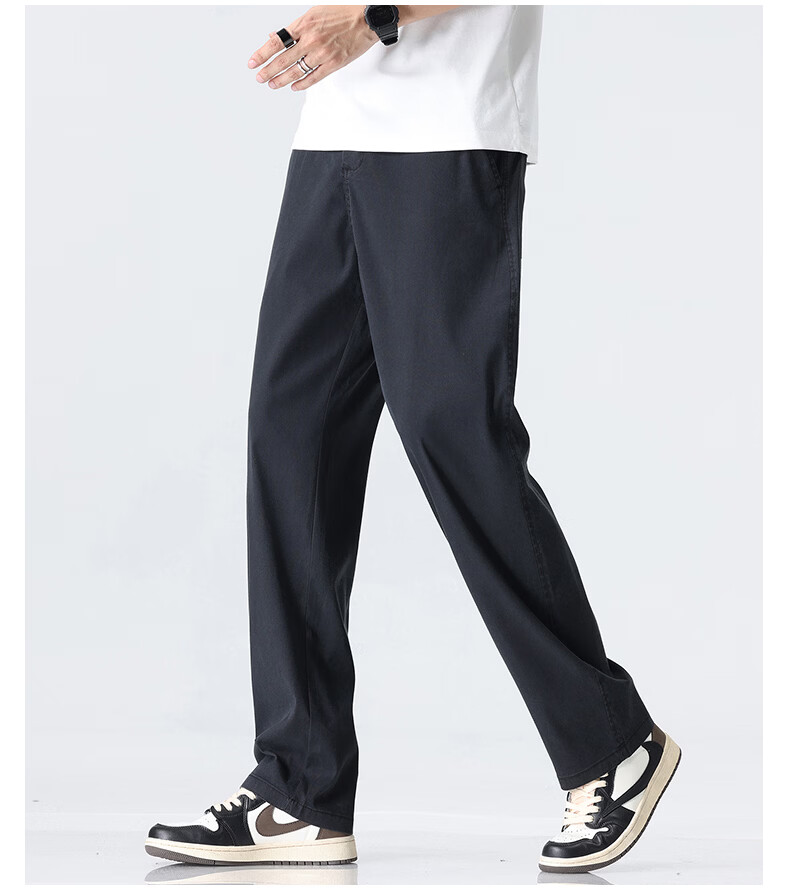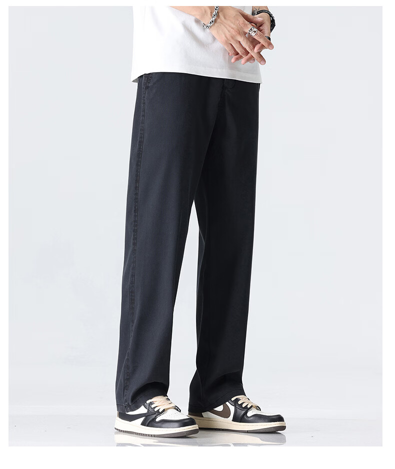 真维斯薄款天丝裤子男夏季冰丝凉感宽松直筒休闲西裤男 黑灰 M