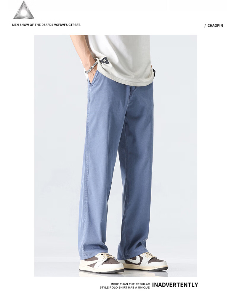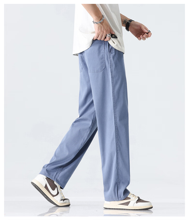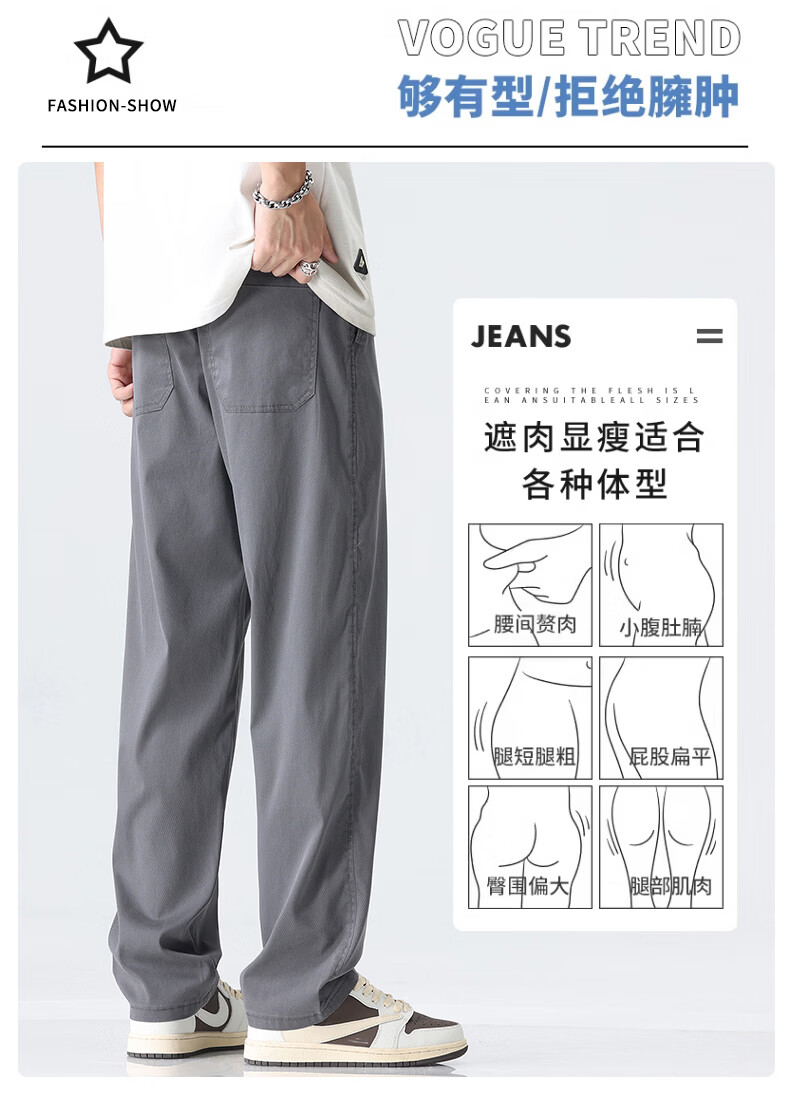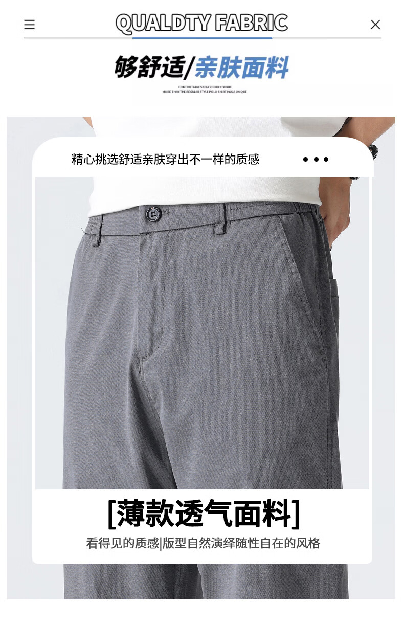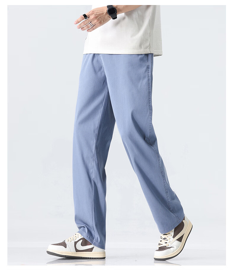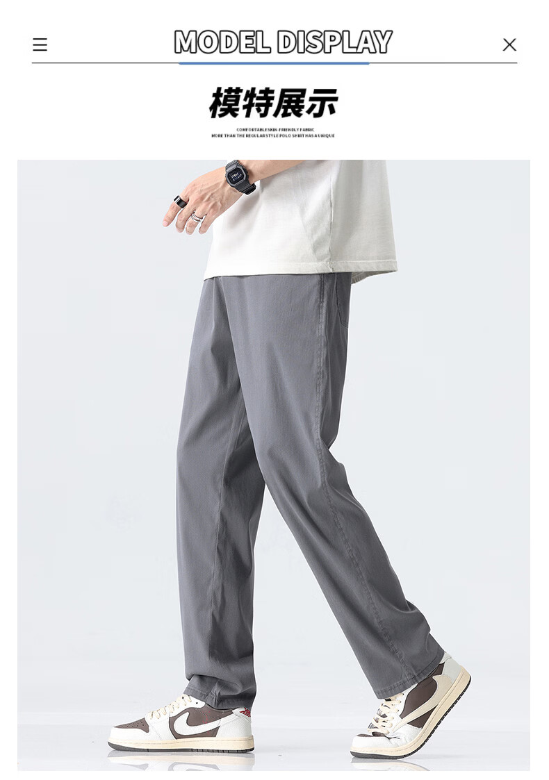 真维斯薄款天丝裤子男夏季冰丝凉感宽松直筒休闲西裤男 黑灰 M