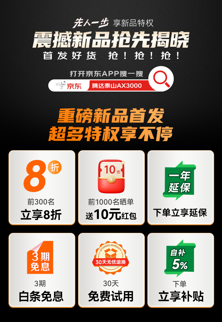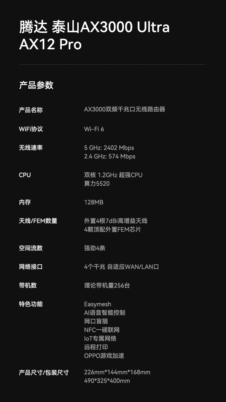 Tenda腾达路由器WiFi6+【泰山AX3000 Ultra】千兆穿墙王信号放大器增强无线家用甄选高配芯片AX12 Pro