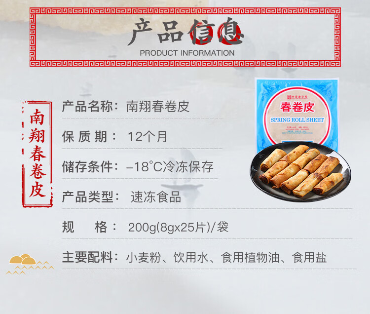 南翔 春卷皮200*6袋(150张) 中华老字号速冻早餐食品春节也送货