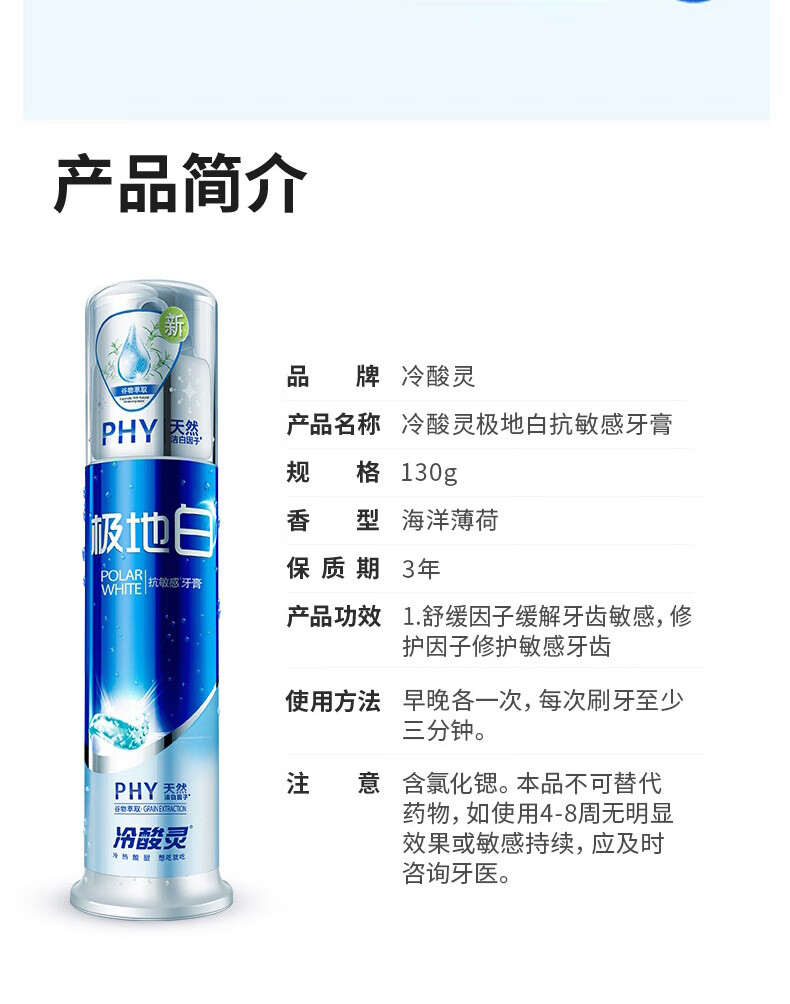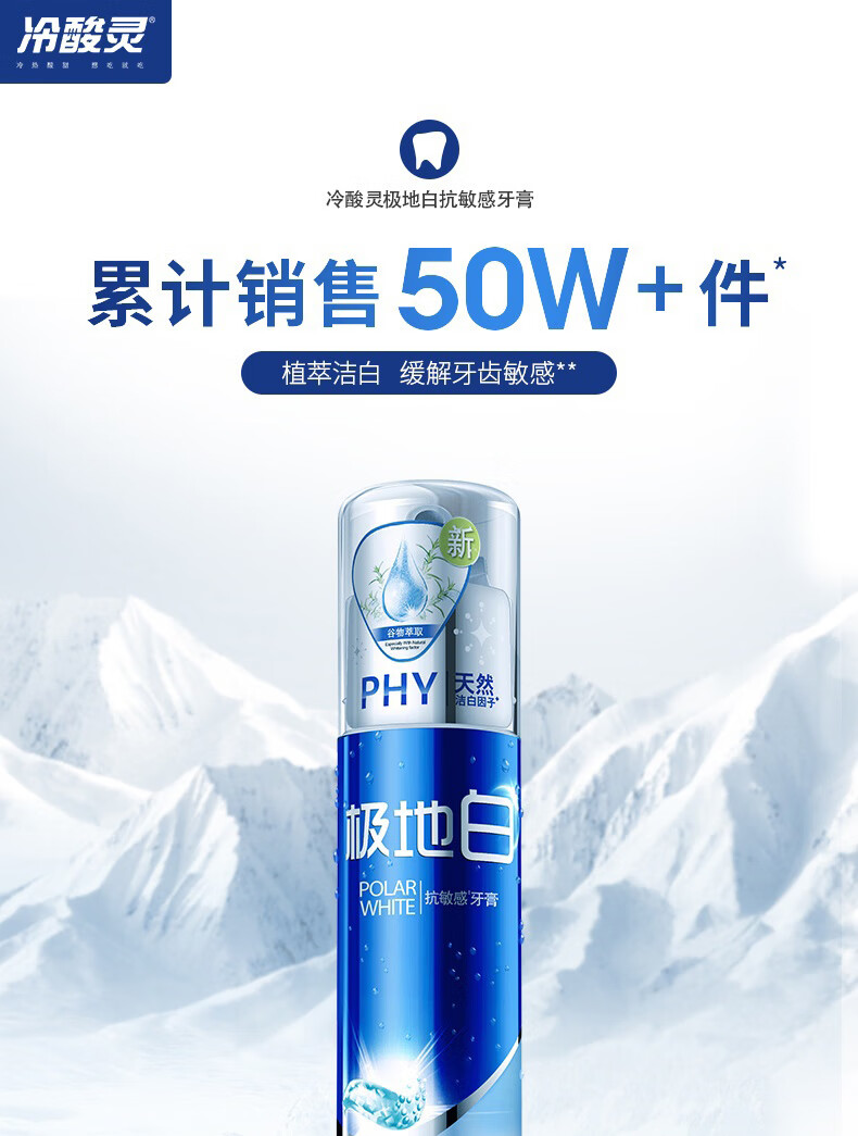 冷酸灵按压泵式牙膏极地去黄抗敏感去牙渍美白亮白洁齿护龈清新口气 按压泵式牙膏130g*3