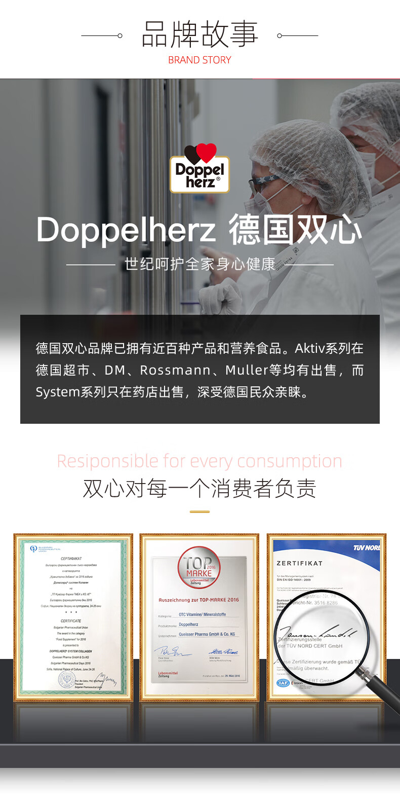 双心(Doppel herz)PQQ胶原蛋白肽抗衰老紧致皮肤保湿含金顶侧耳玻尿酸 尝鲜装 10支*1盒 【拍2送5支】