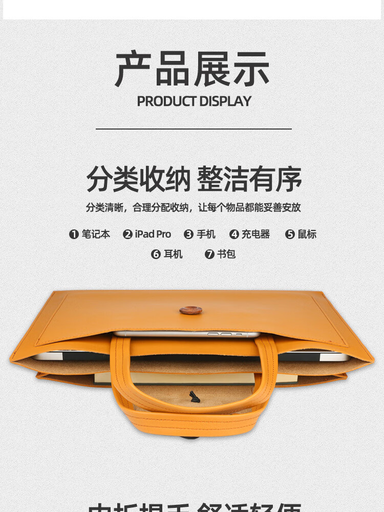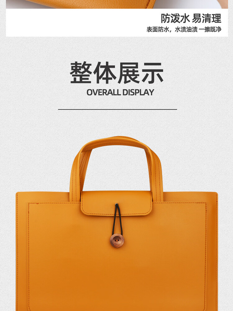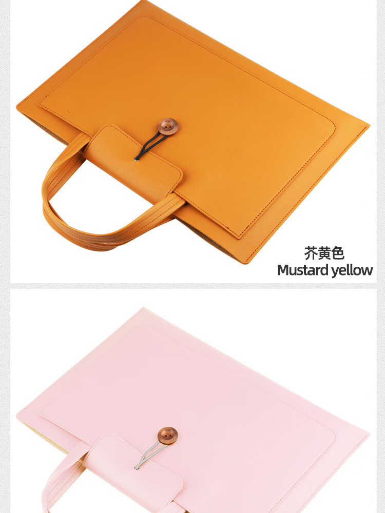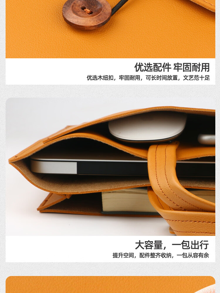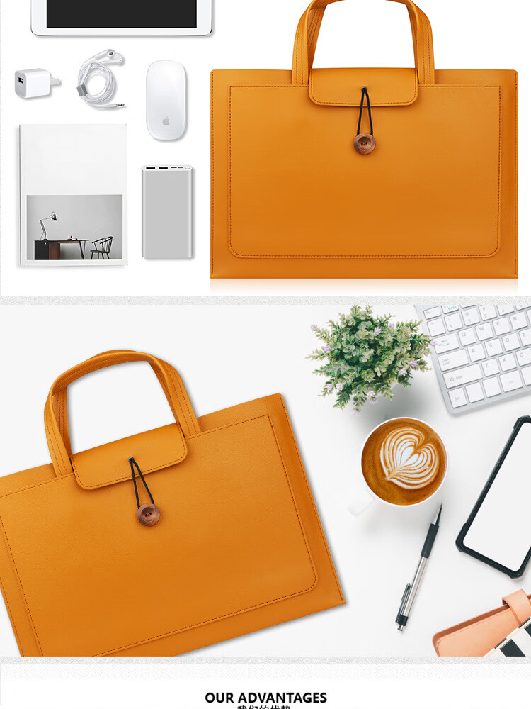 【严选直发】笔记本手提电脑包14寸男女适用大容量内胆包商务公文 芥黄色(厚料款 13.3/14寸