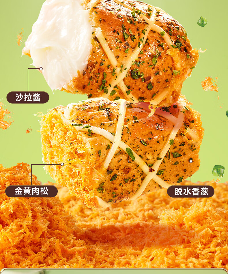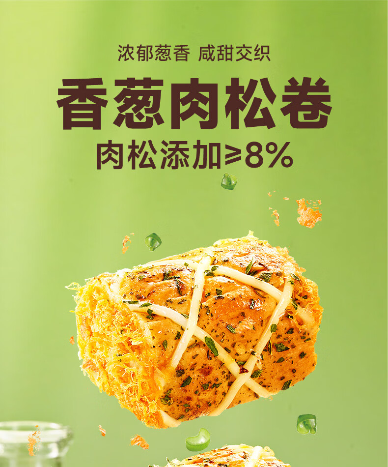 比比赞(BIBIZAN)香葱肉松卷面包325g网红小吃代餐营养早餐休闲零食品蛋糕点心